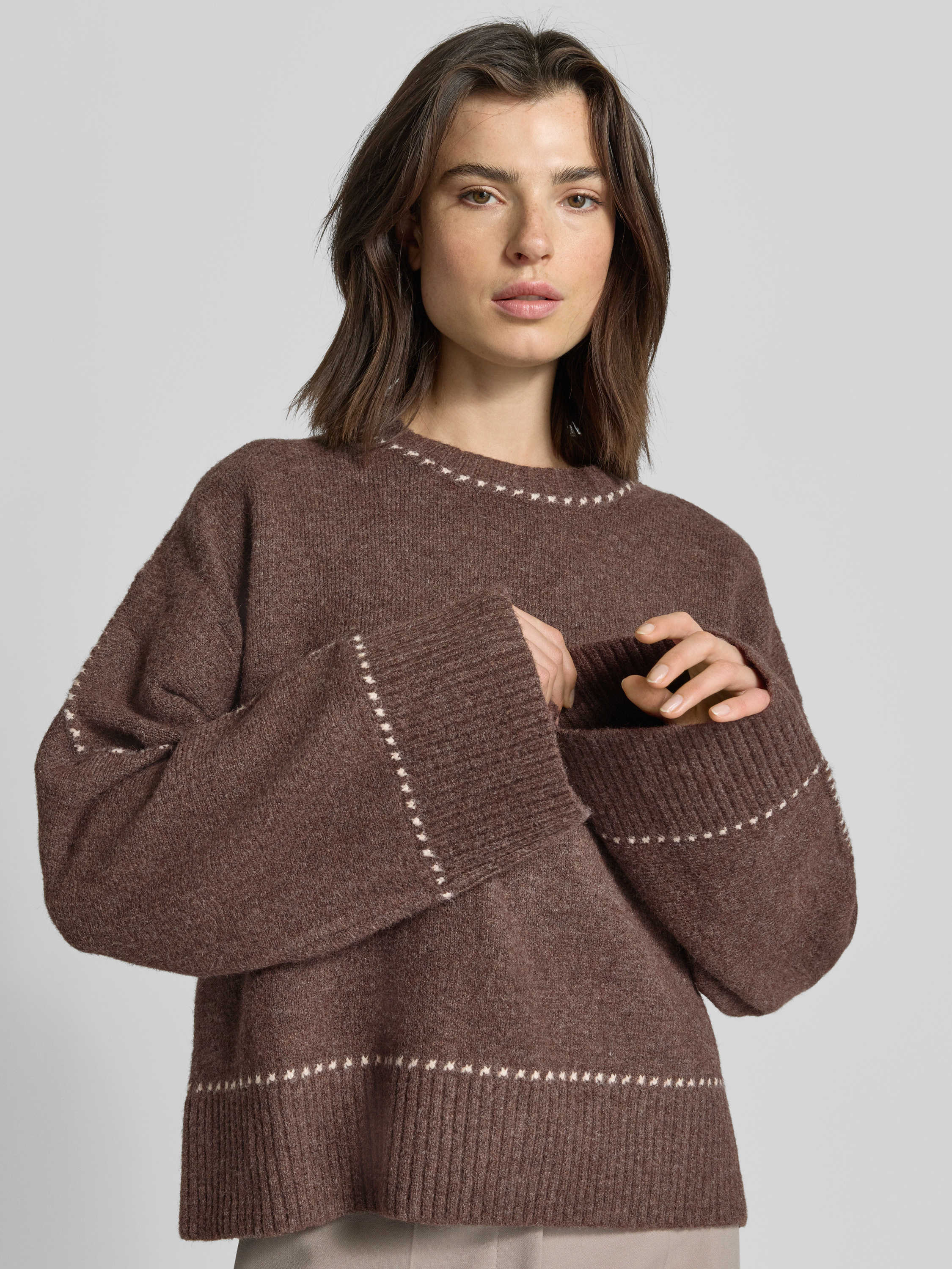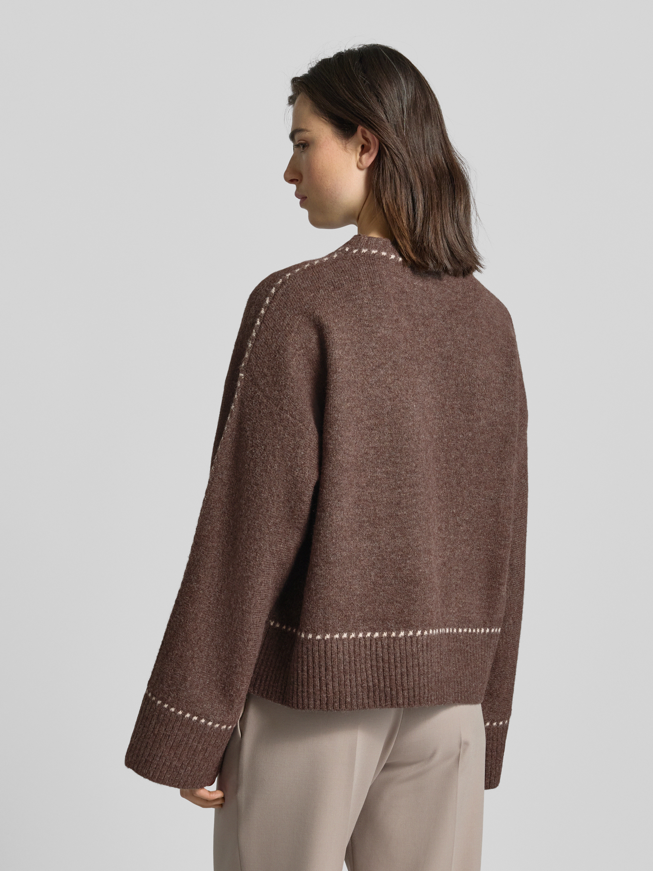Relaxed fit blouse met wol, model 'Roeme' in middenbruin