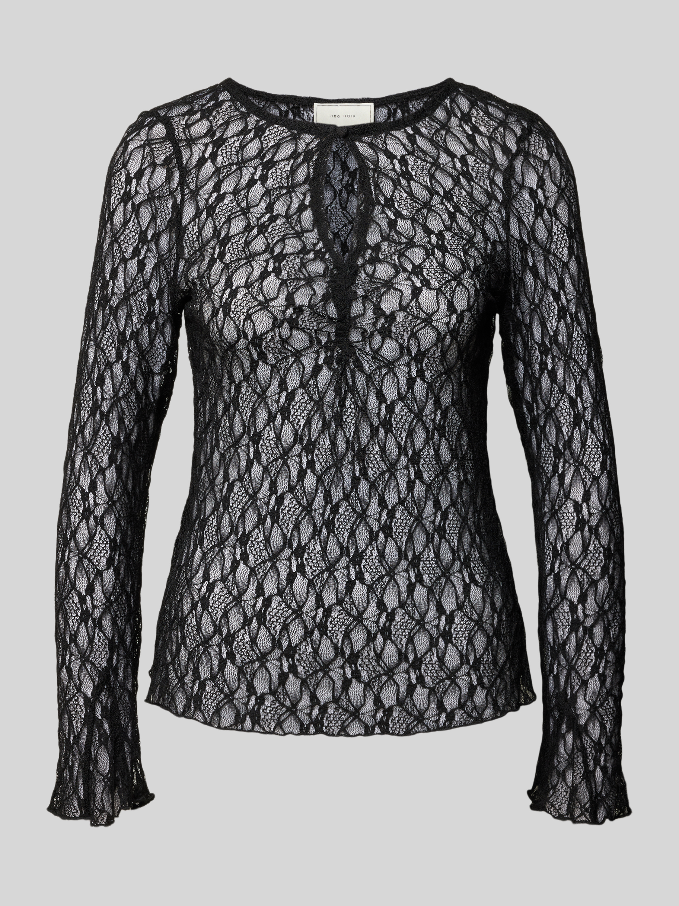 Shirt met lange mouwen in semi-transparant design, model 'Matria' in zwart
