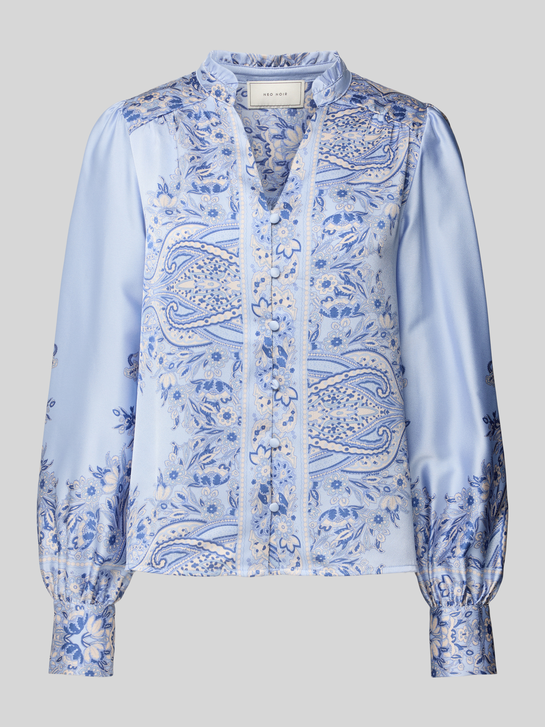Slim fit blouse met tuniekkraag, model 'Massima' in lichtblauw