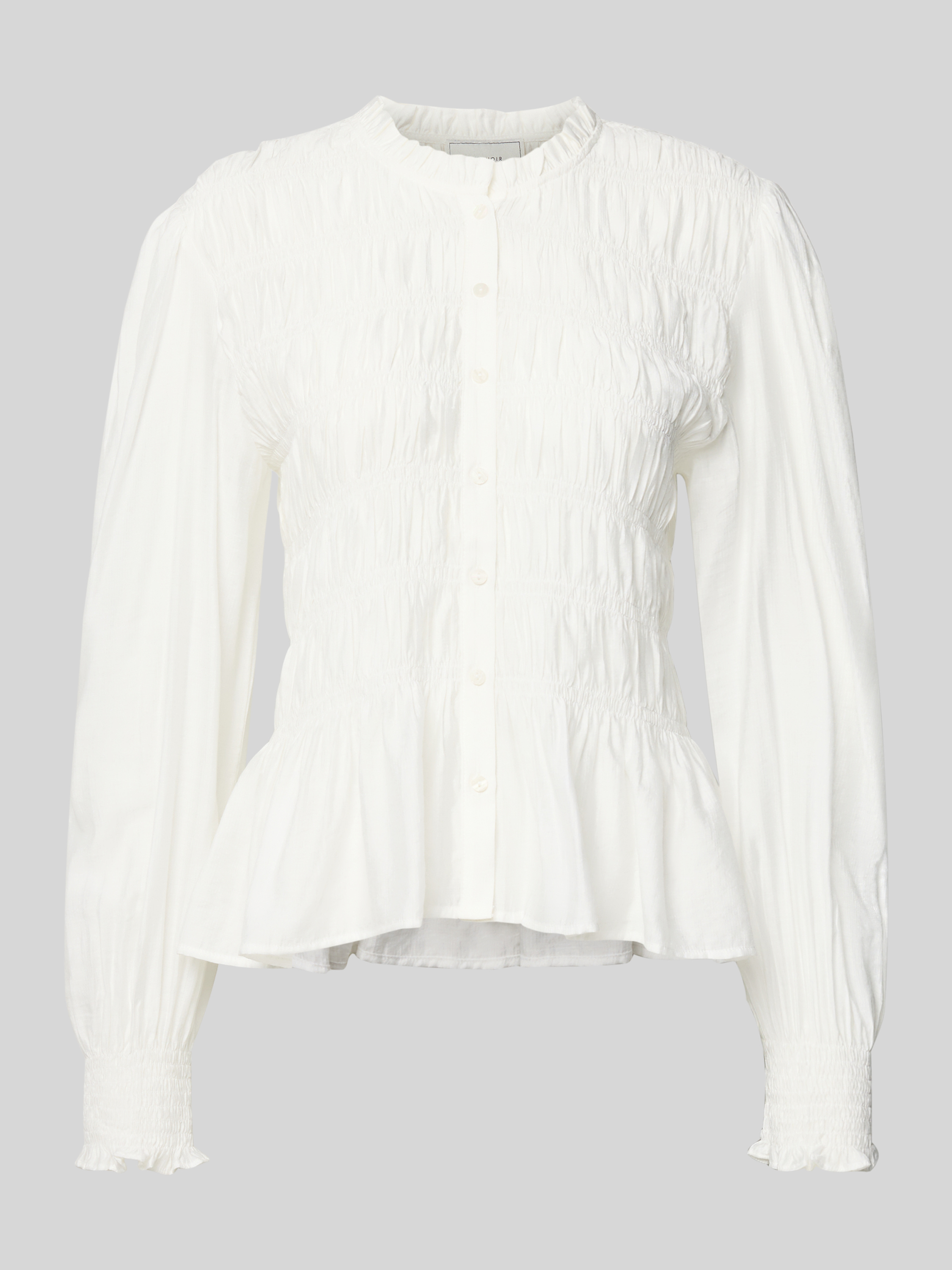 Slim fit overhemdblouse met ballonmouwen, model 'Mocca' in wit