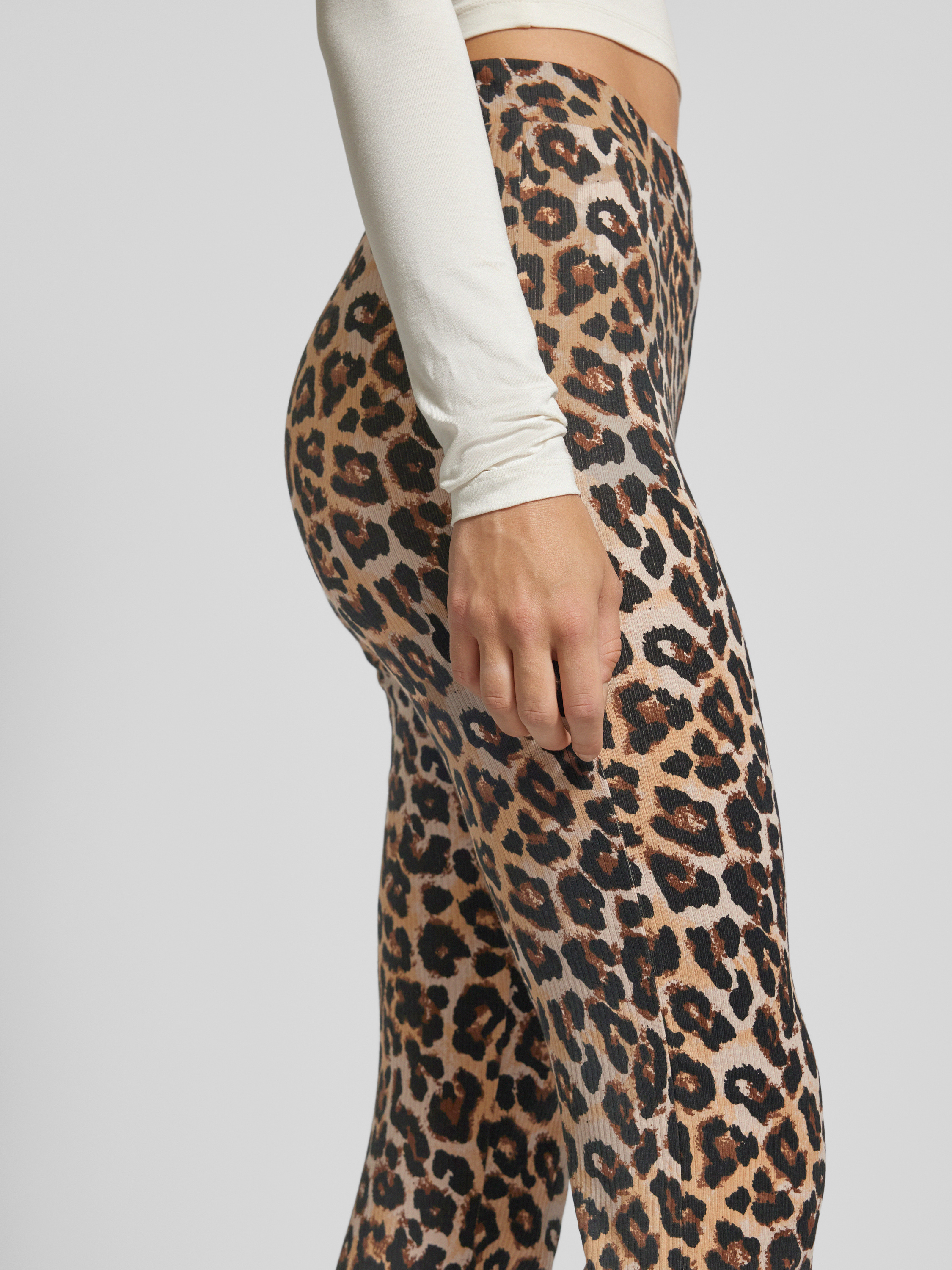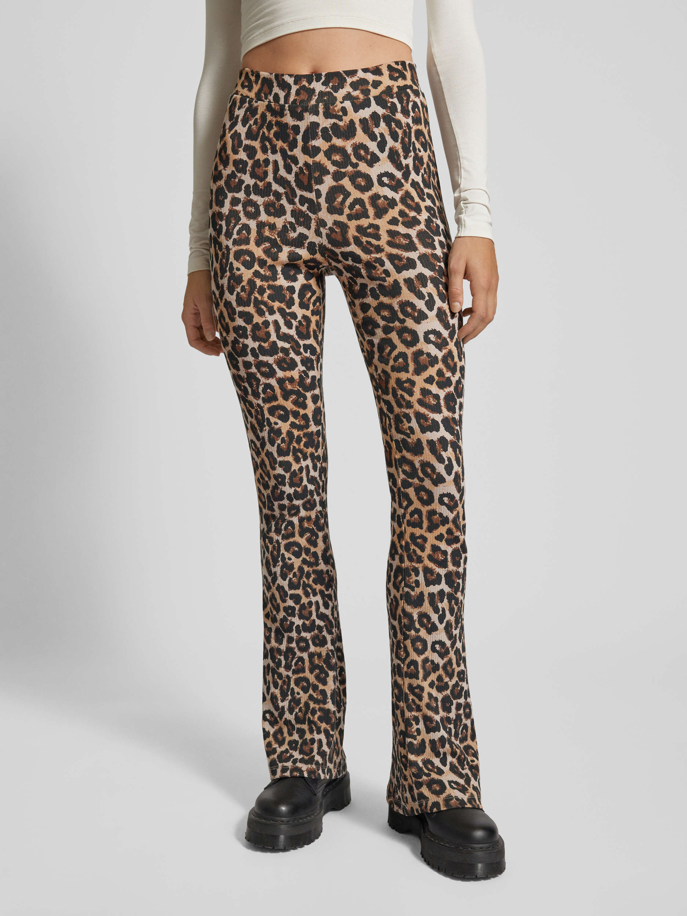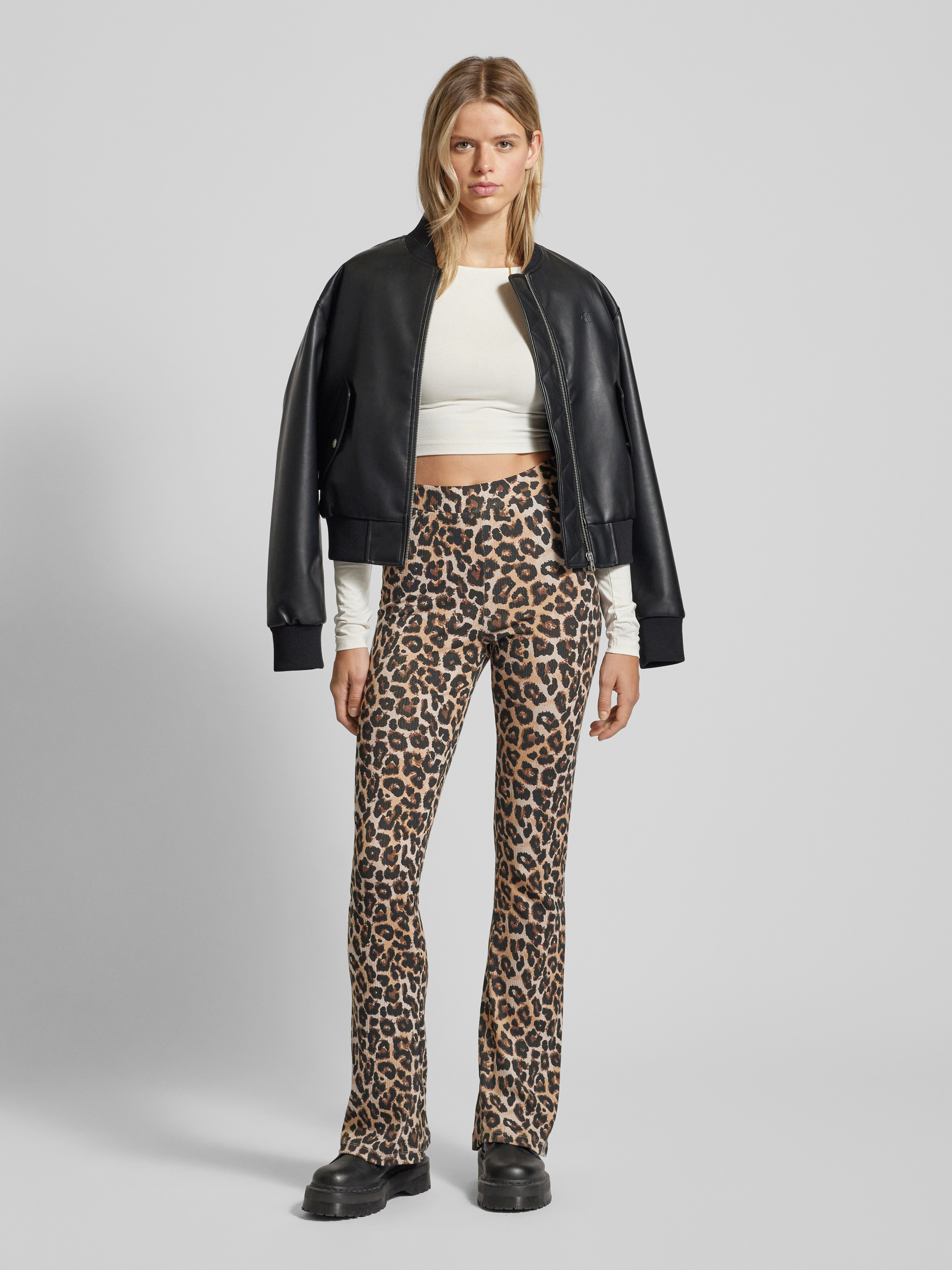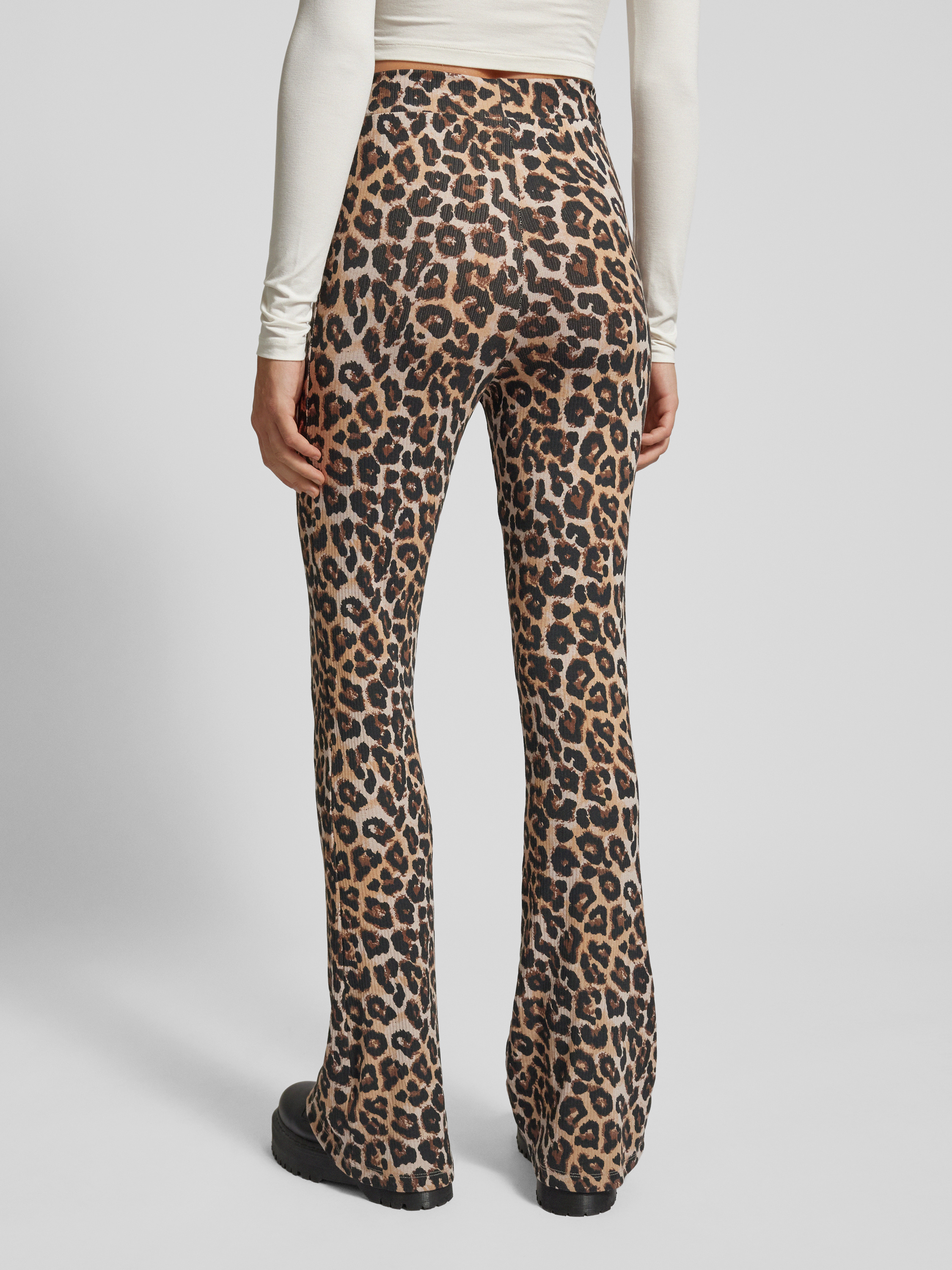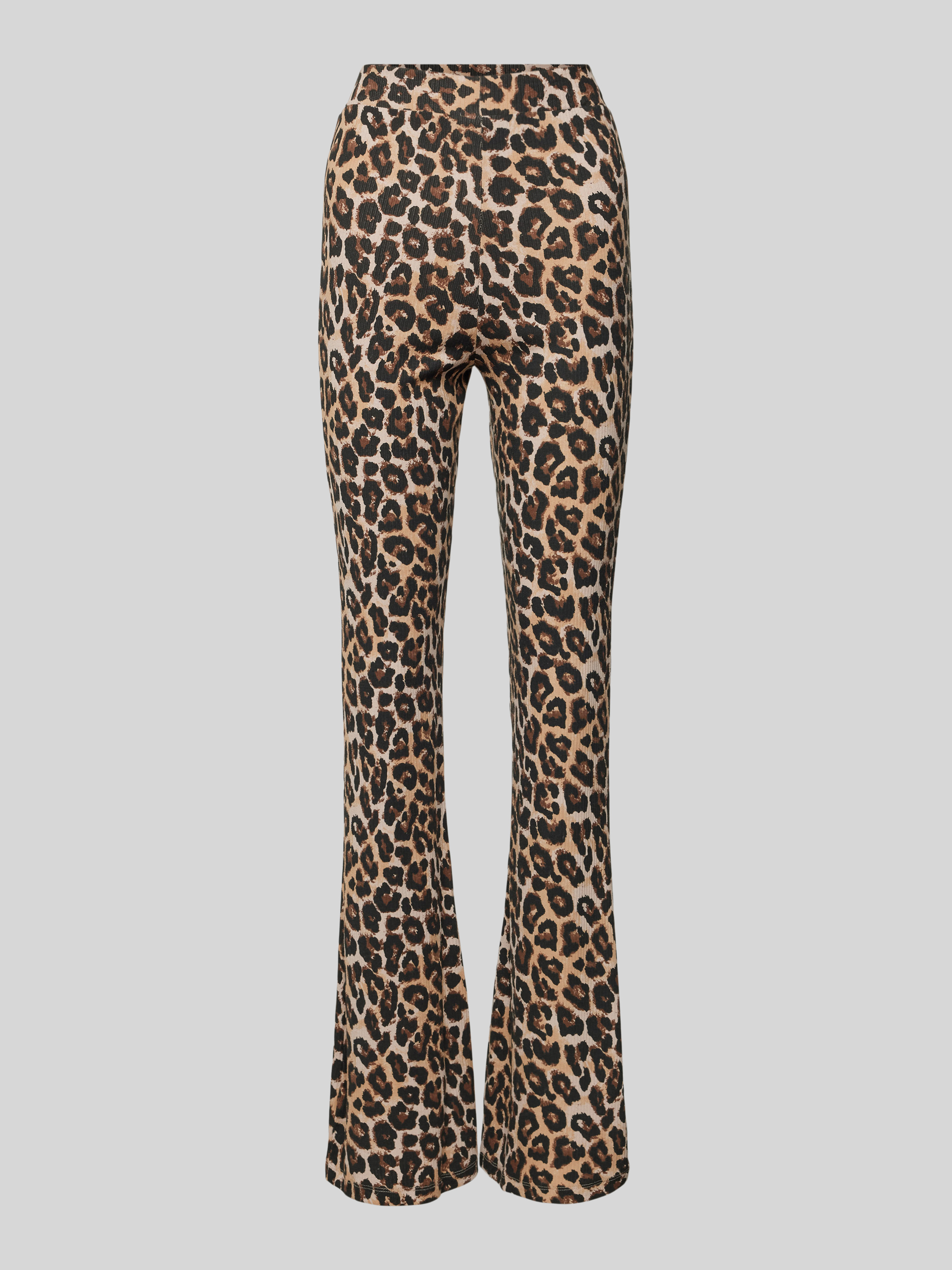 Flared stoffen broek met dierenprint, model 'PASA' in zwart