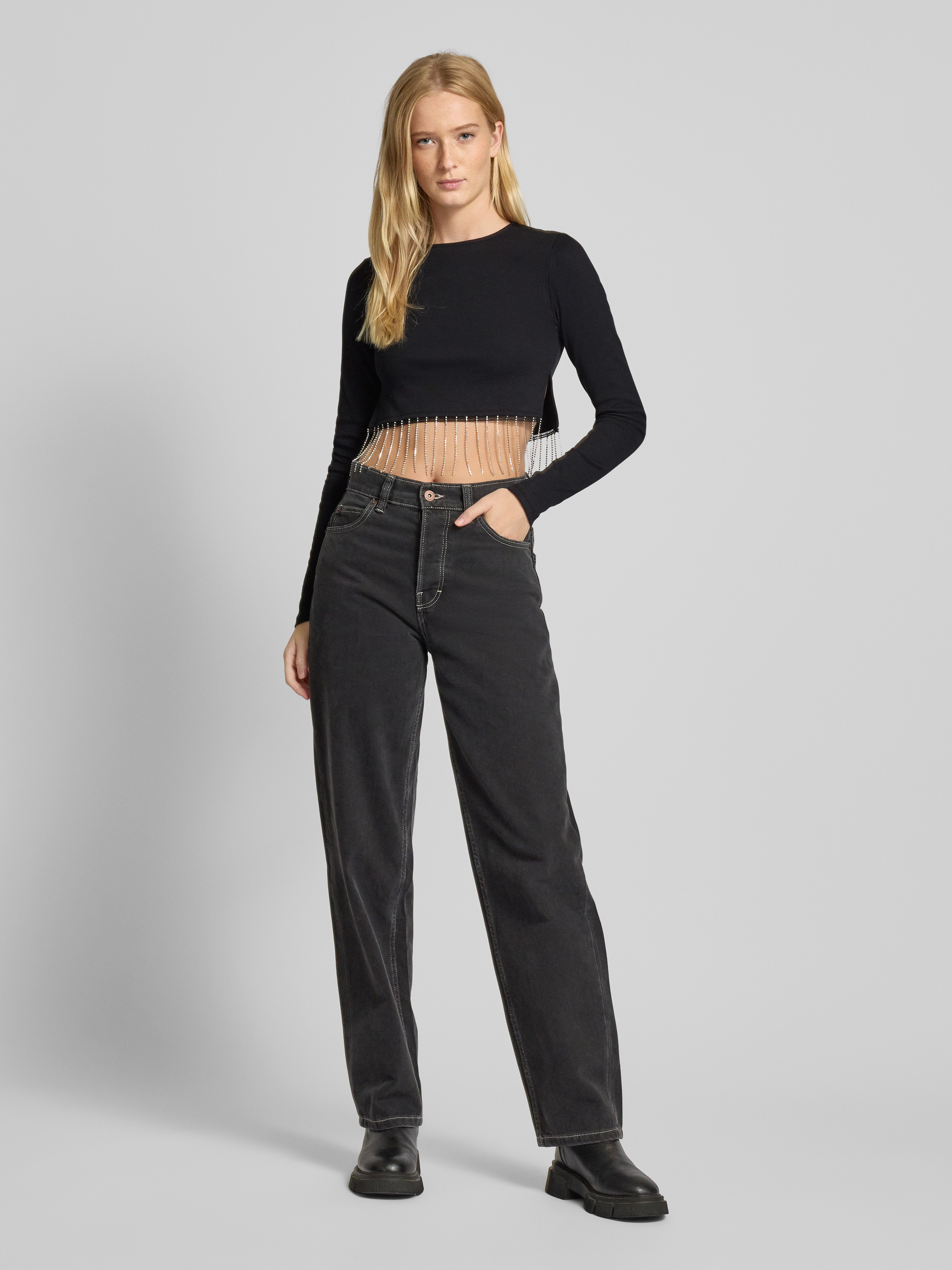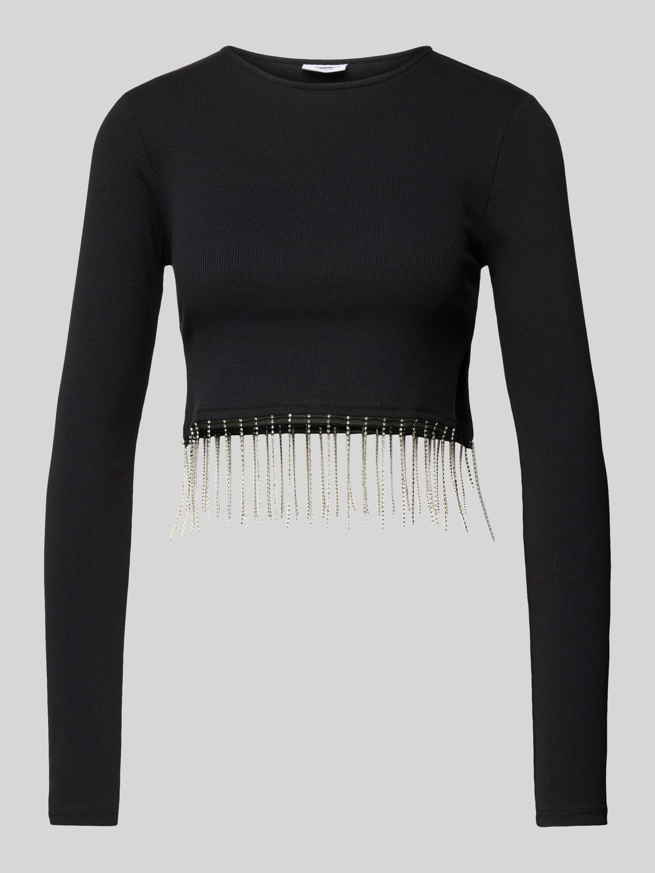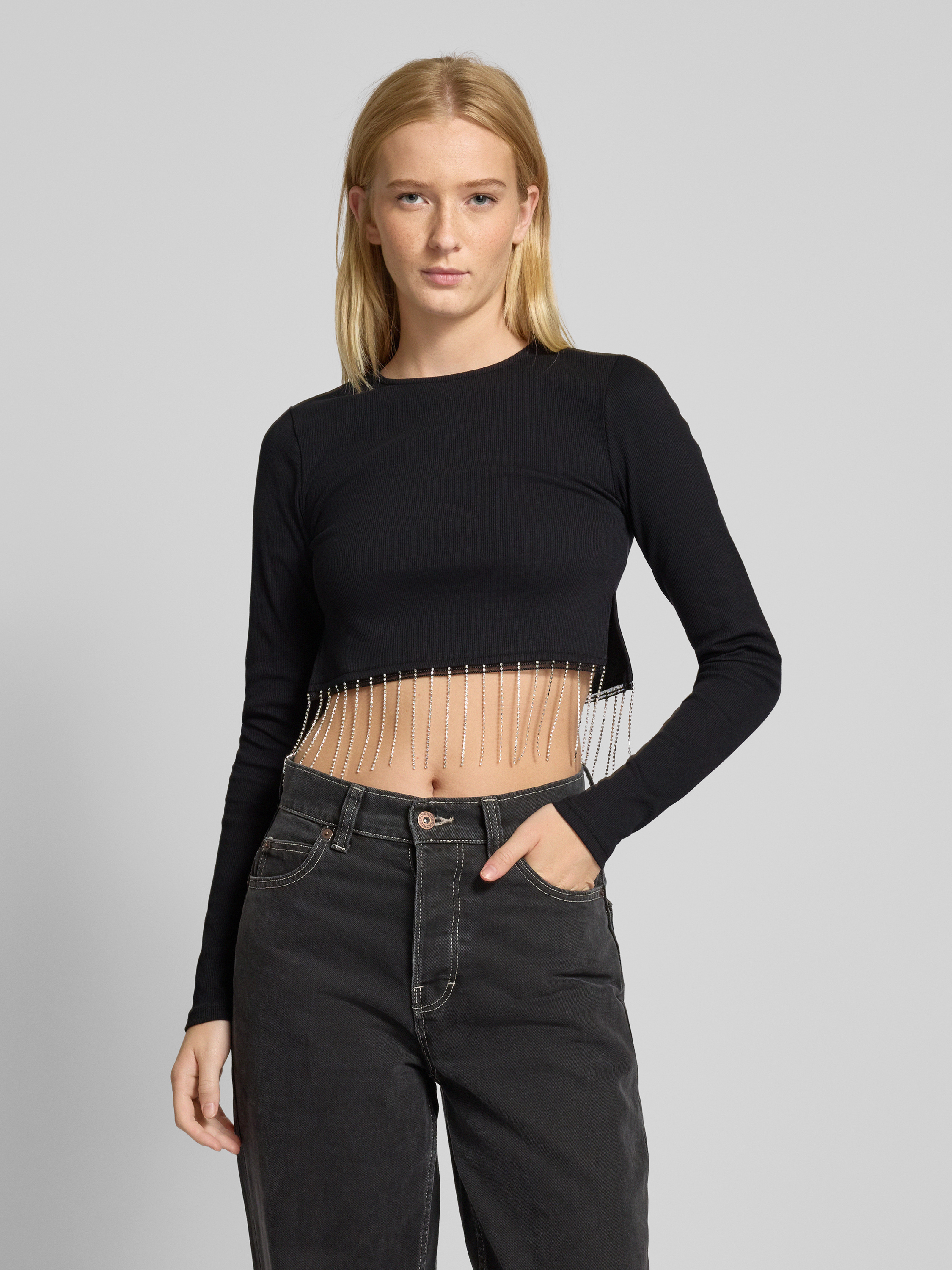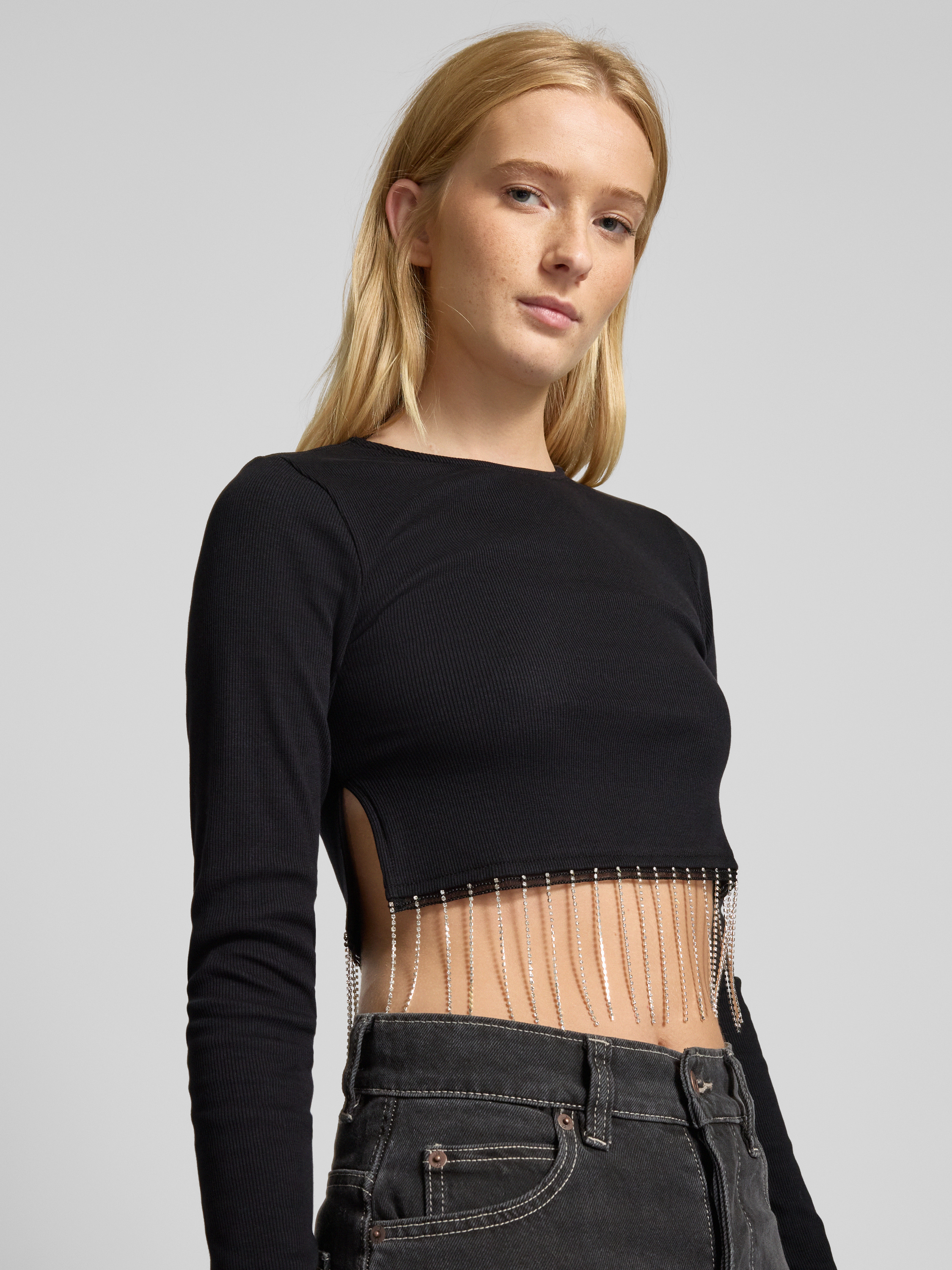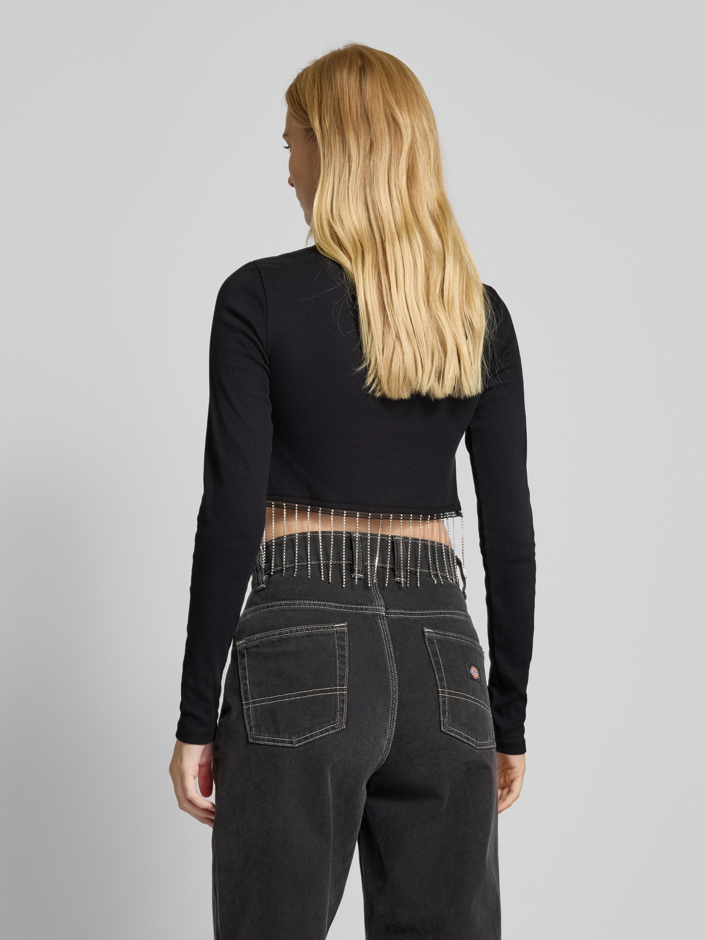 Kort shirt met lange mouwen en strass-steentjes, model 'MAYA' in zilver