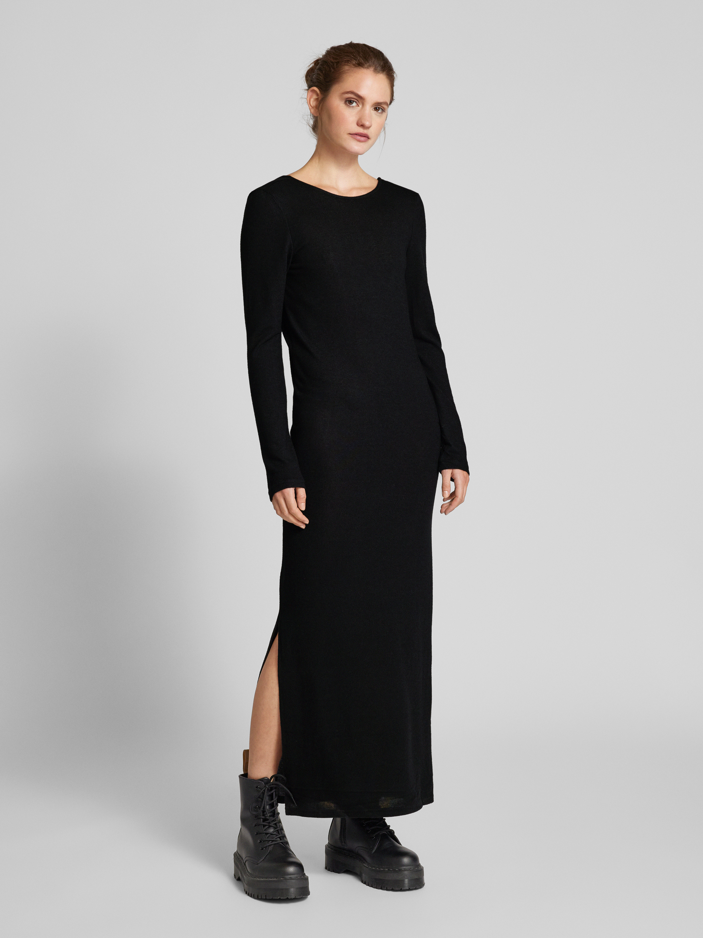 Maxi-jurk met ronde hals, model 'CITY' in zwart