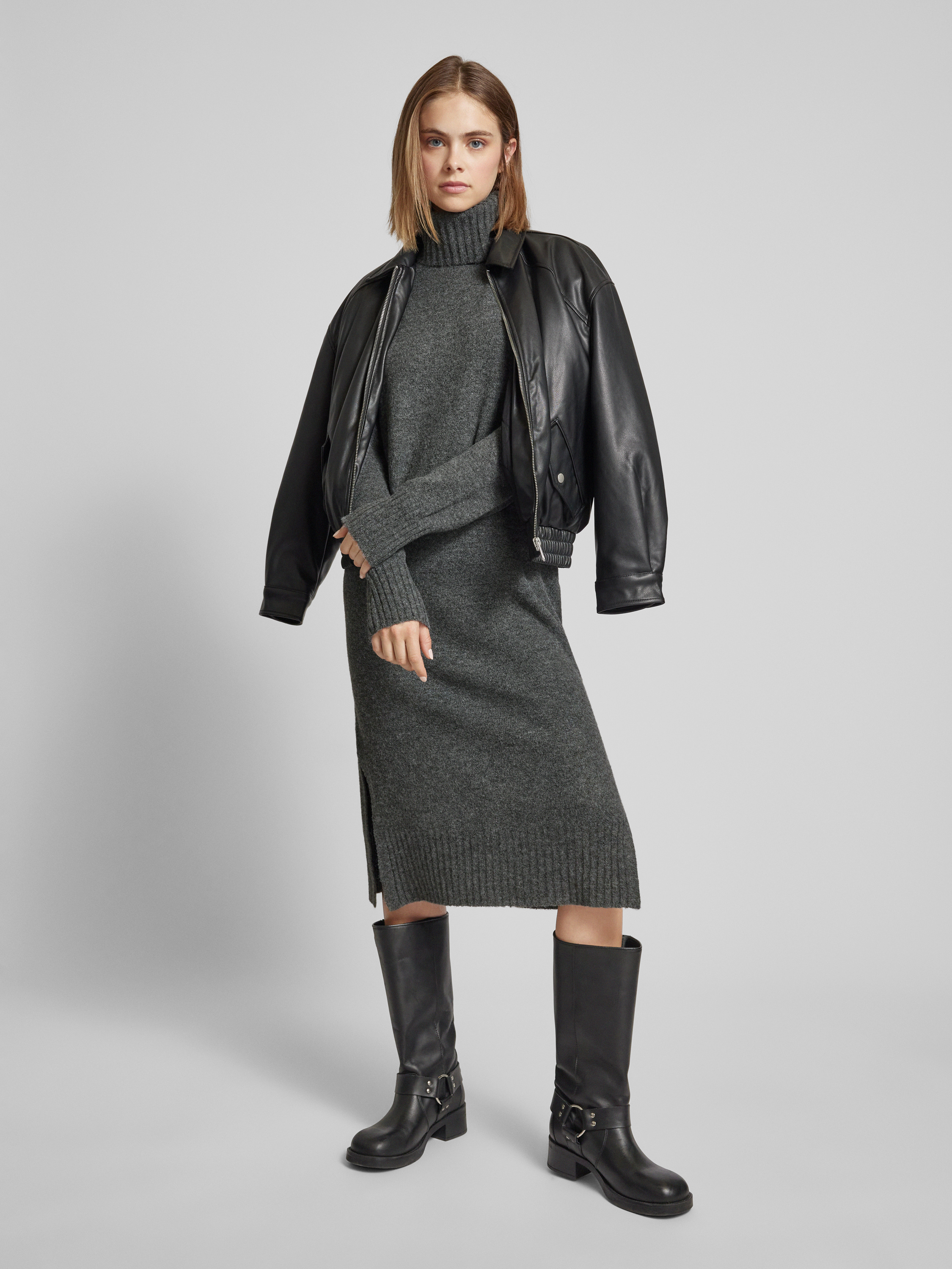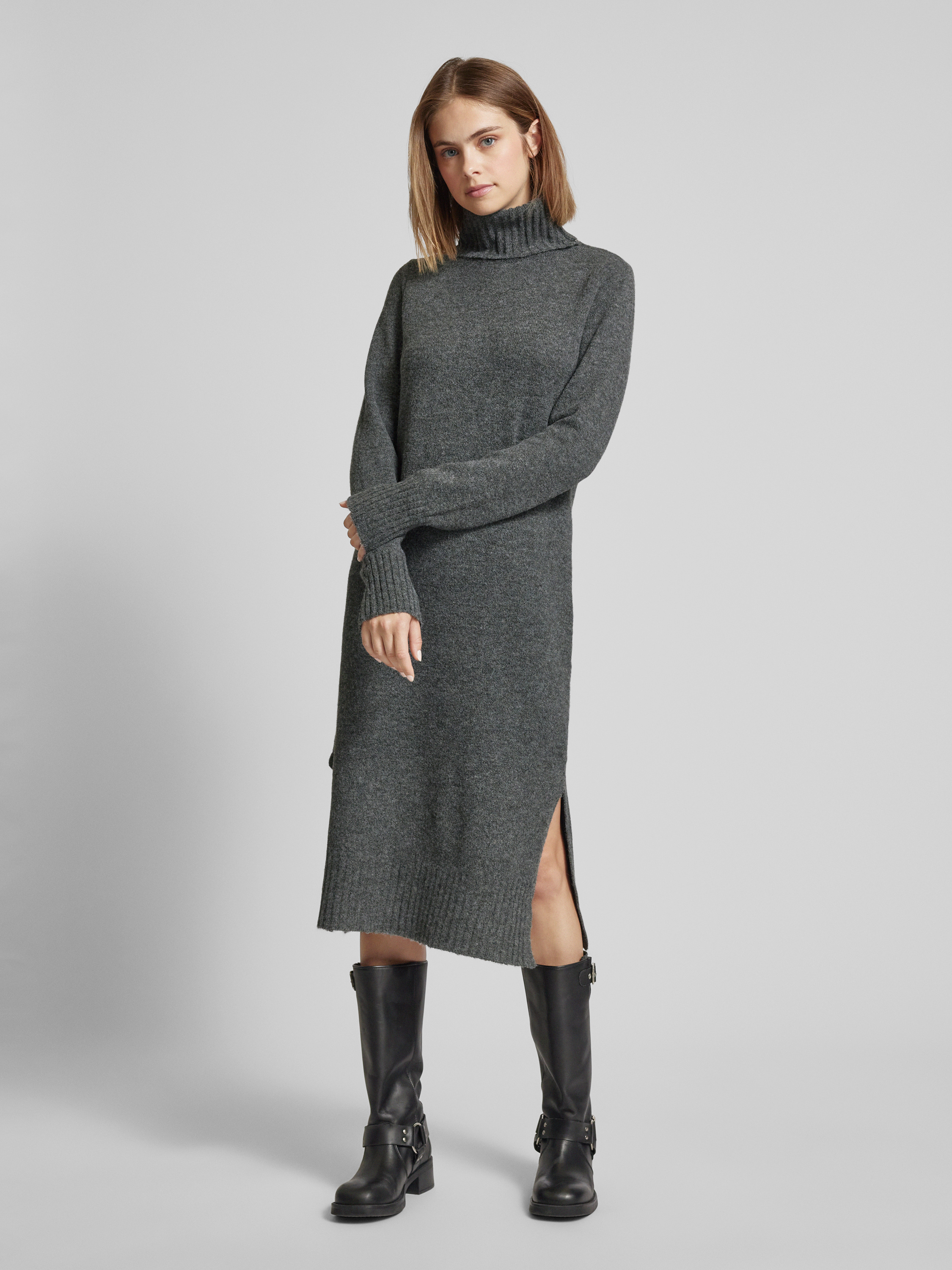 Midi-jurk met opstaande kraag, model 'VIOLA' in antraciet