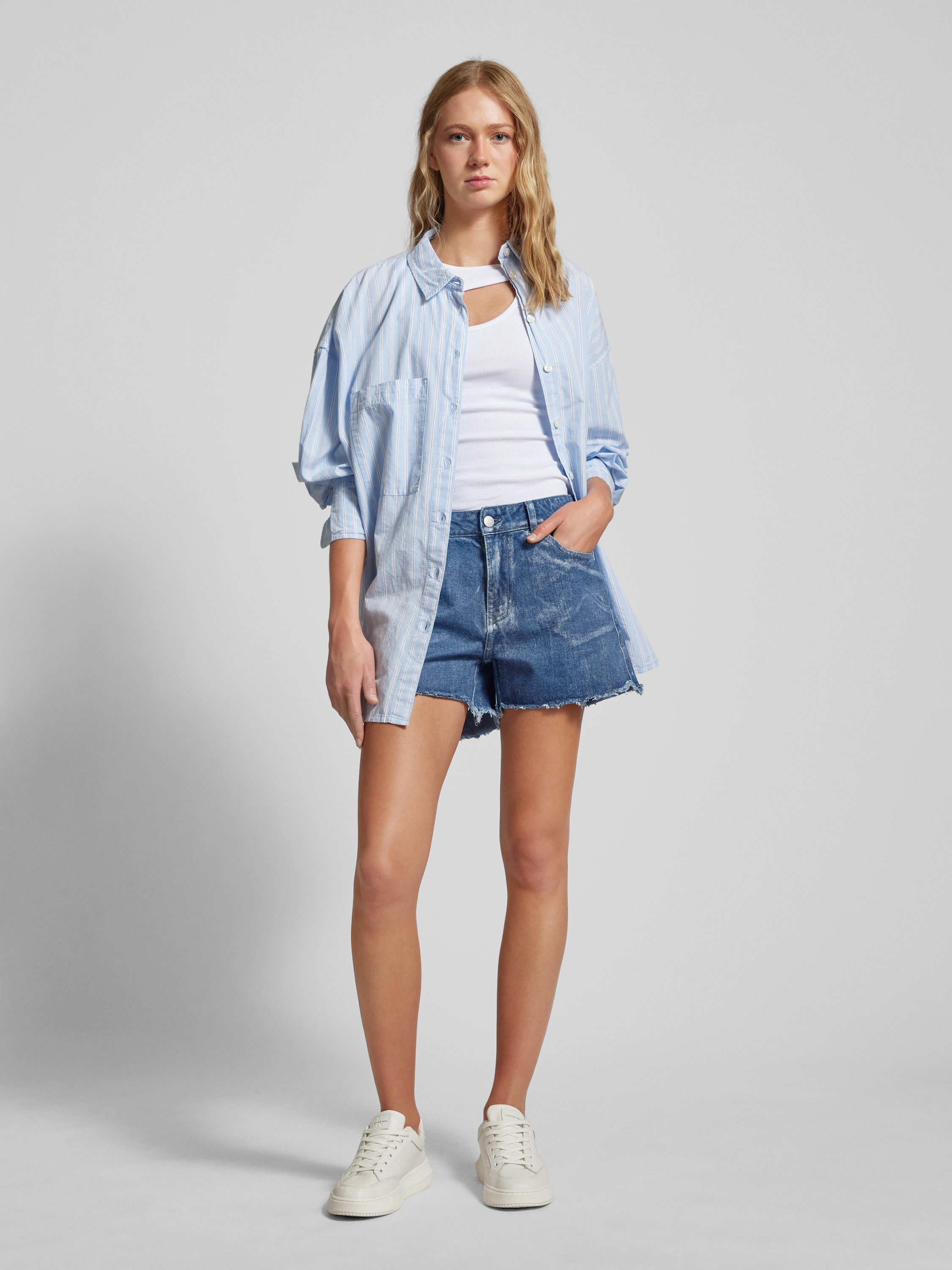 Regular fit korte jeans met franjes, model 'ZOE' in jeansblauw