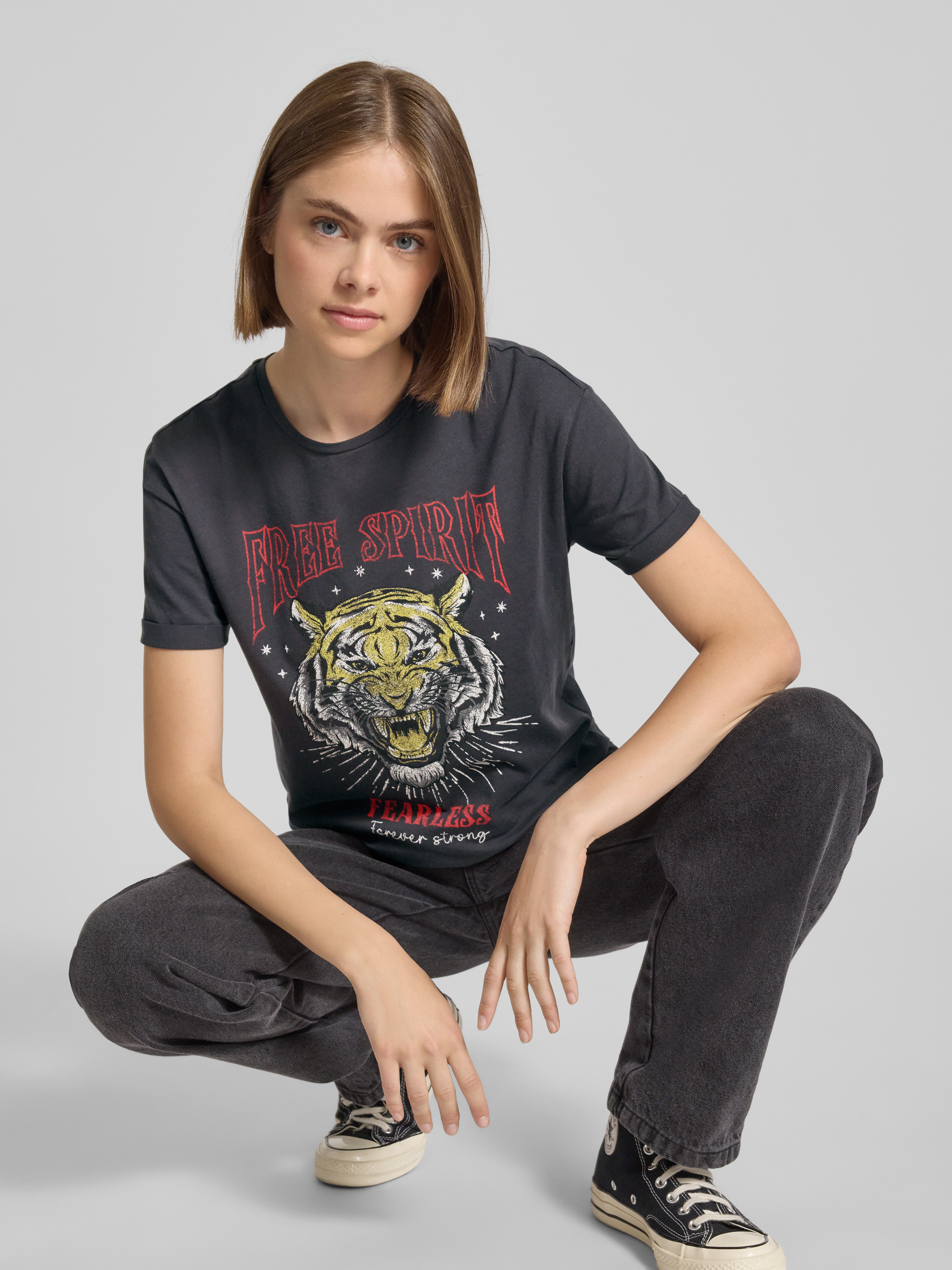 Relaxed fit T-shirt van puur katoen, model 'Brandy' in antraciet
