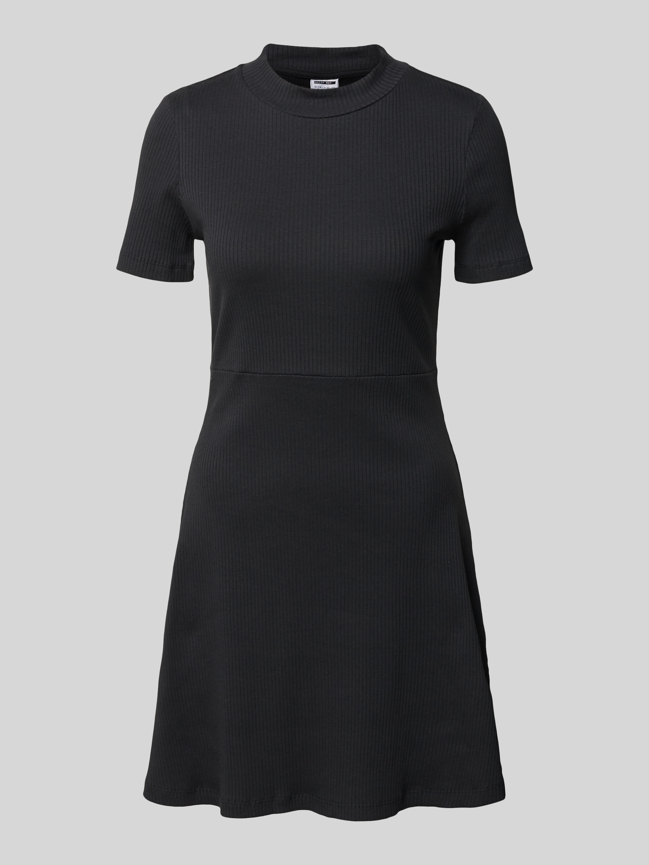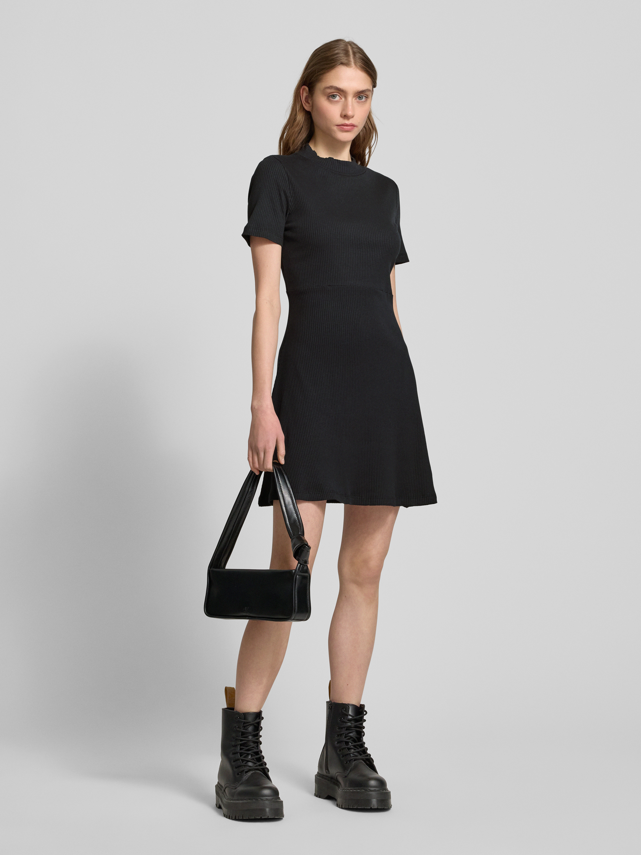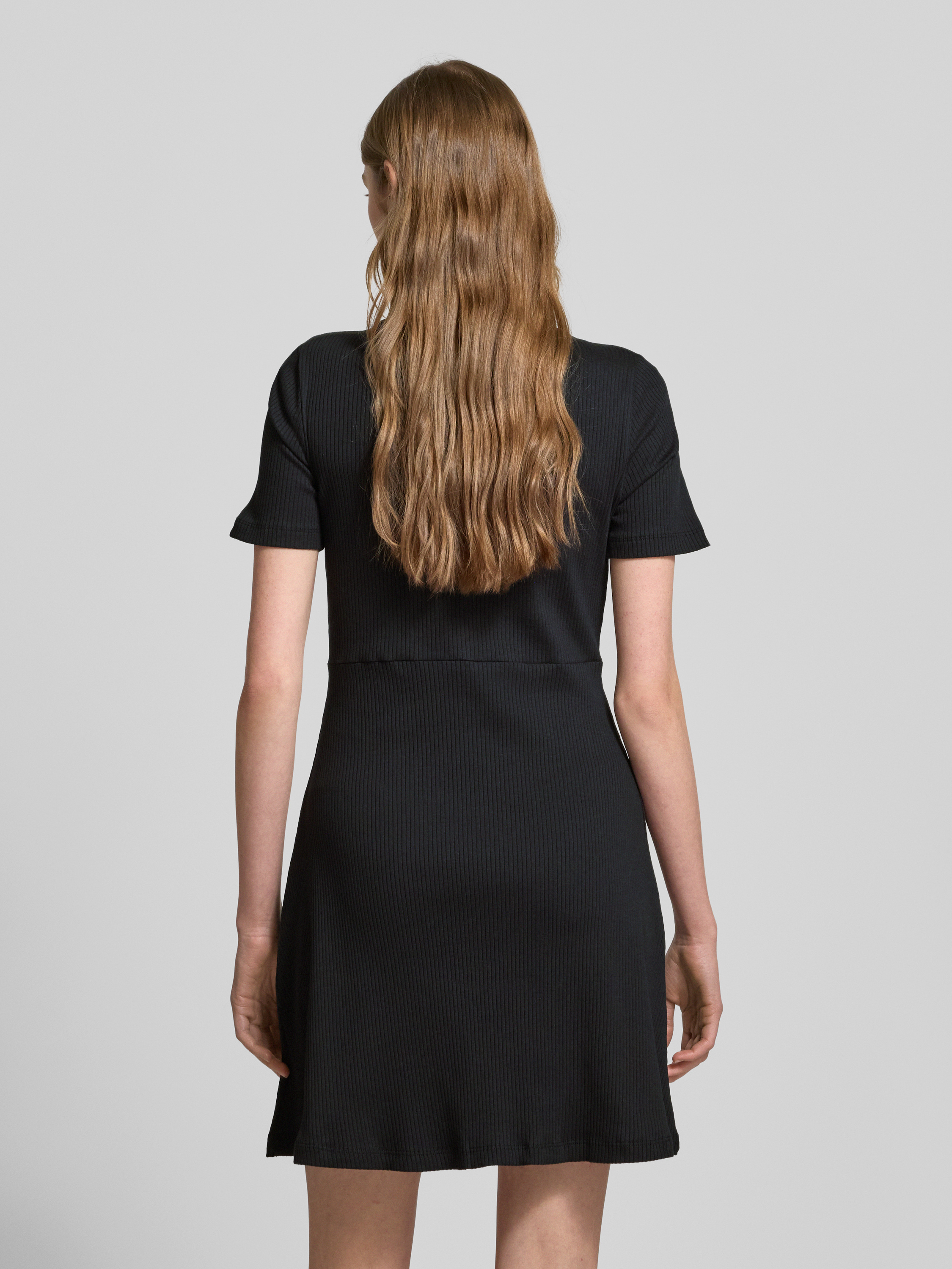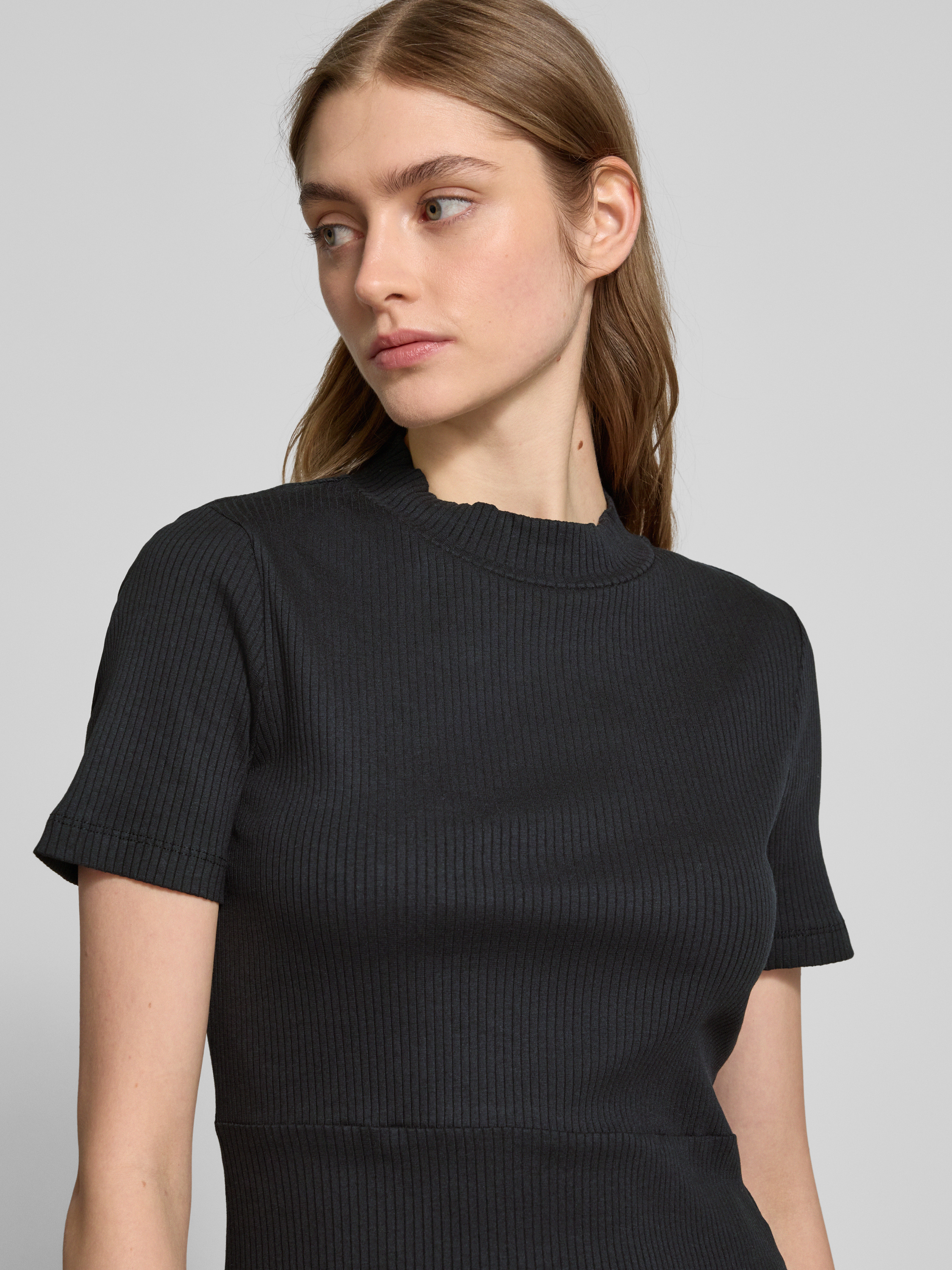 T-shirtjurk in riblook, model 'ELINOR' in zwart