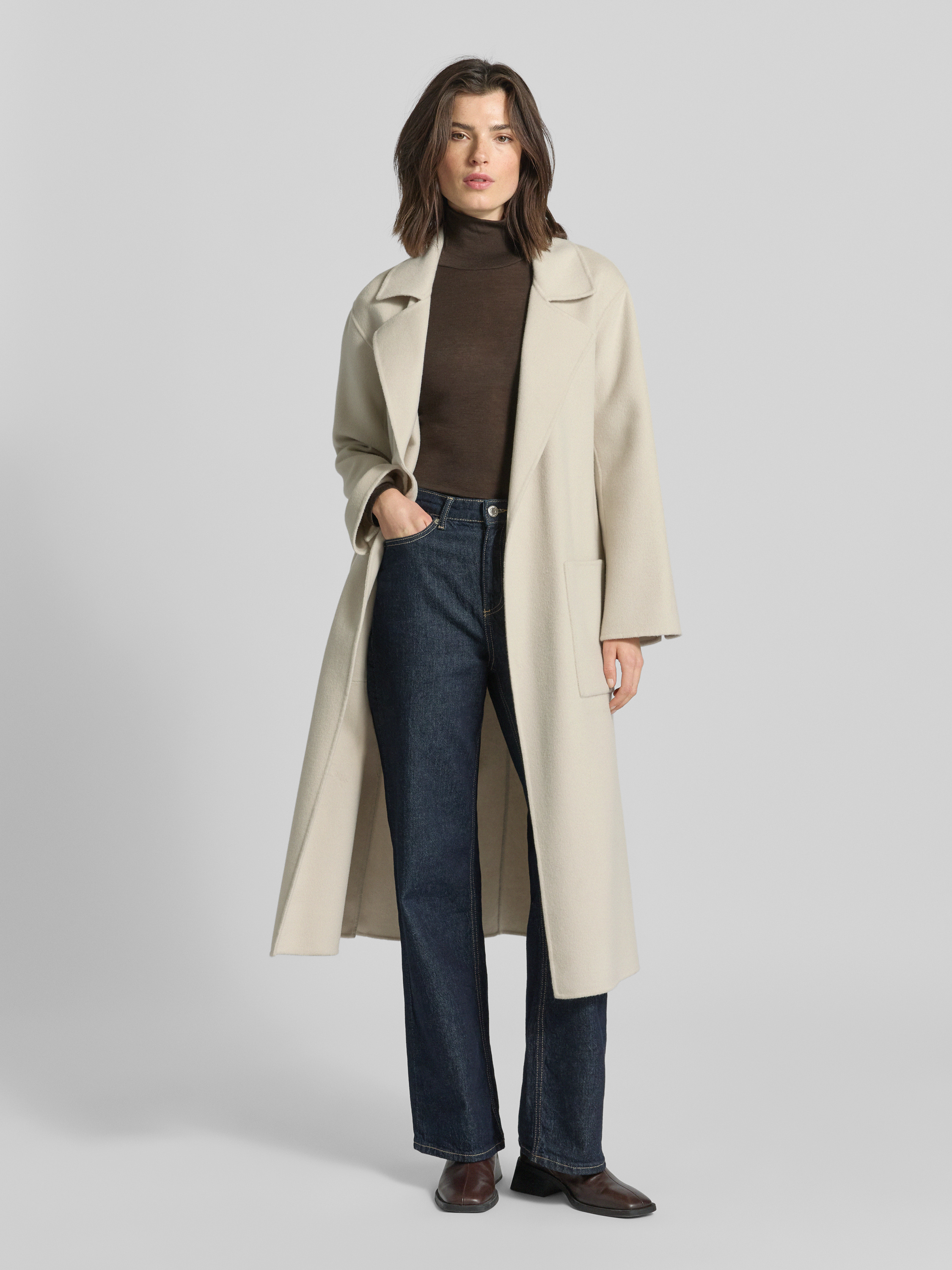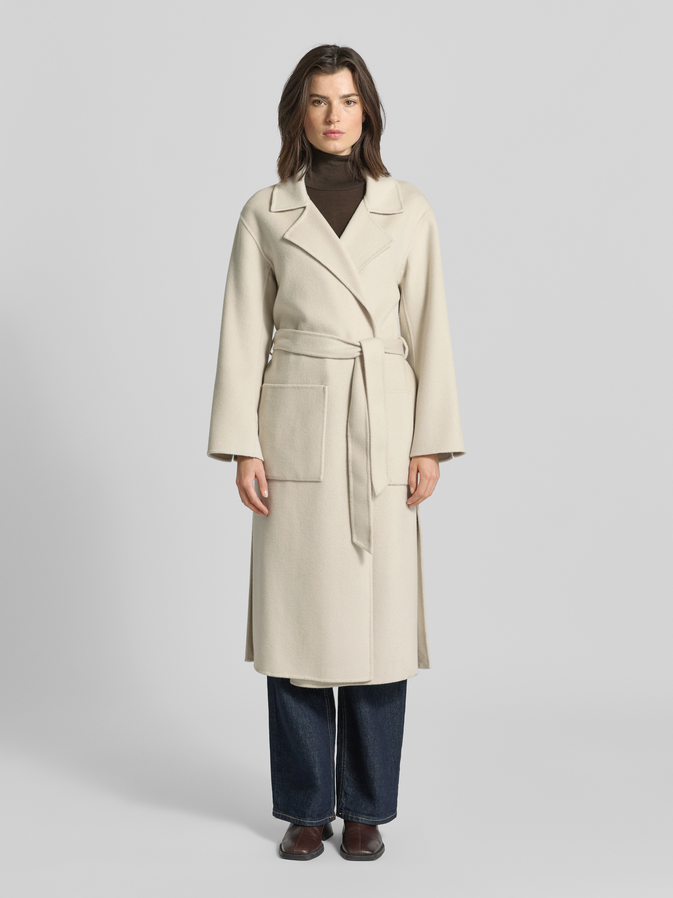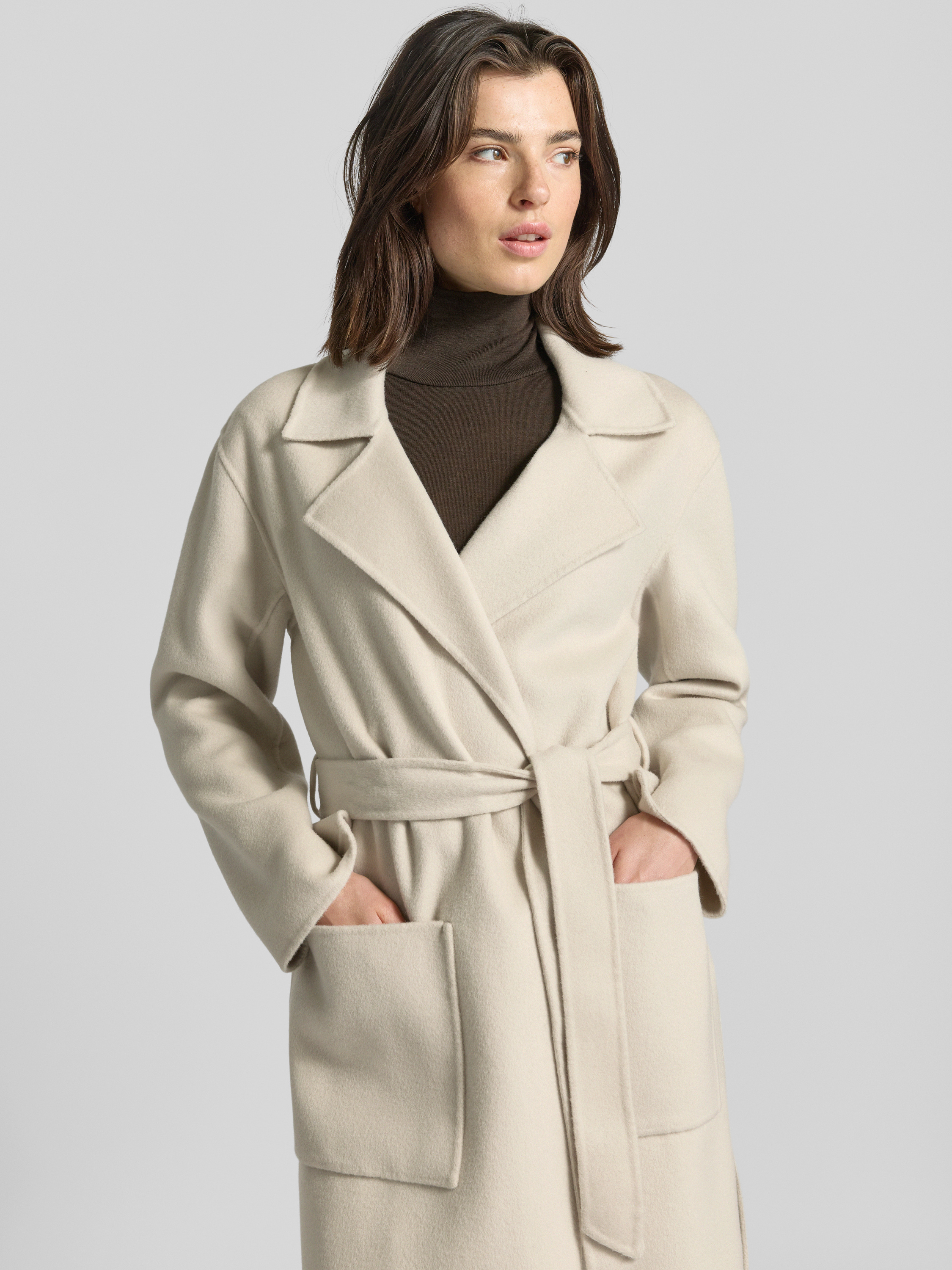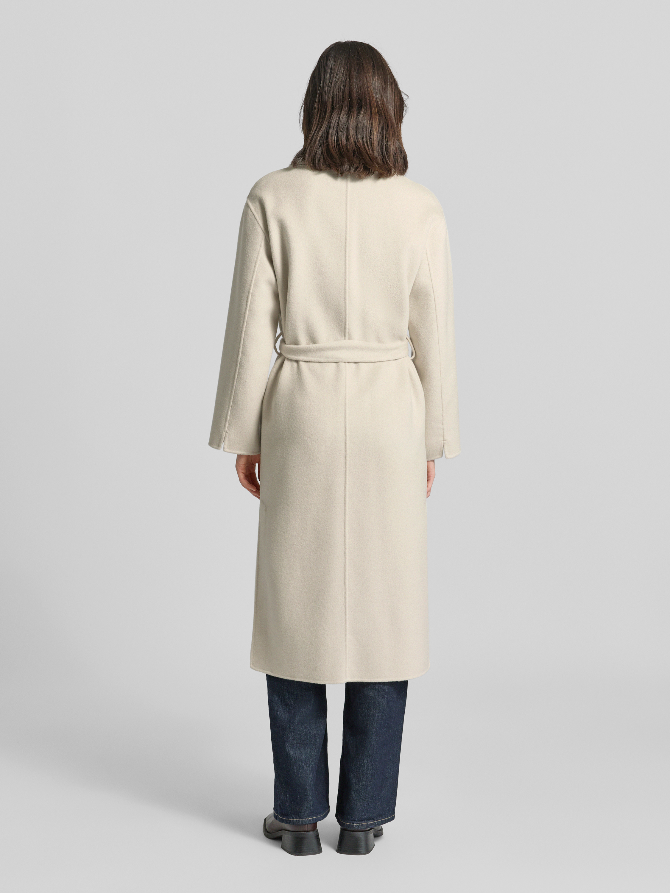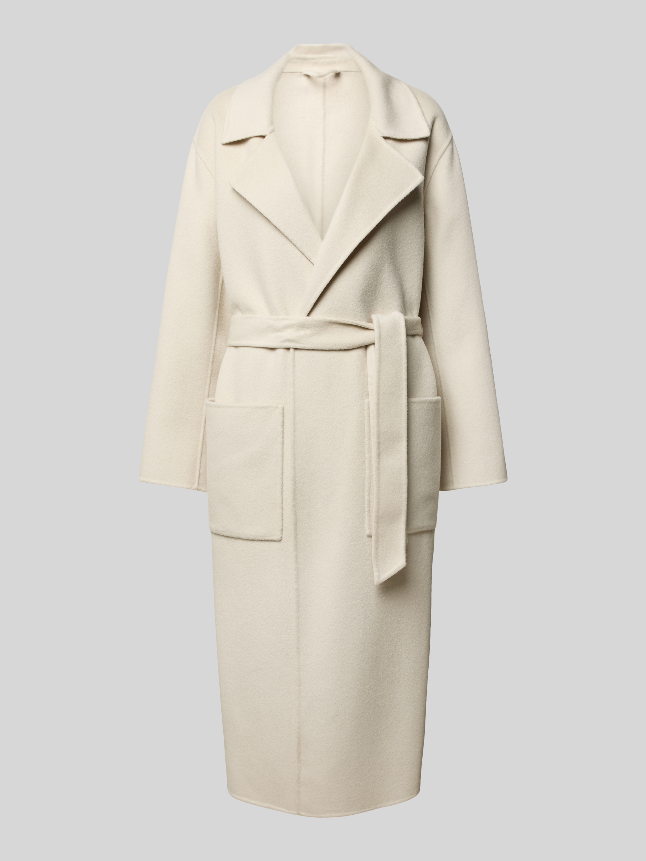 OAKWOODLange jas van lanawolmix met strikceintuur, model 'ALLEGORIA' in beige