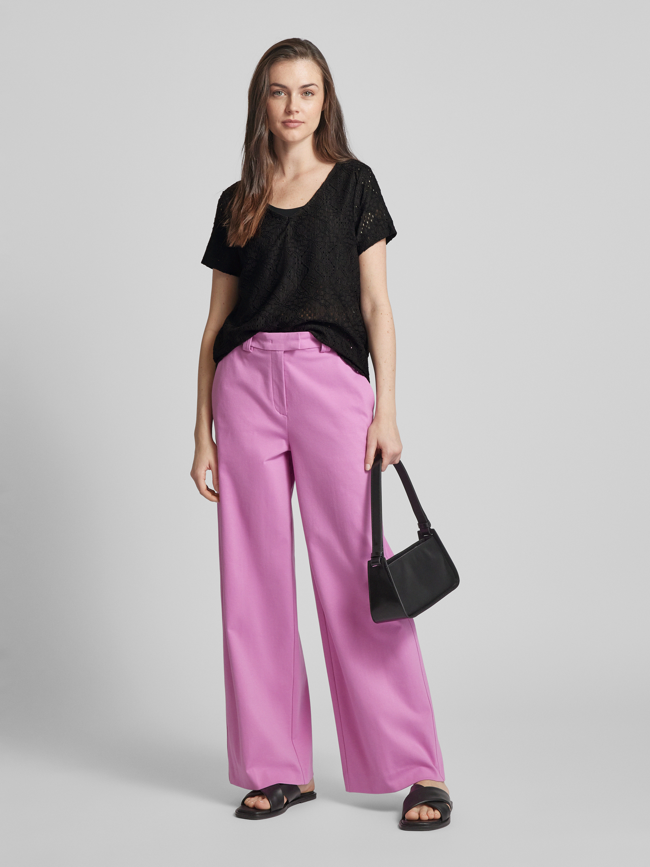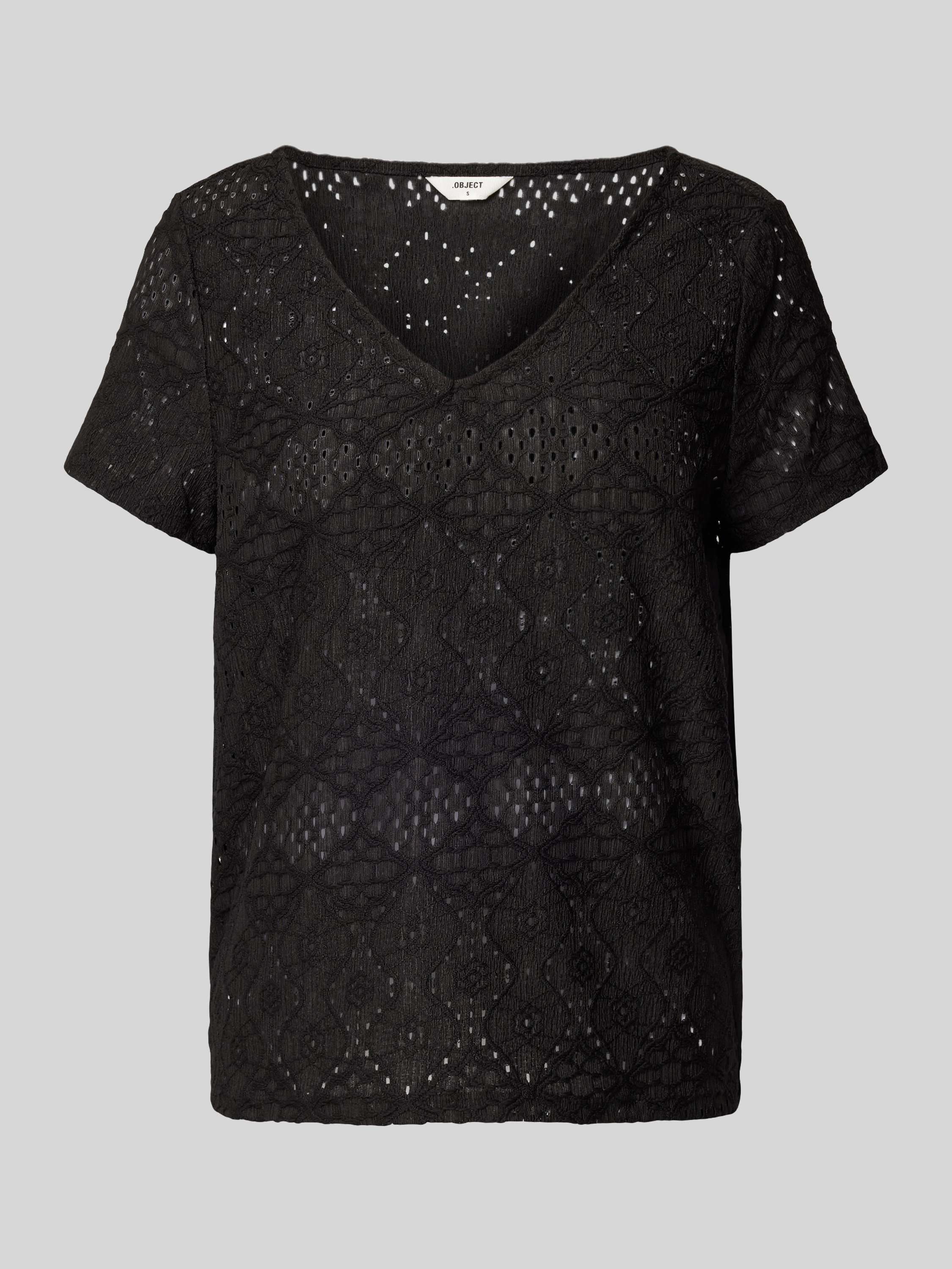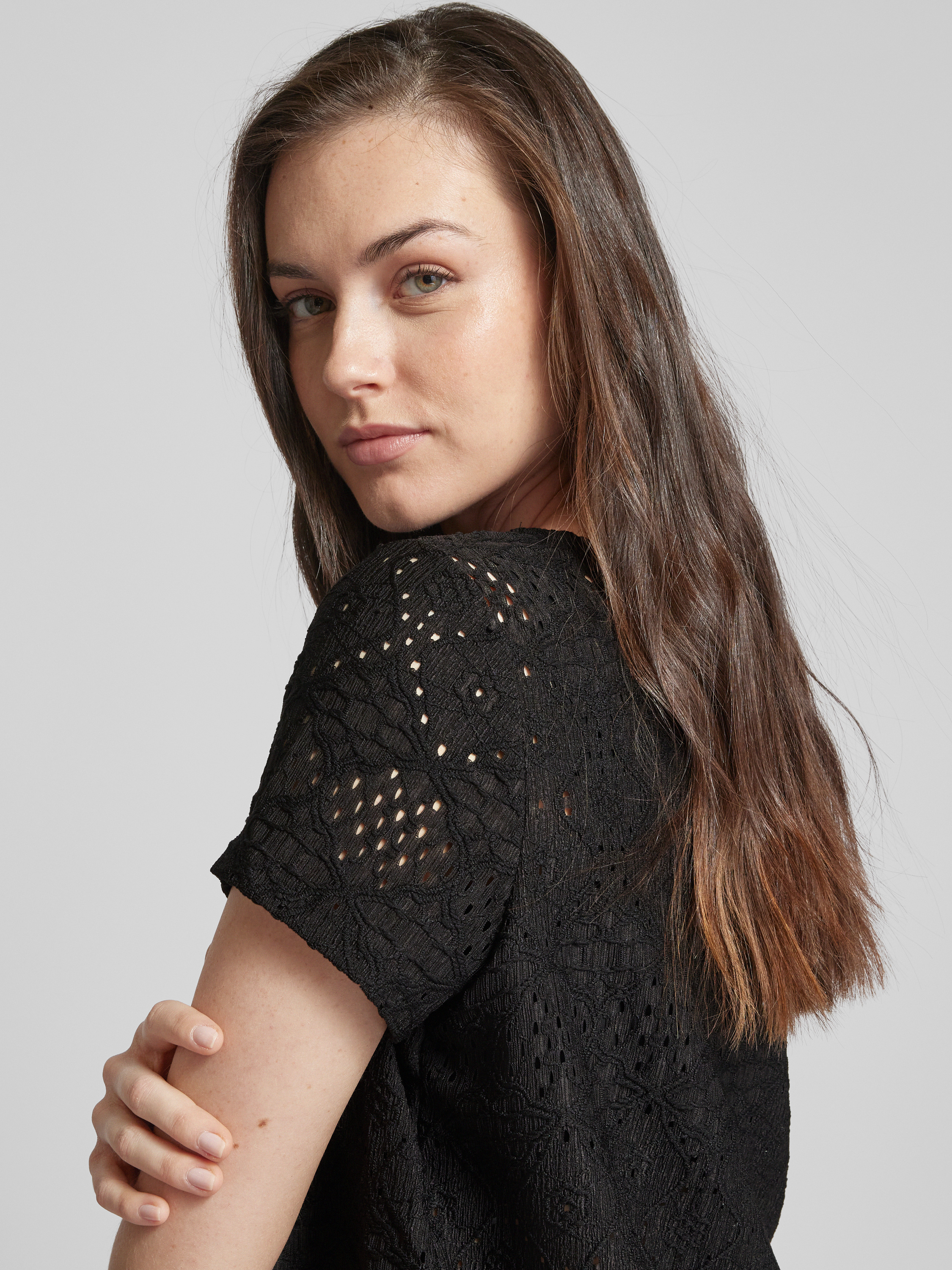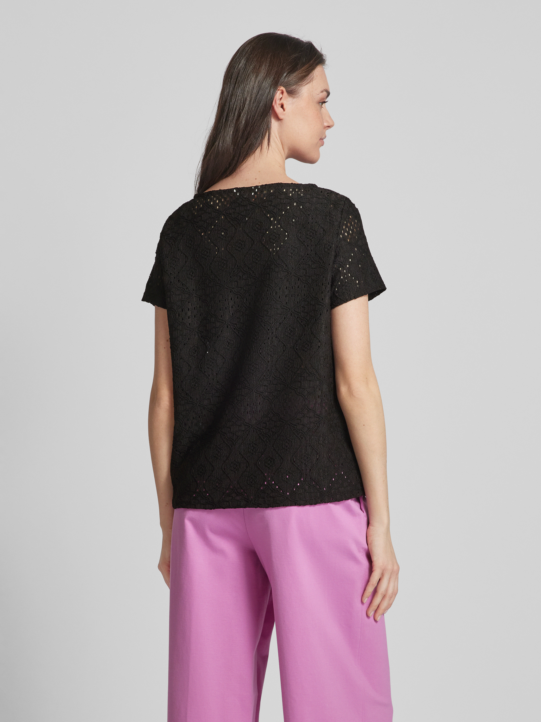 T-shirt met broderie anglaise, model 'FEODORA' in zwart