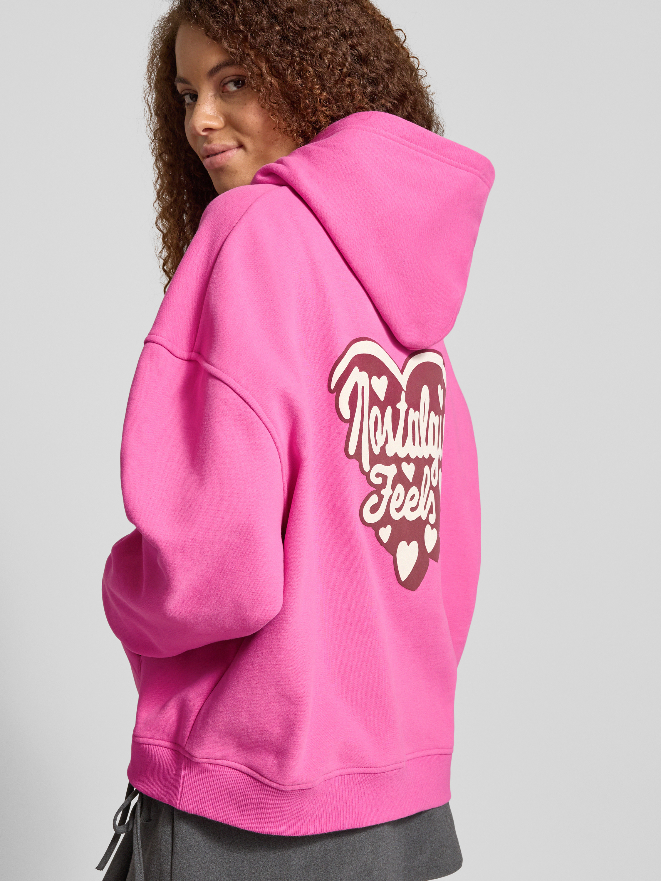 Hoodie met motiefprint aan de achterkant, model 'Nostalgia Heart' in felroze