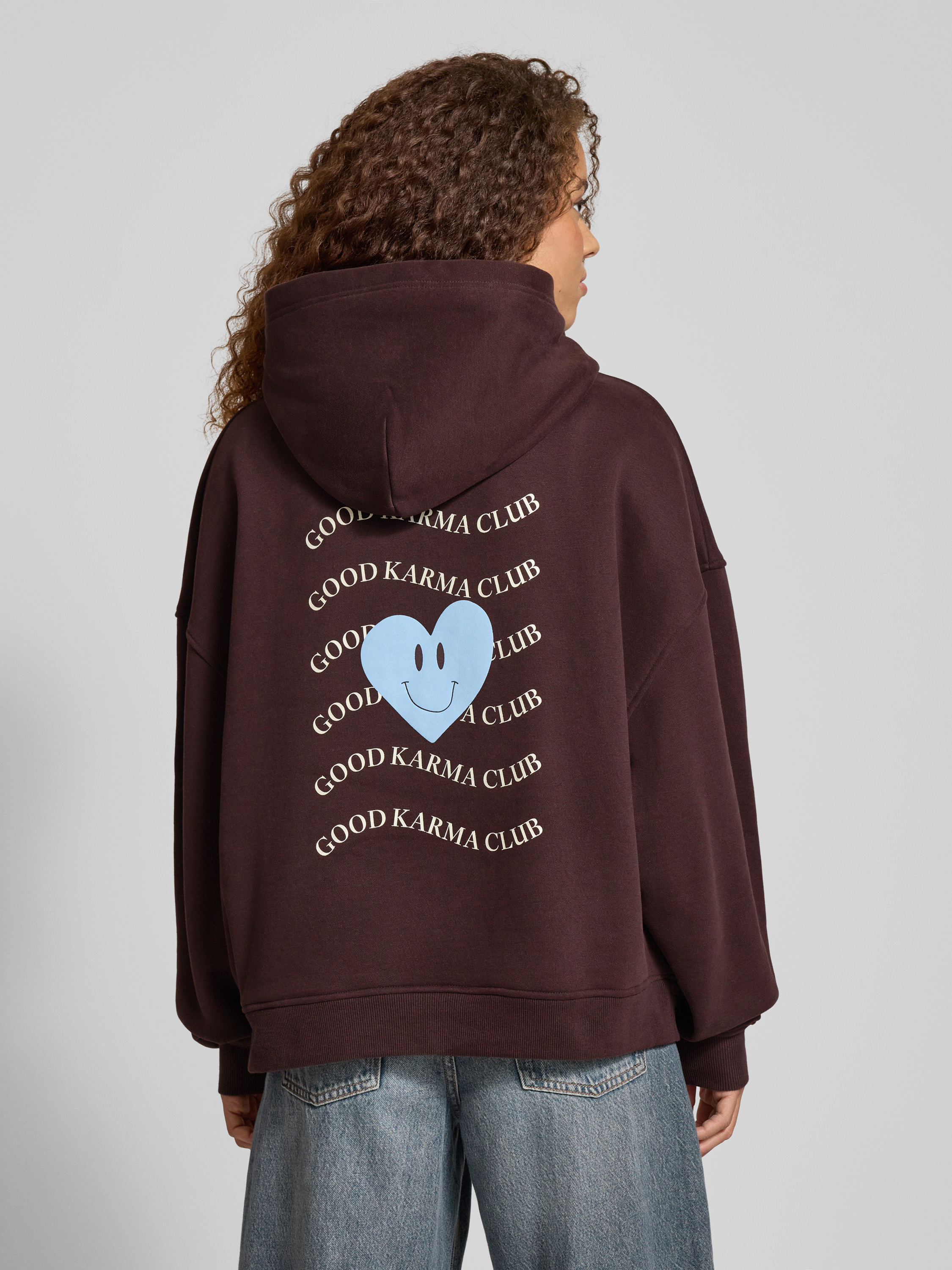 Hoodie met print aan de achterkant, model 'Good Karma Wave' in donkerbruin