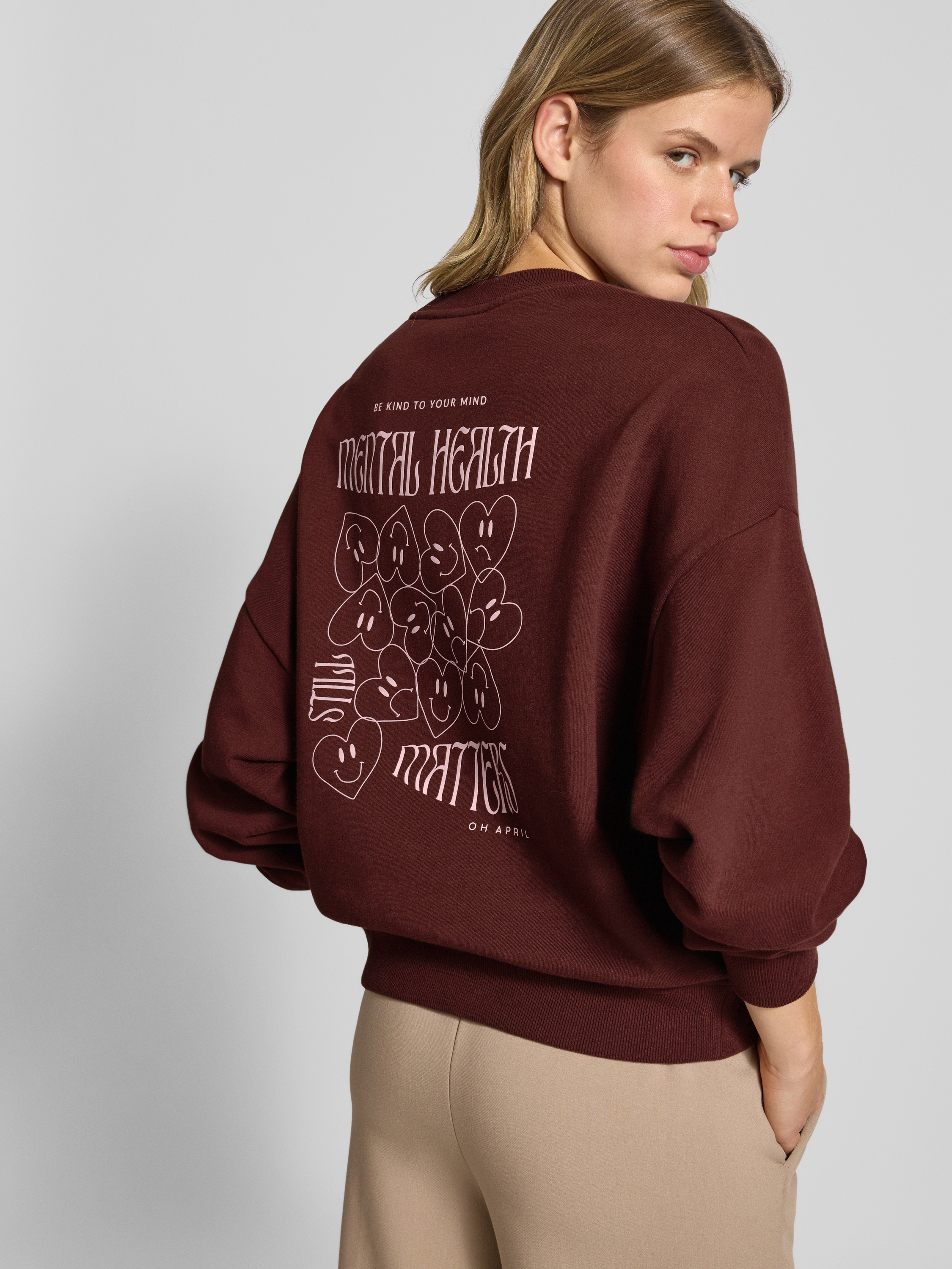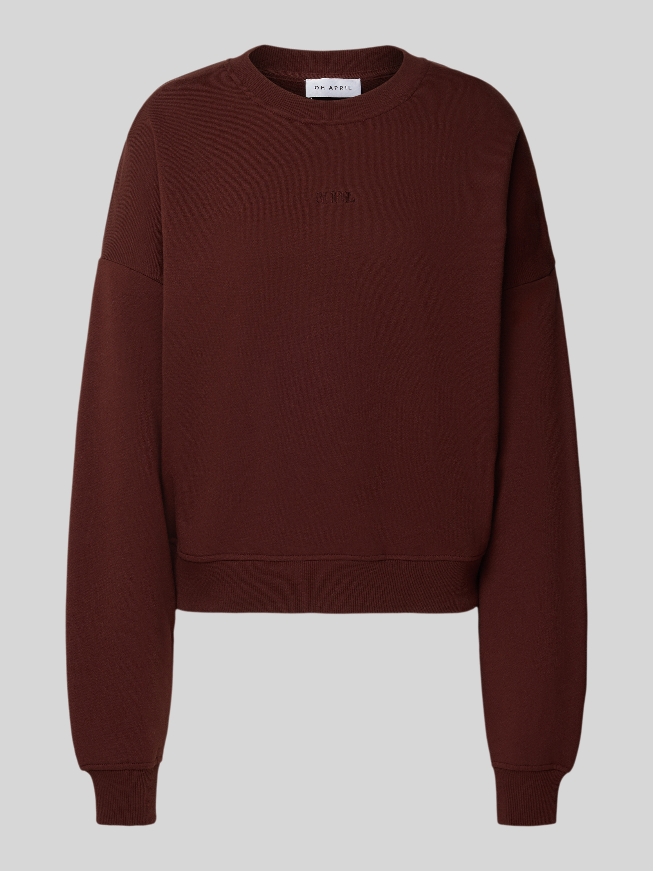 Oversized sweatshirt met labelstitching in chocoladebruin