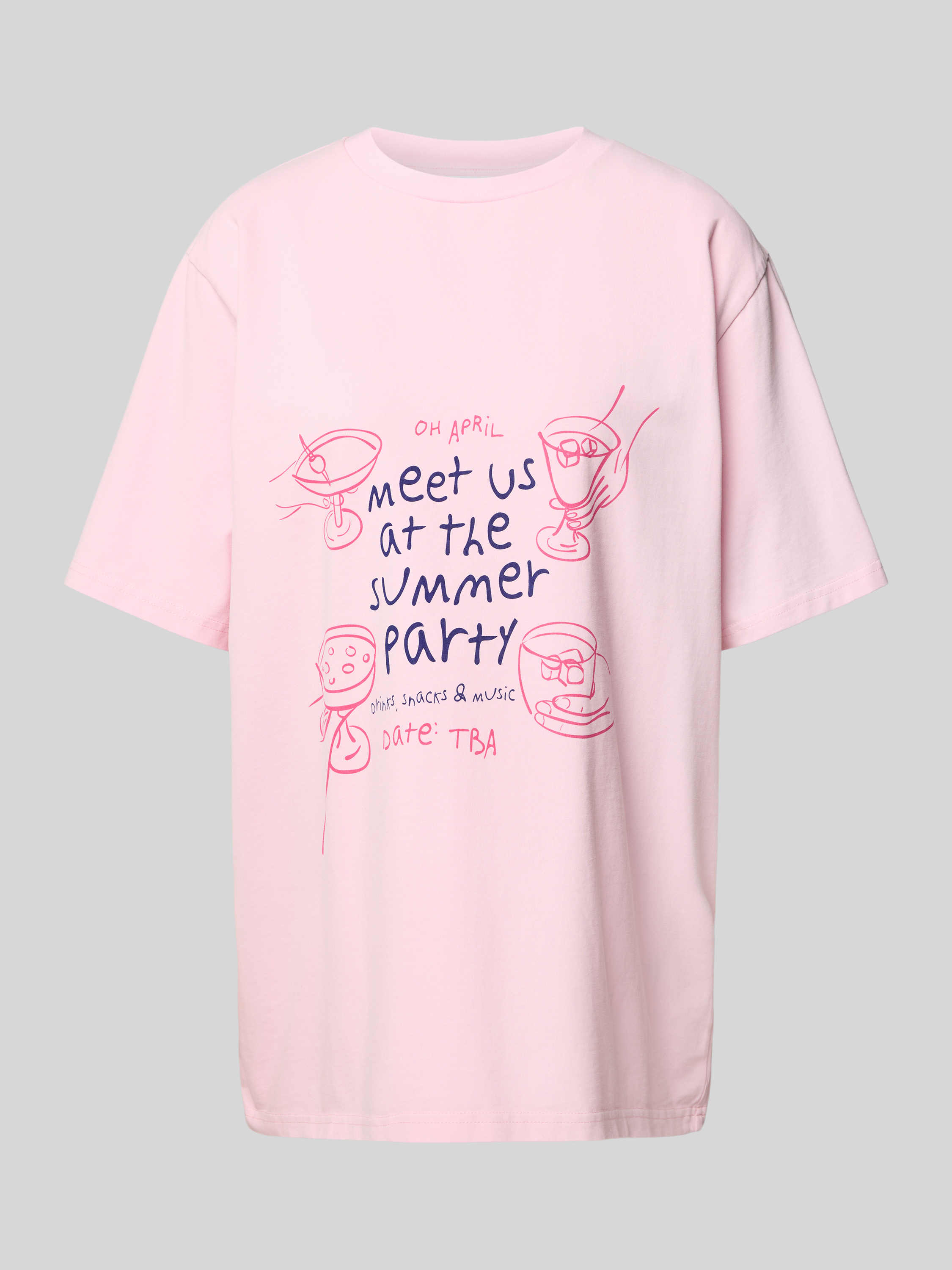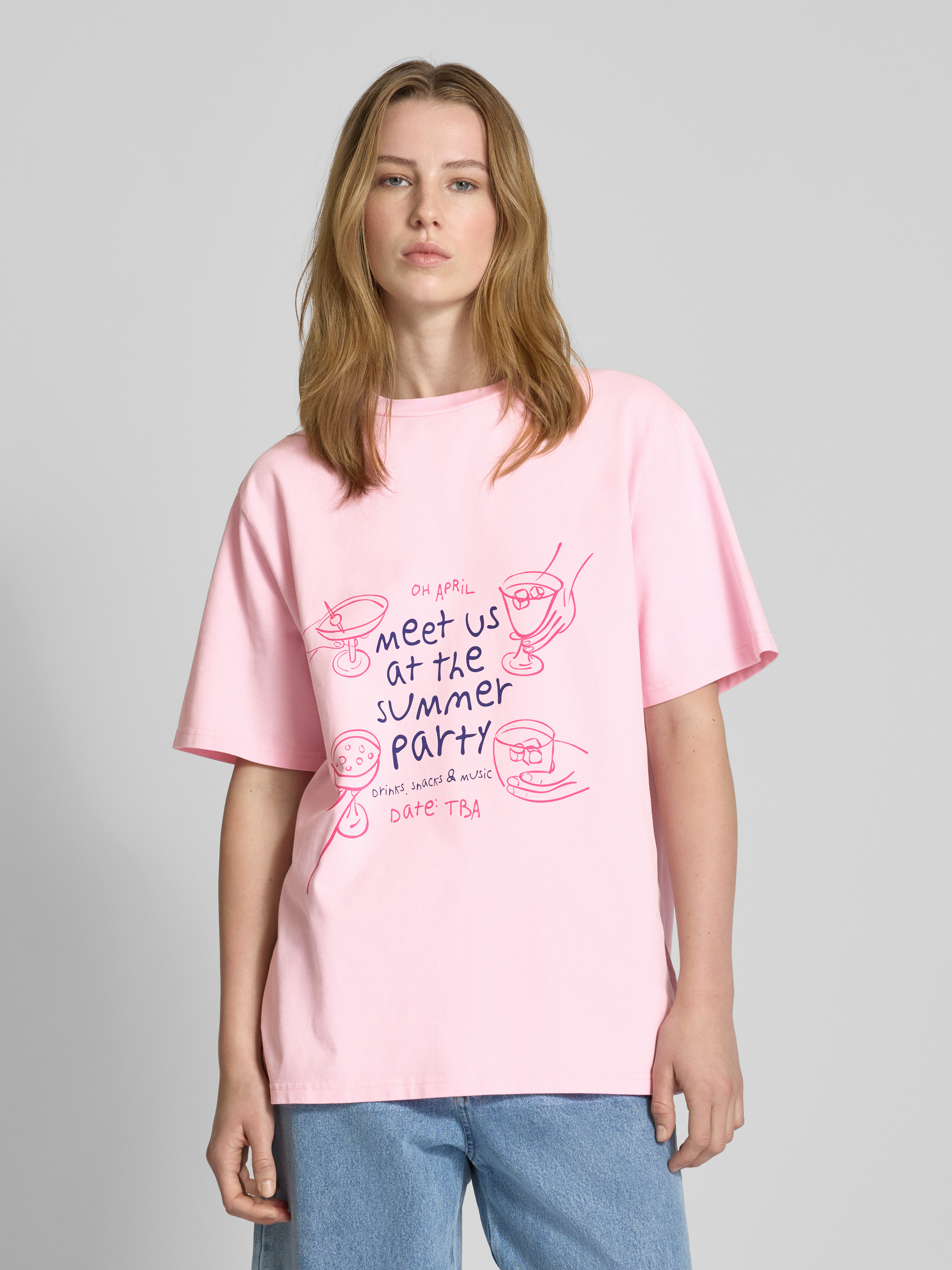 Oversized T-shirt met ronde hals, model 'Summer Party' in roze