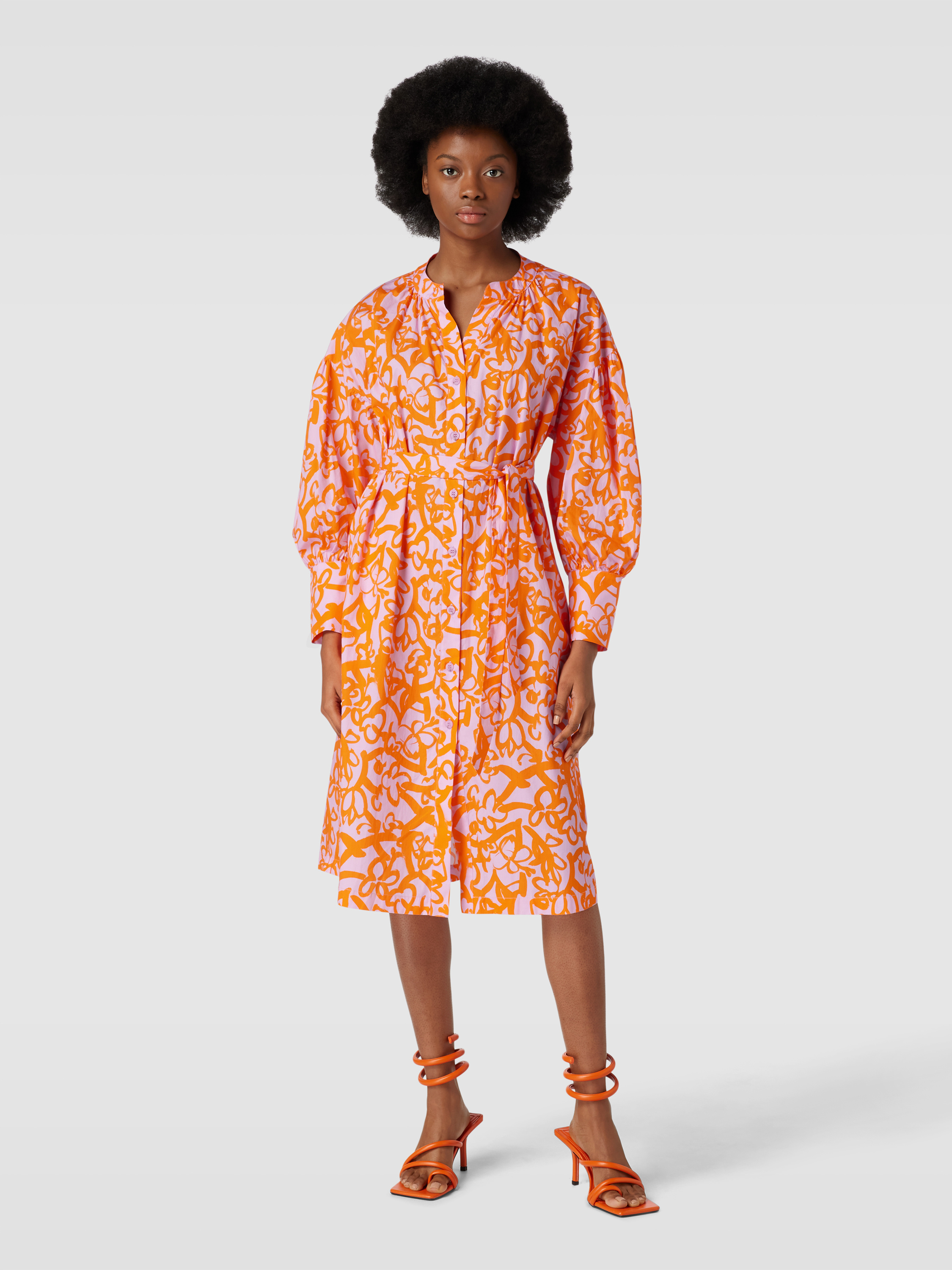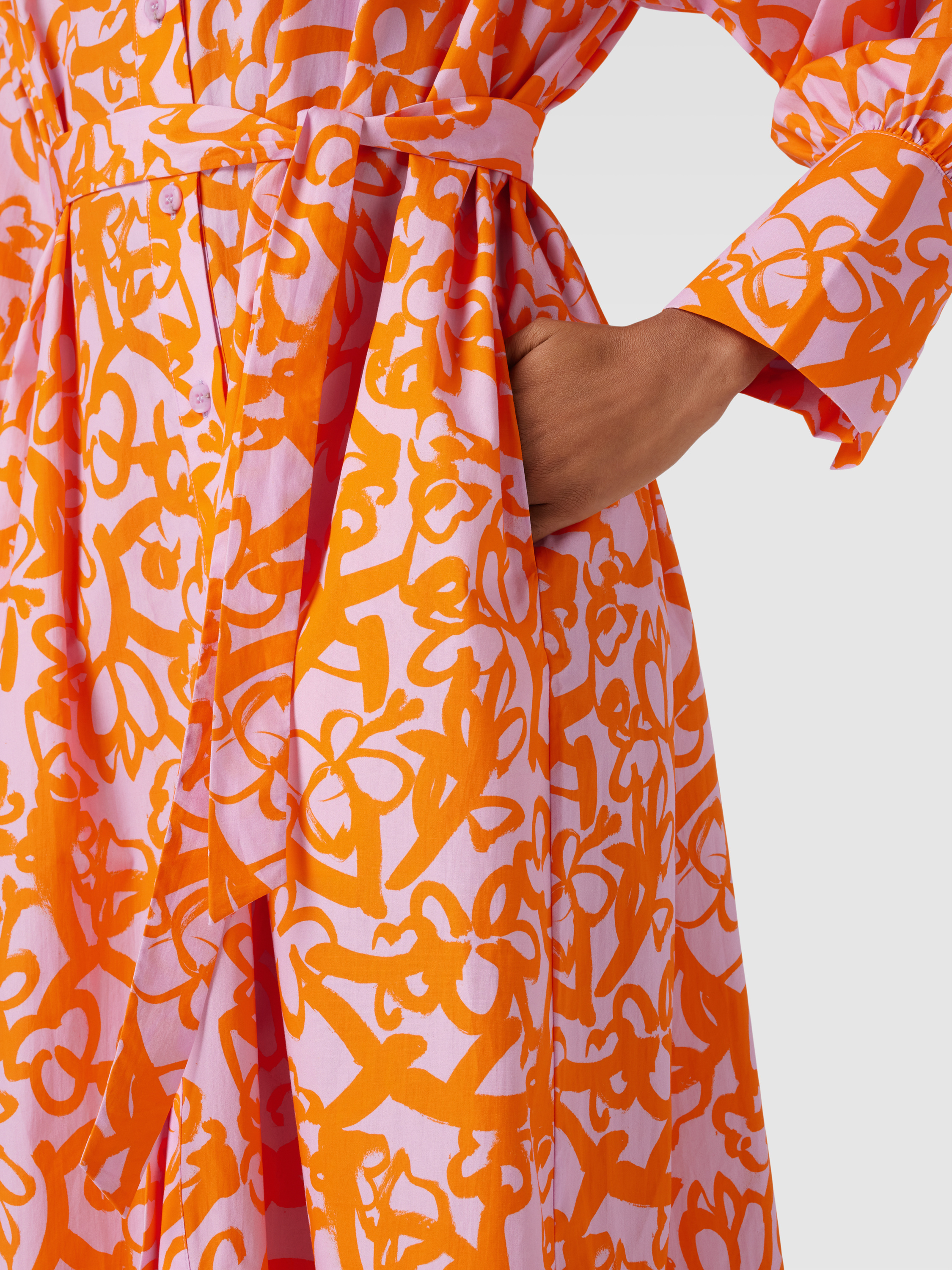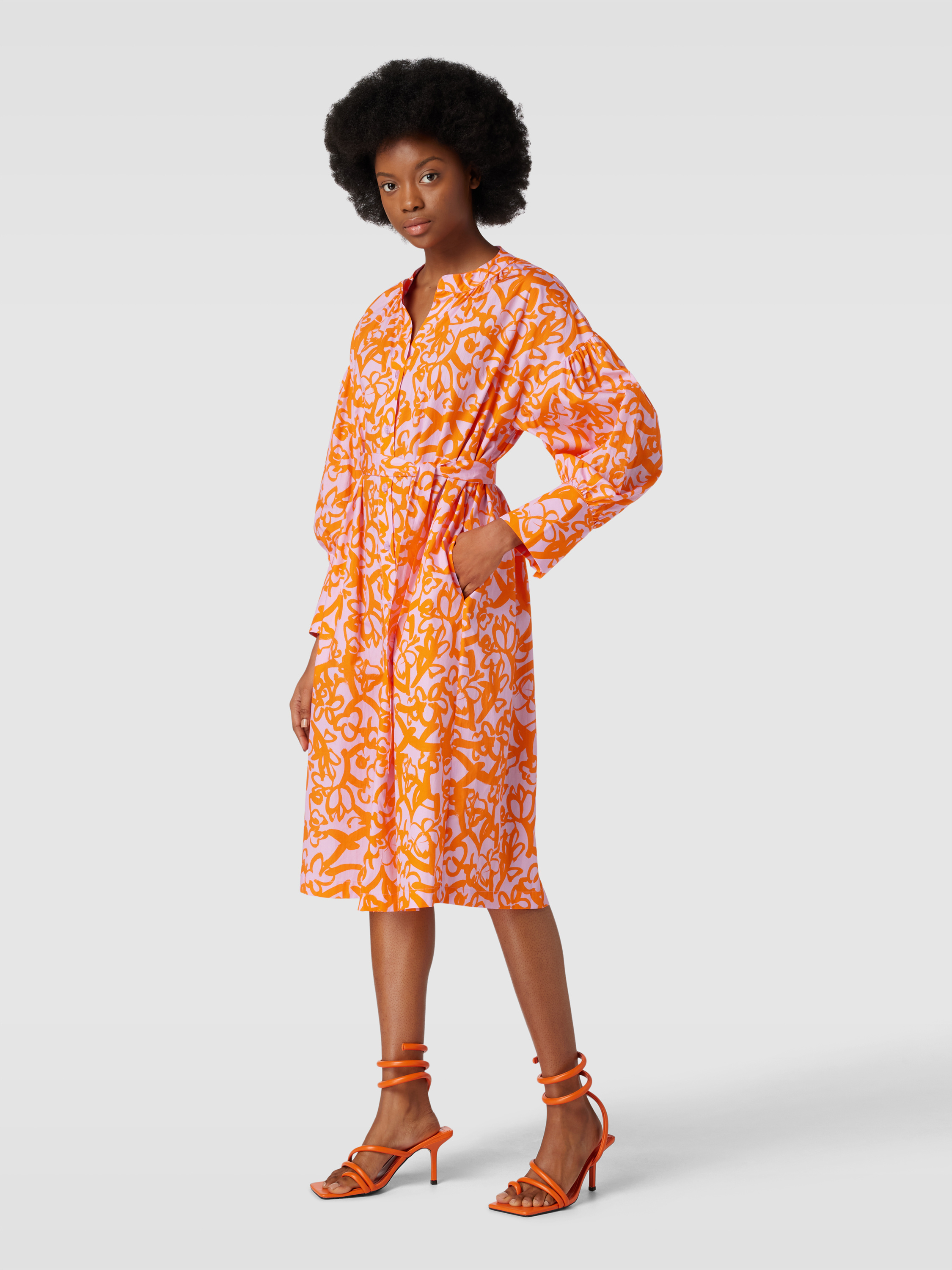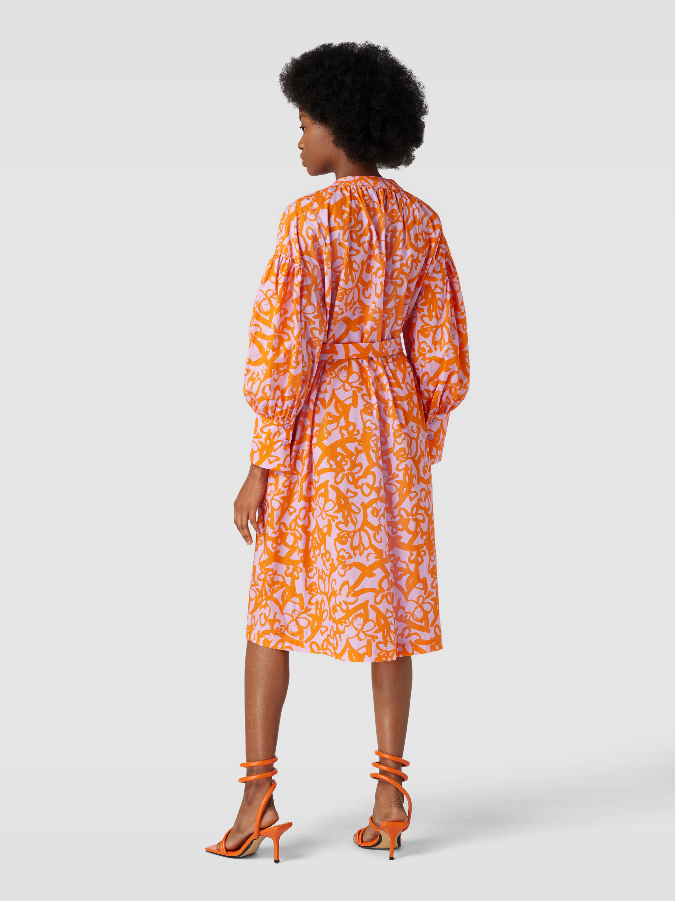OililyMidi-jurk met strikceintuur, model 'DASH'' in felroze