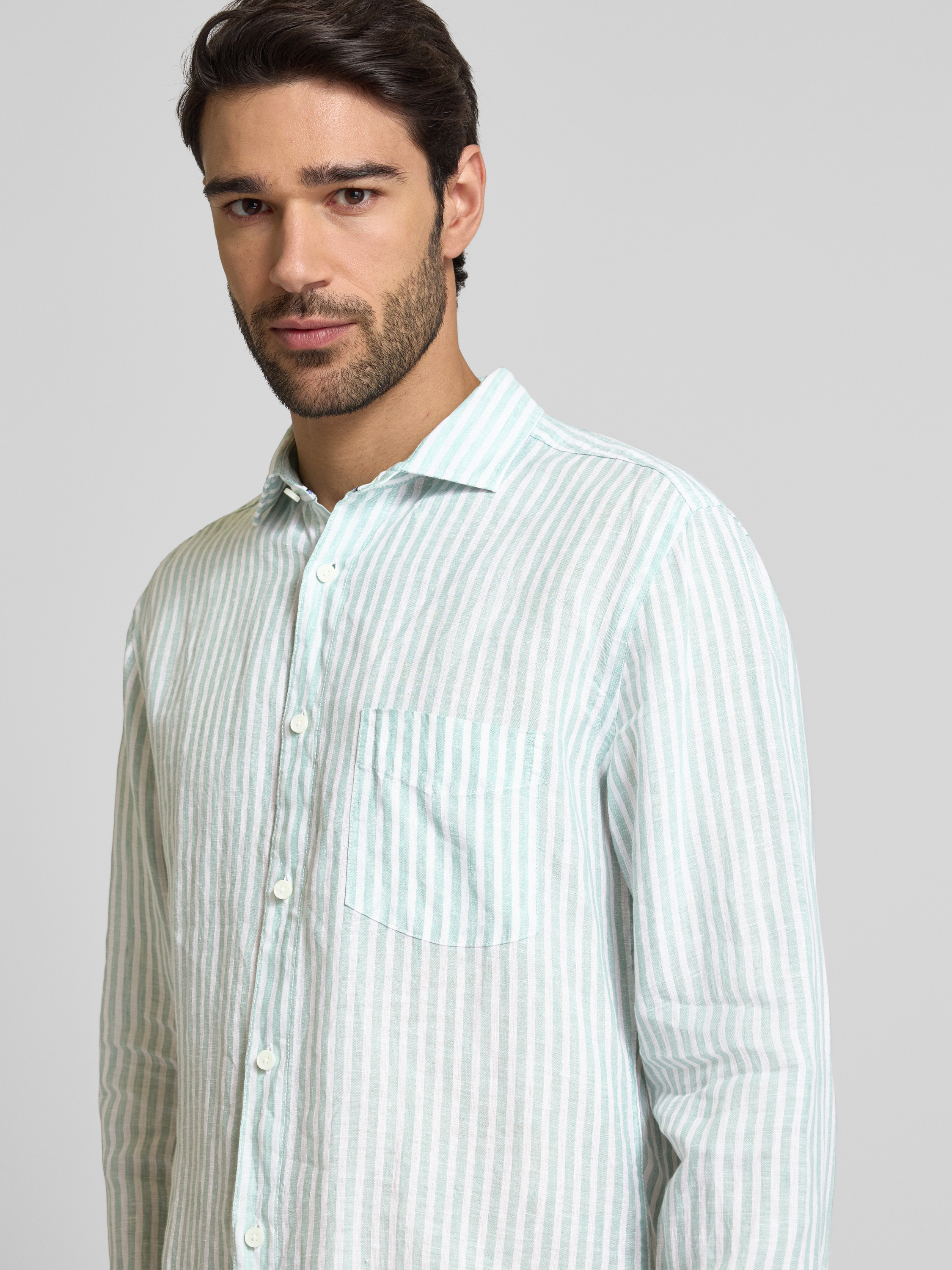 OLYMP Level FiveRegular fit linnen overhemd met borstzak in mintgroen
