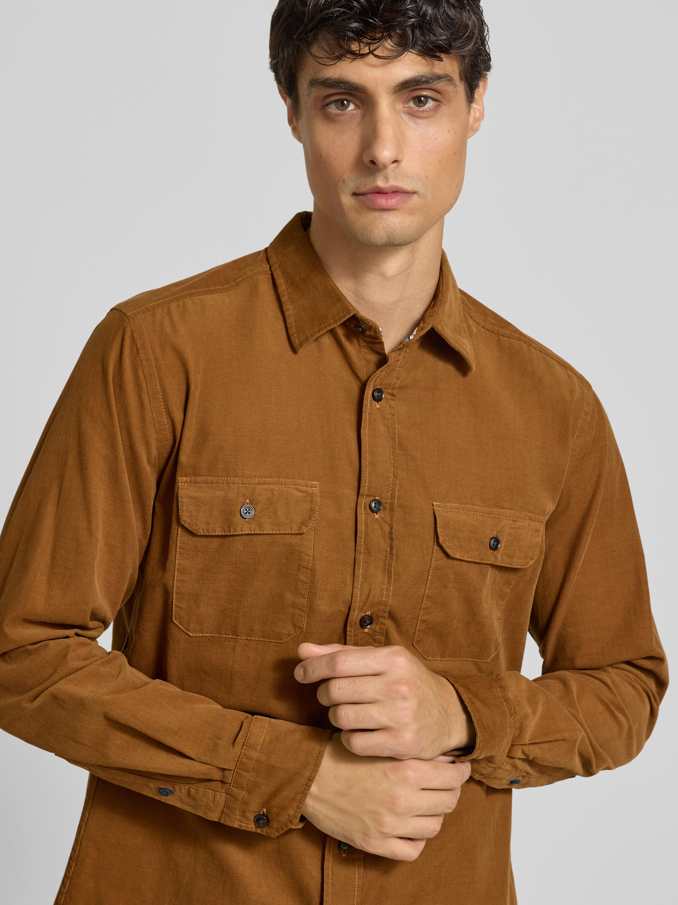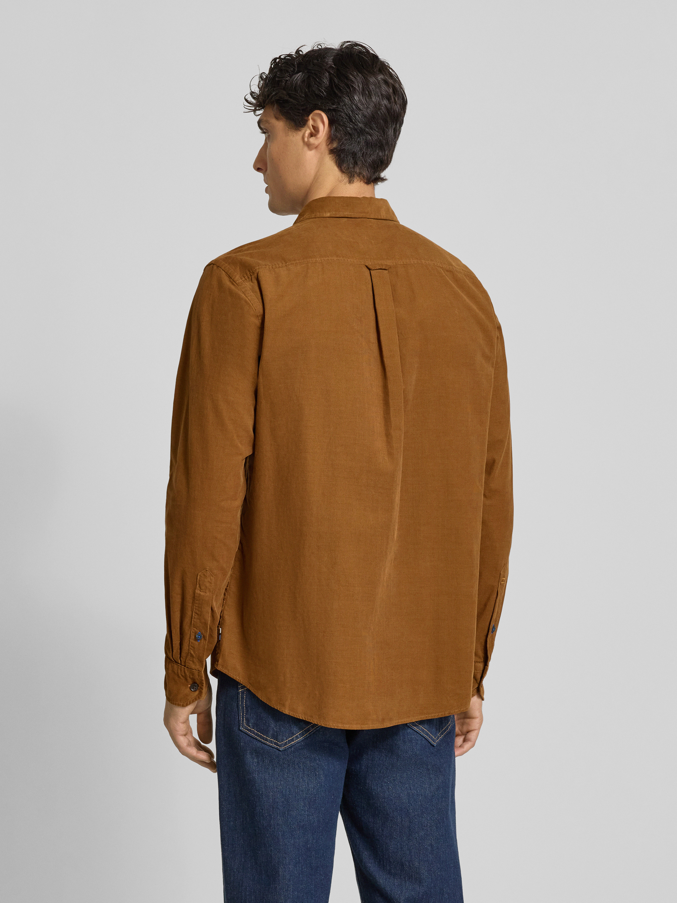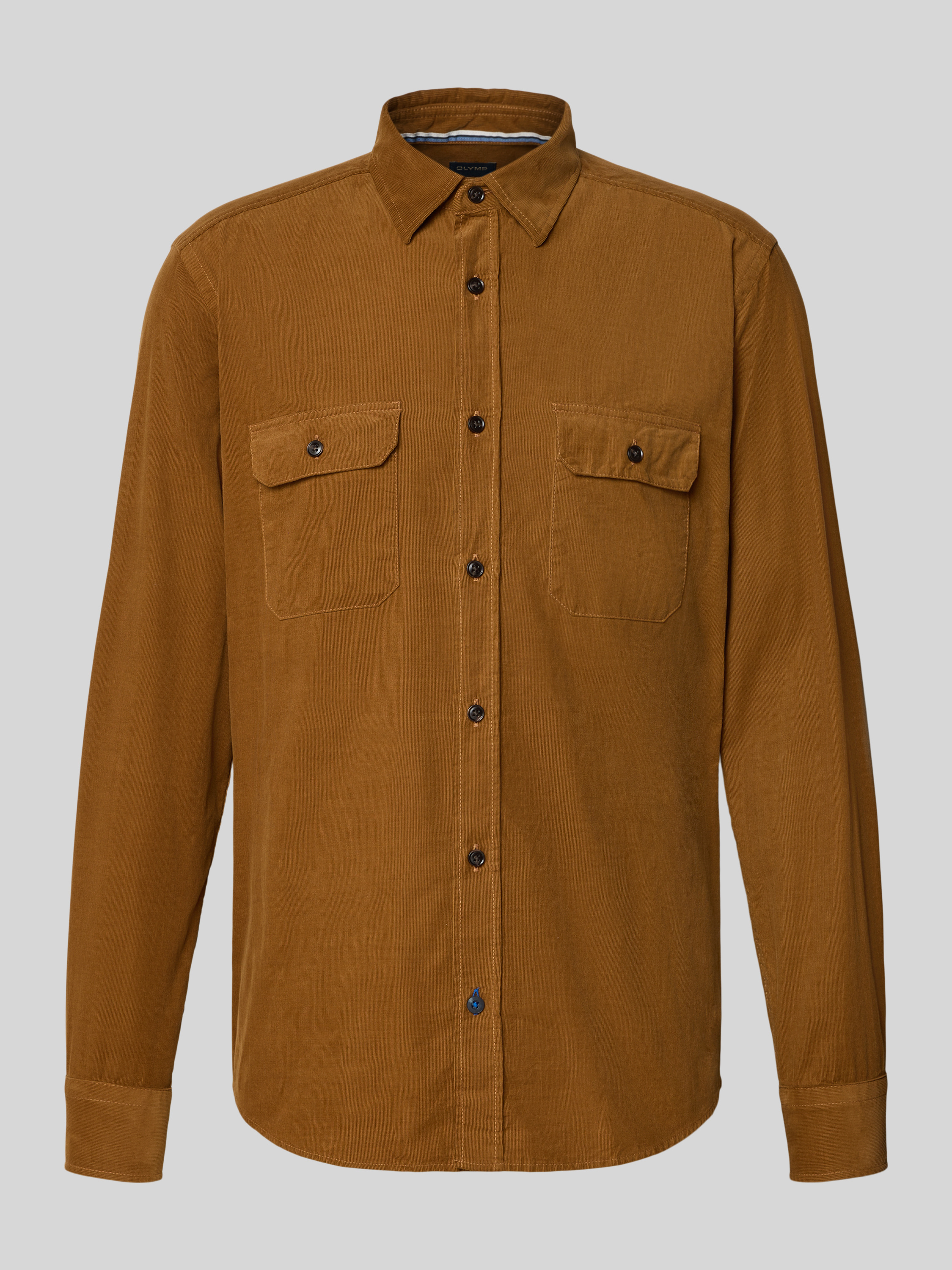 OLYMP Level FiveRegular fit ribcordoverhemd met kentkraag in cognac