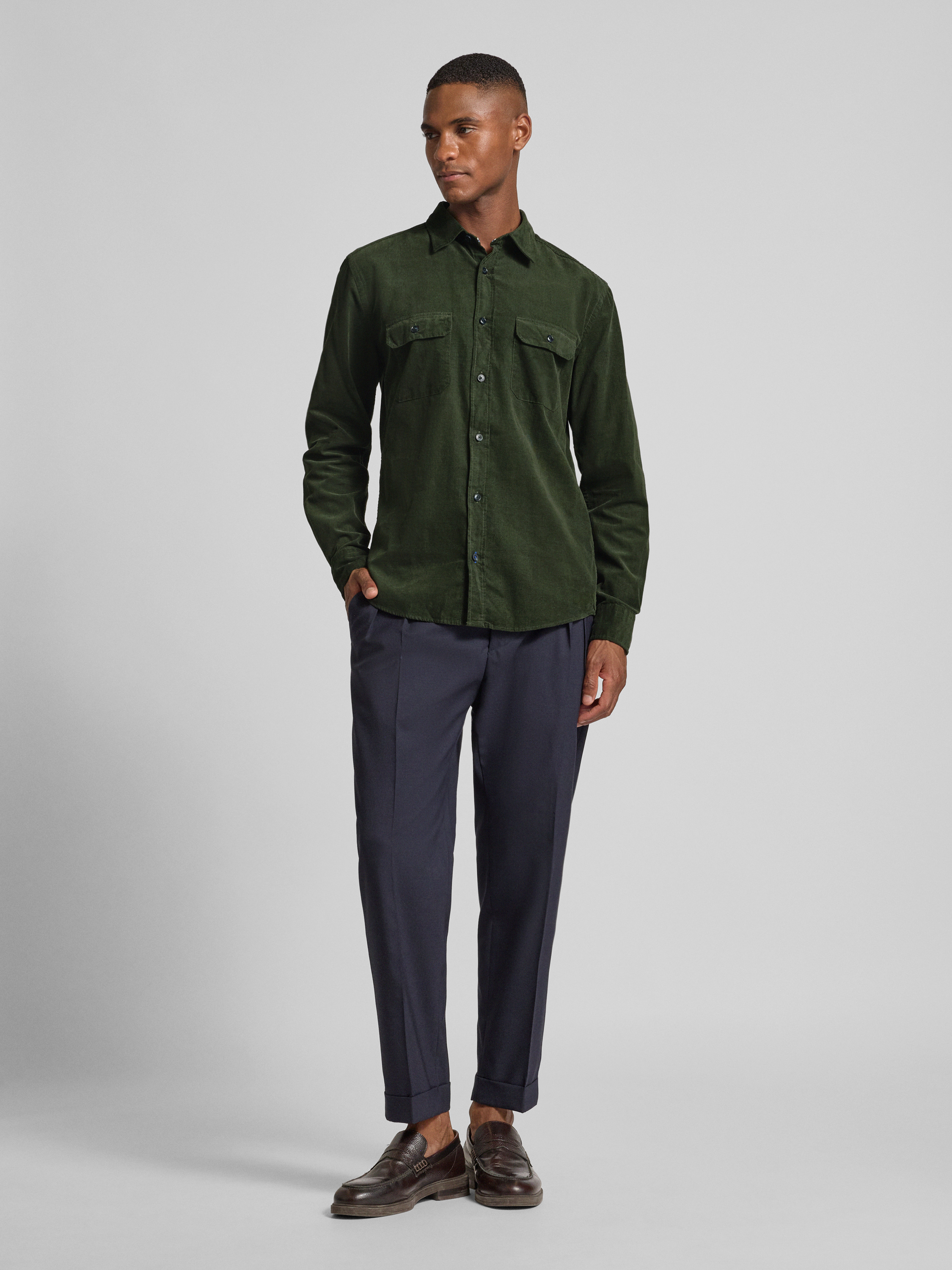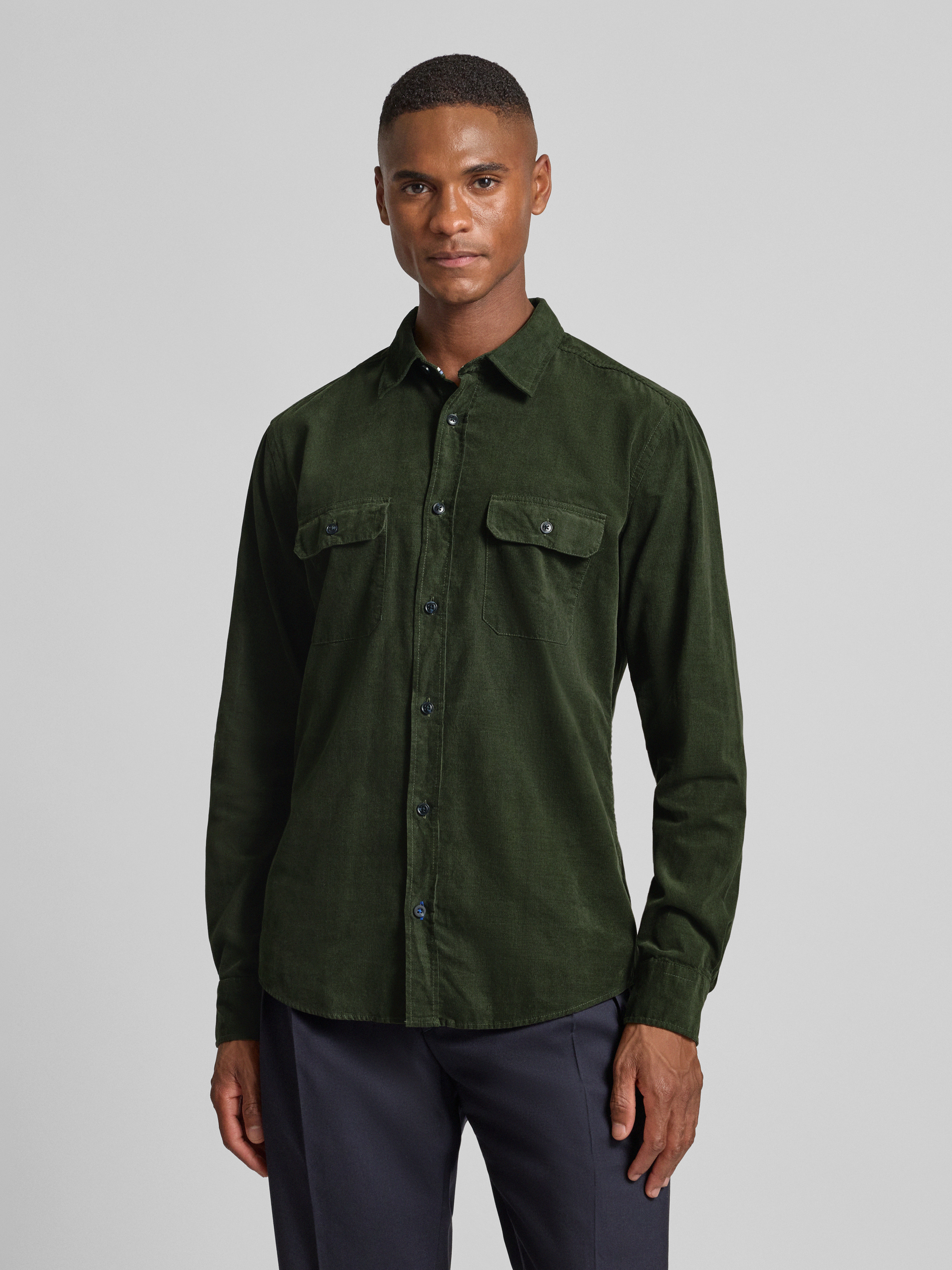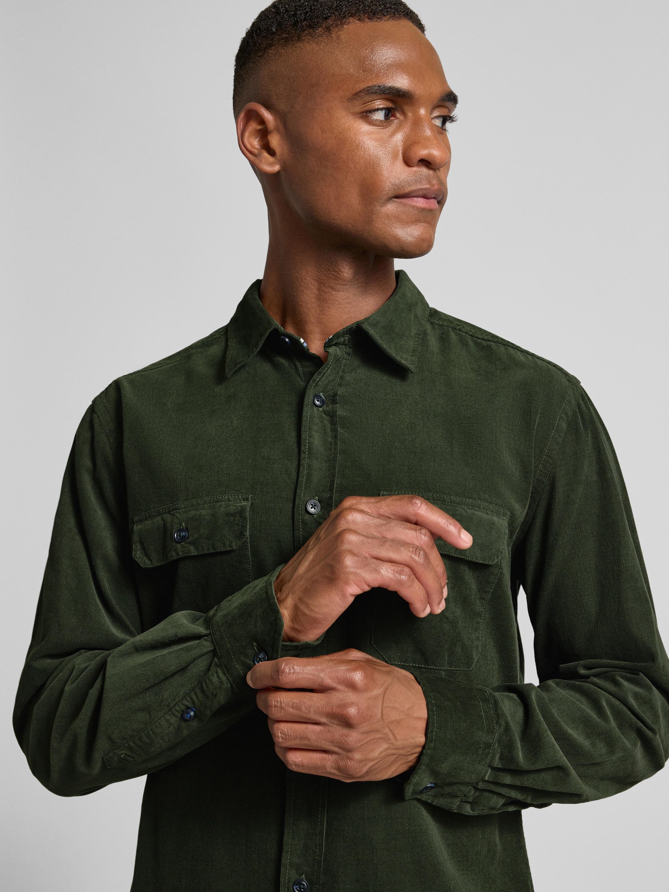 OLYMP Level FiveRegular fit ribcordoverhemd met kentkraag in donkergroen