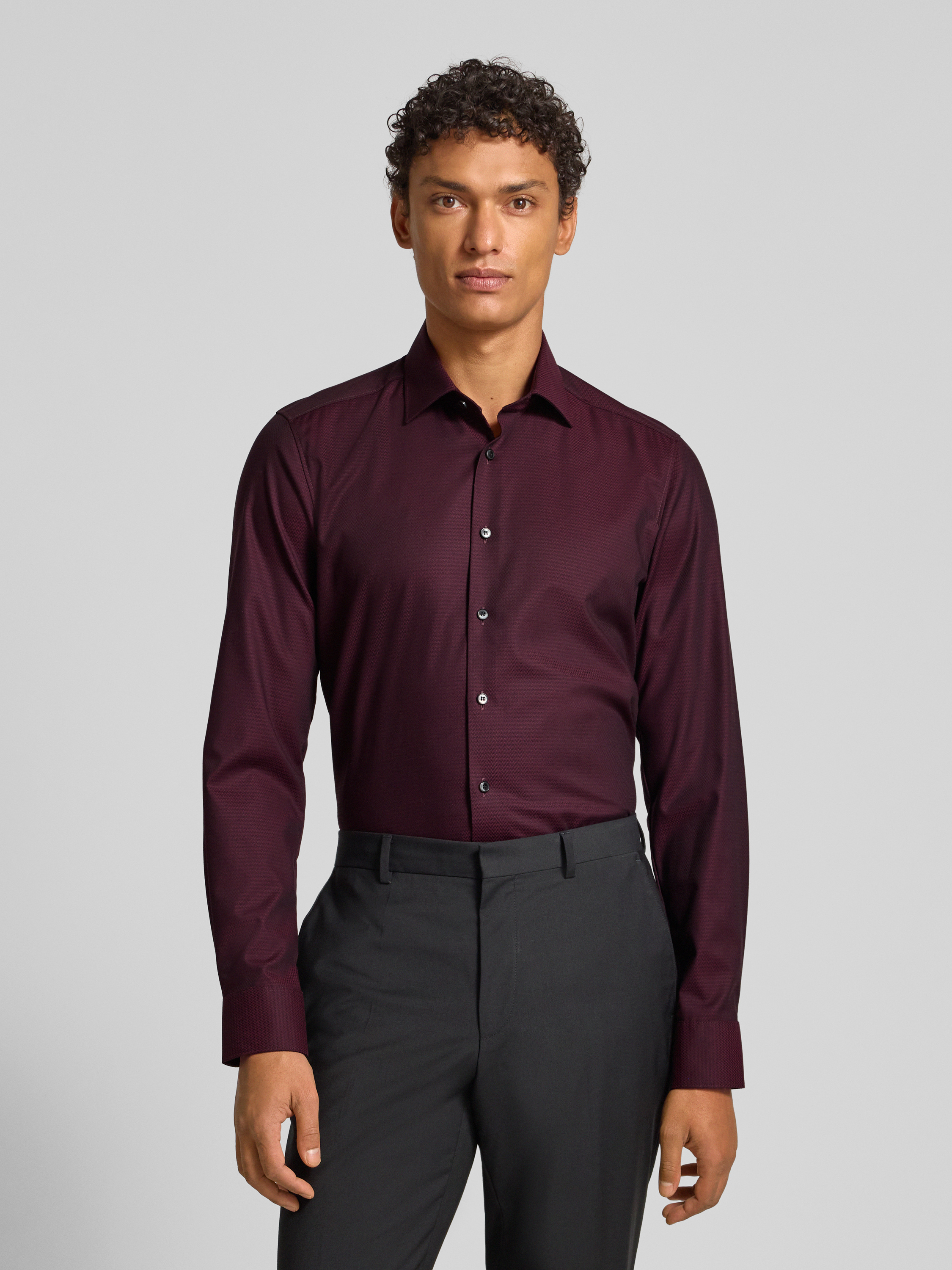 OLYMP Level FiveSlim fit zakelijk overhemd met kentkraag in bordeaux