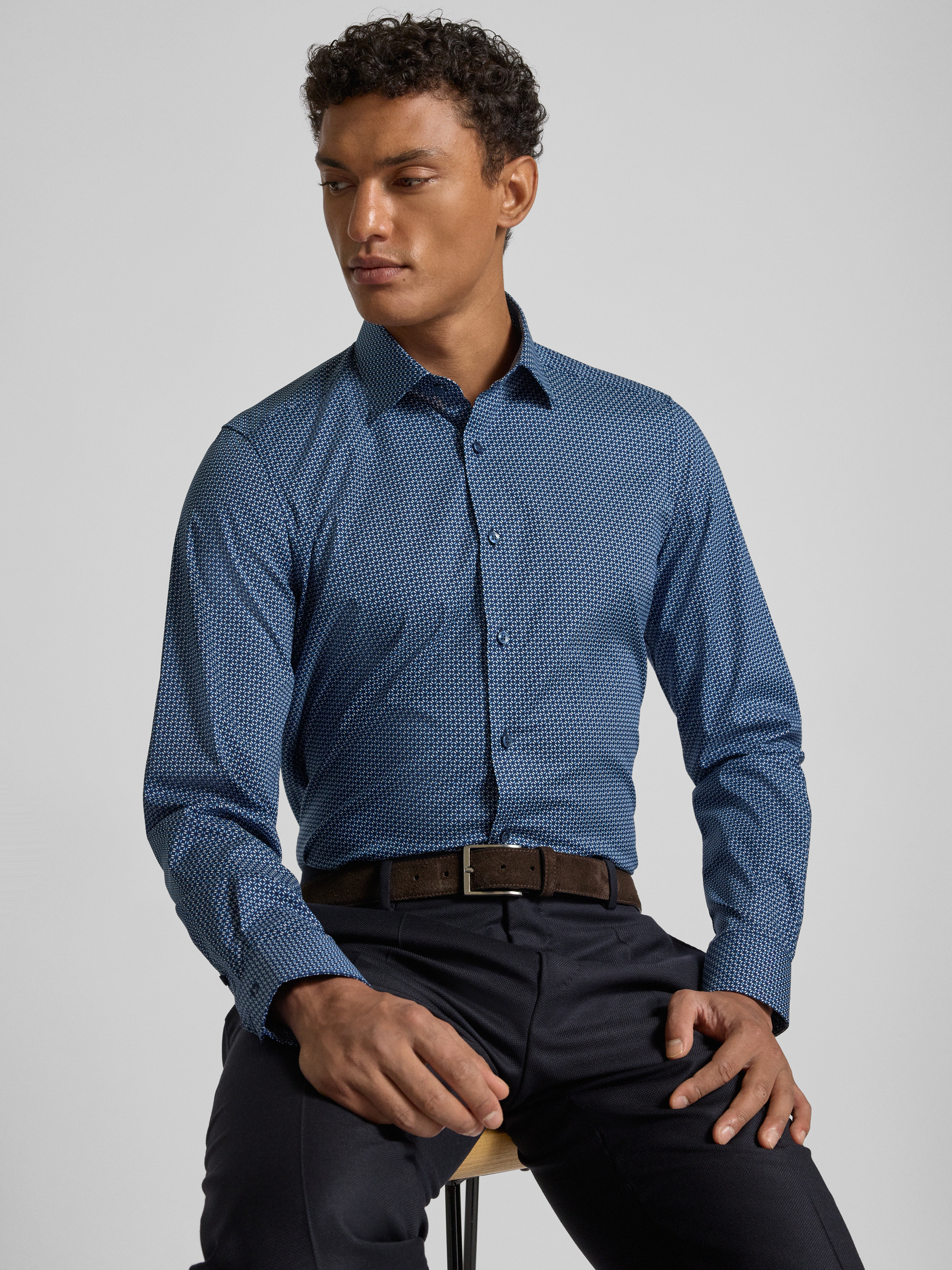OLYMP Level FiveSlim fit zakelijk overhemd met kentkraag in marineblauw