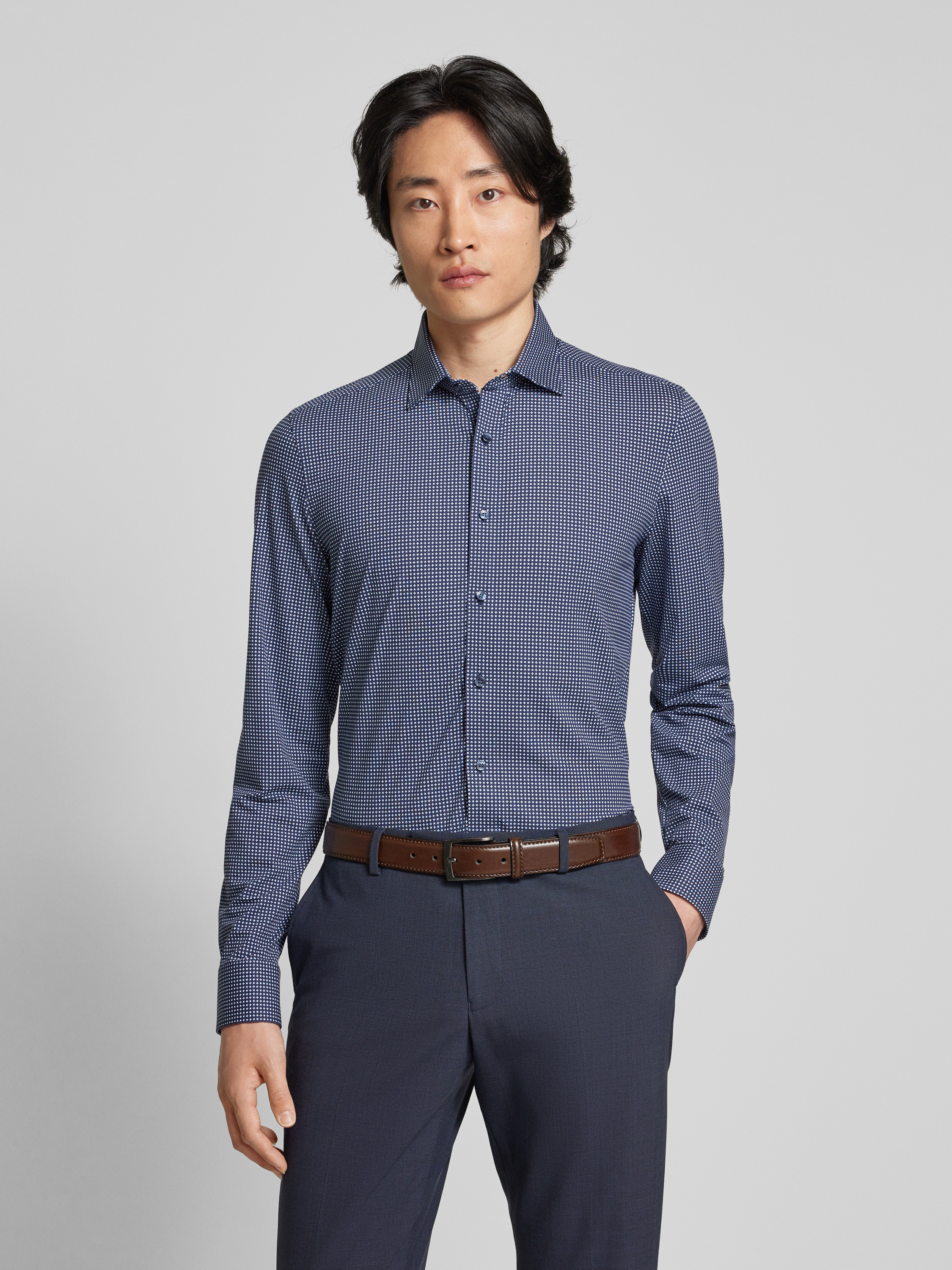 OLYMP Level FiveSlim fit zakelijk overhemd met kentkraag, model 'New York' in marineblauw