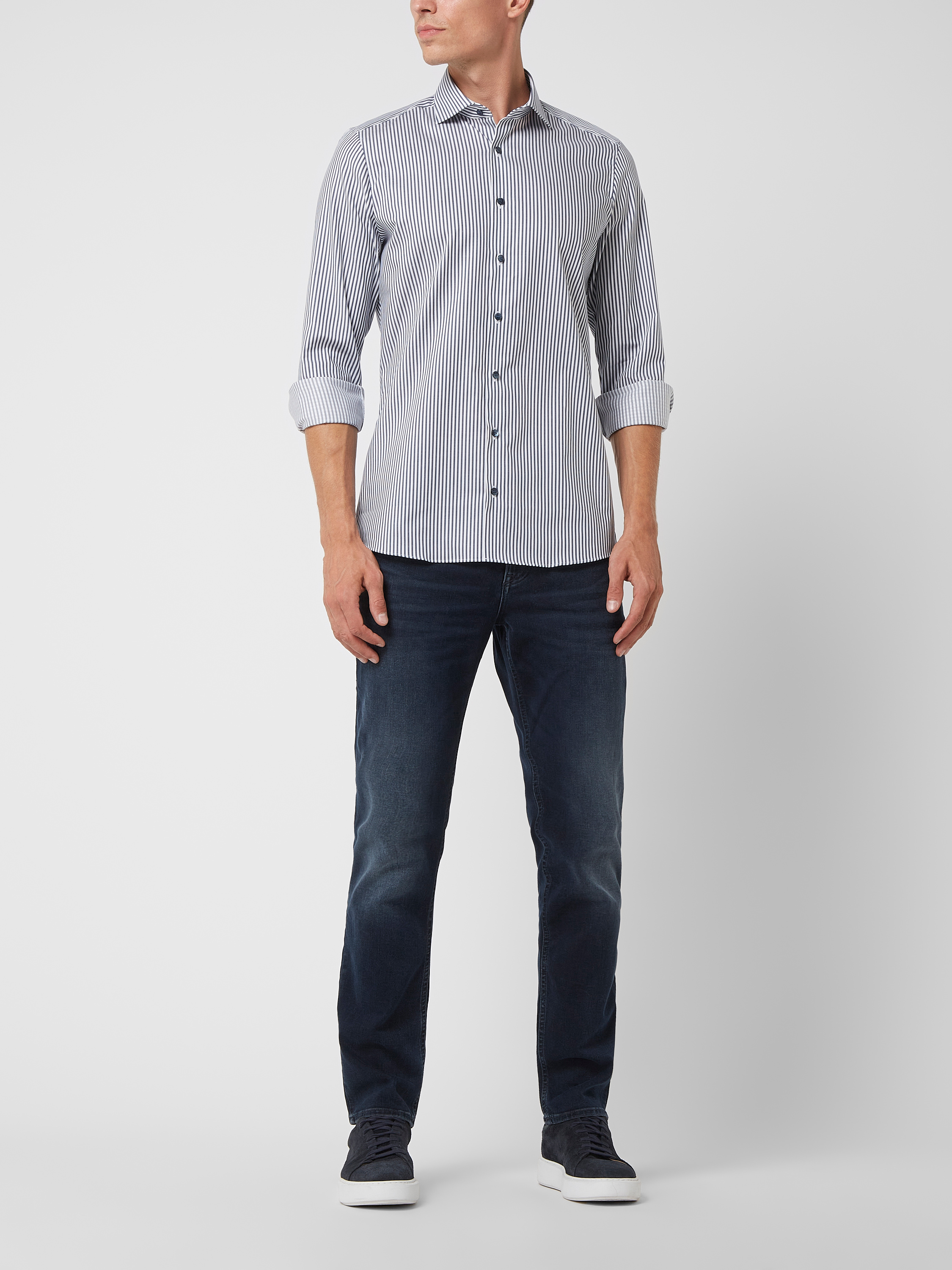 OLYMP Level FiveSlim fit zakelijk overhemd van geweven twill in marineblauw