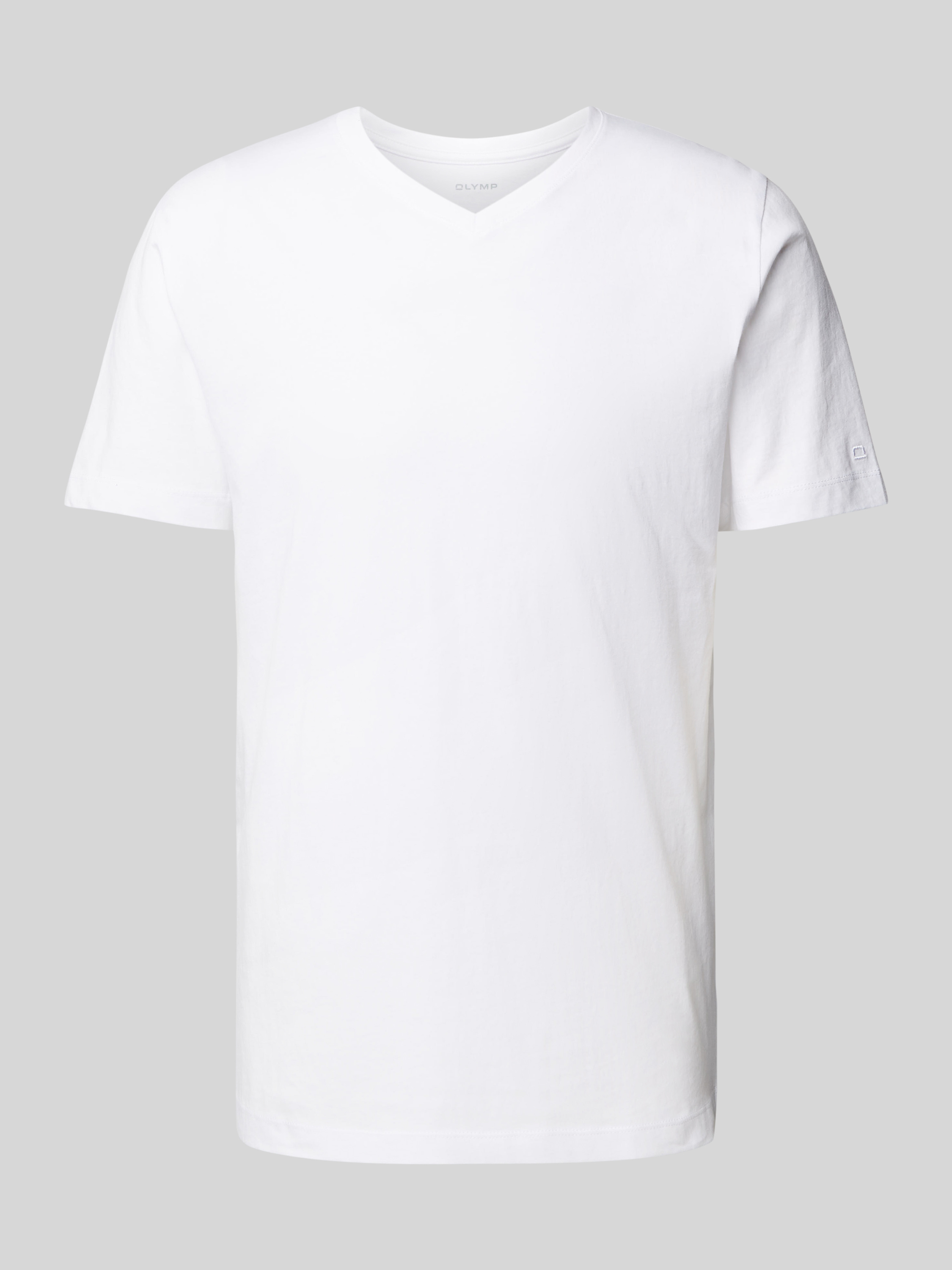 OLYMP Level FiveT-shirt met geribde V-hals in een set van 2 stuks in wit