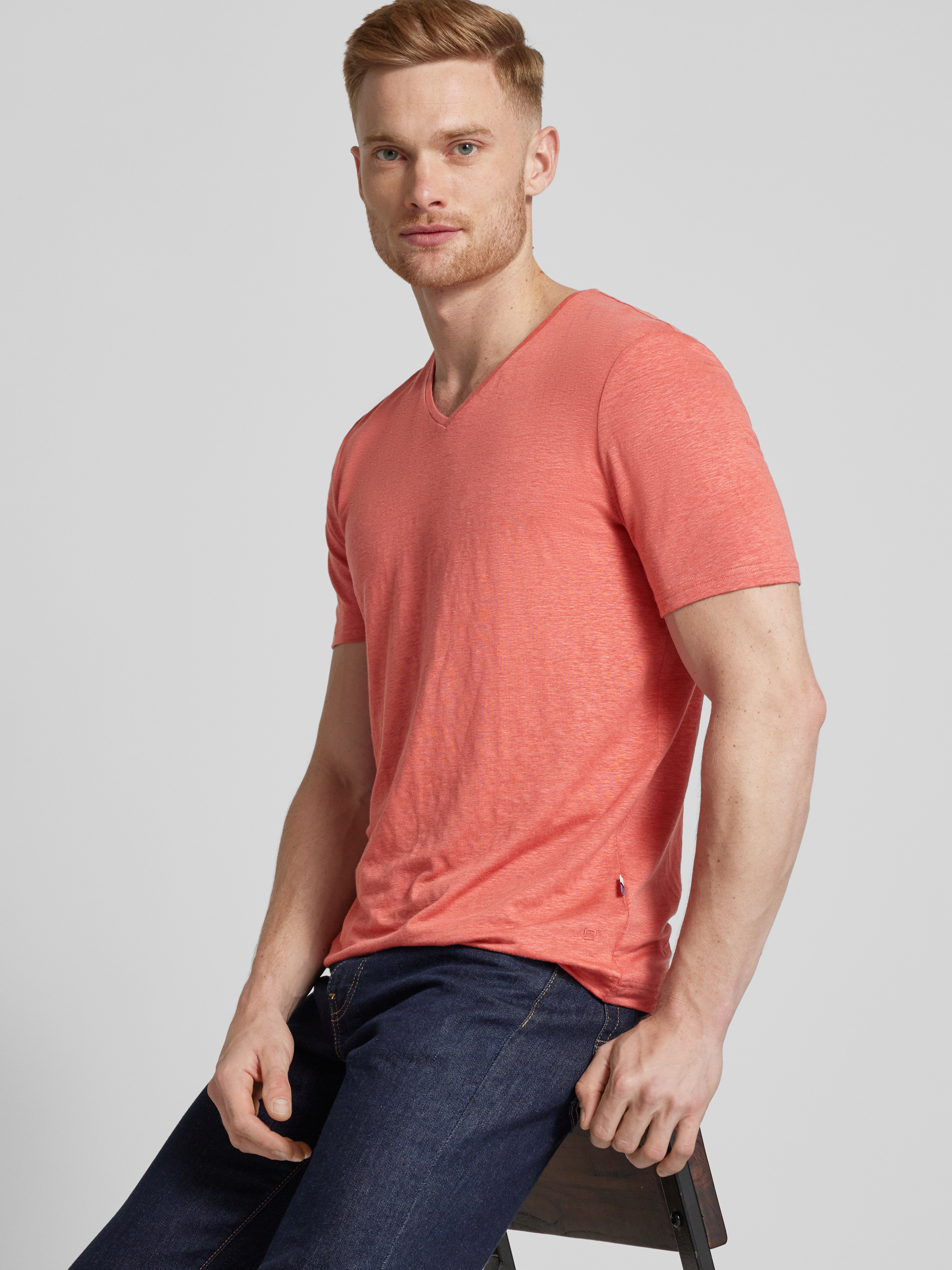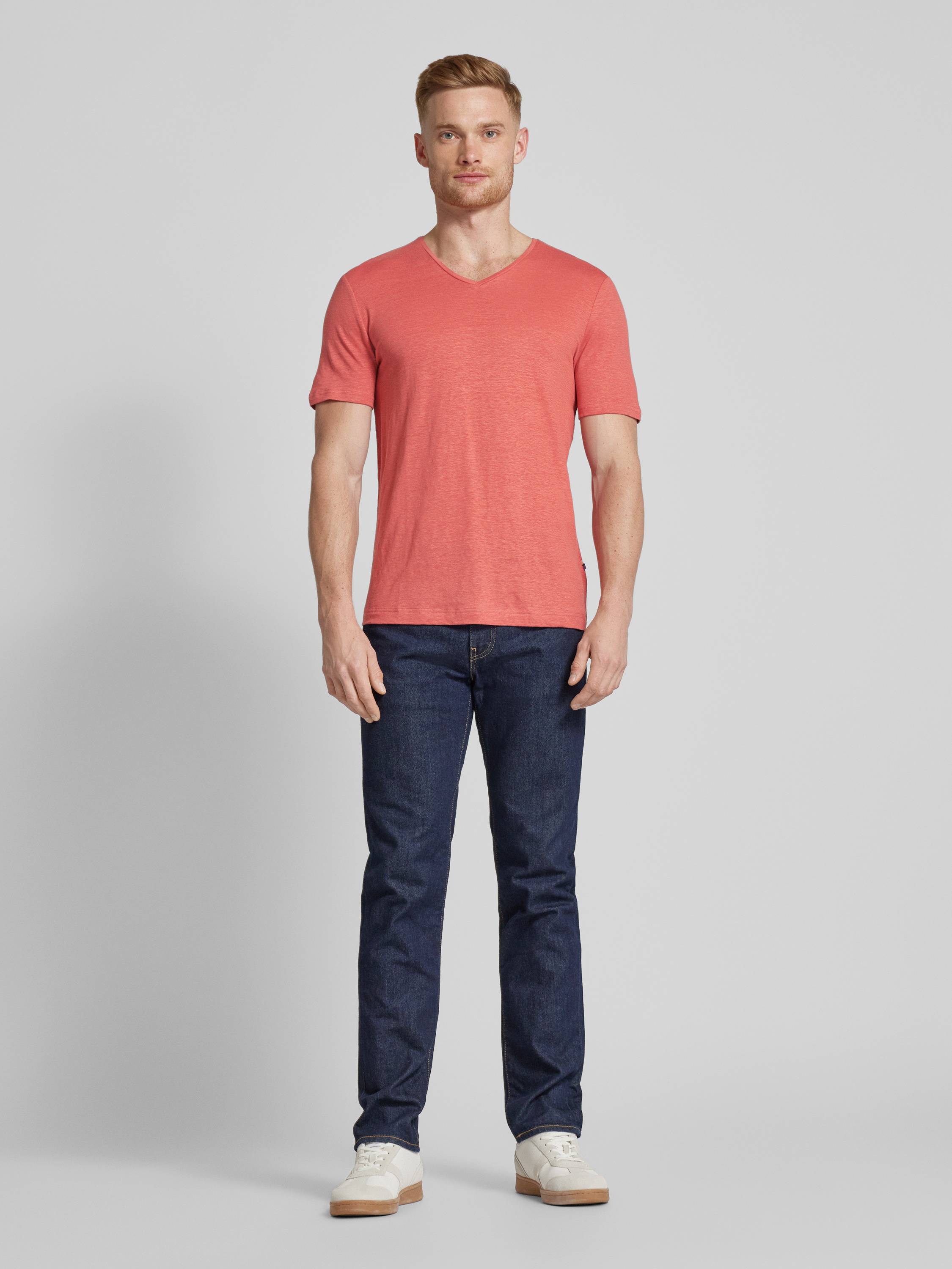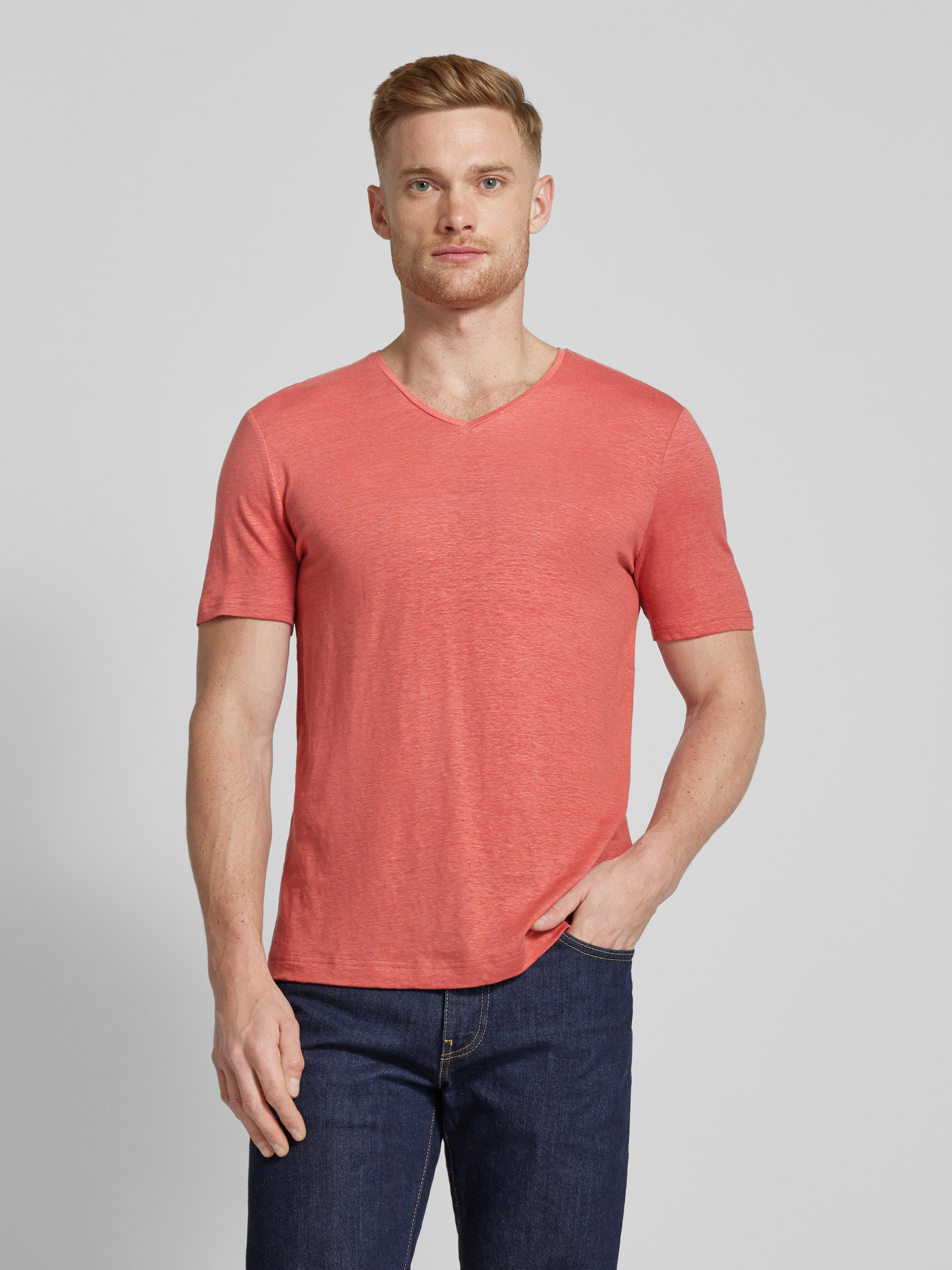T-shirt met V-hals in zalm