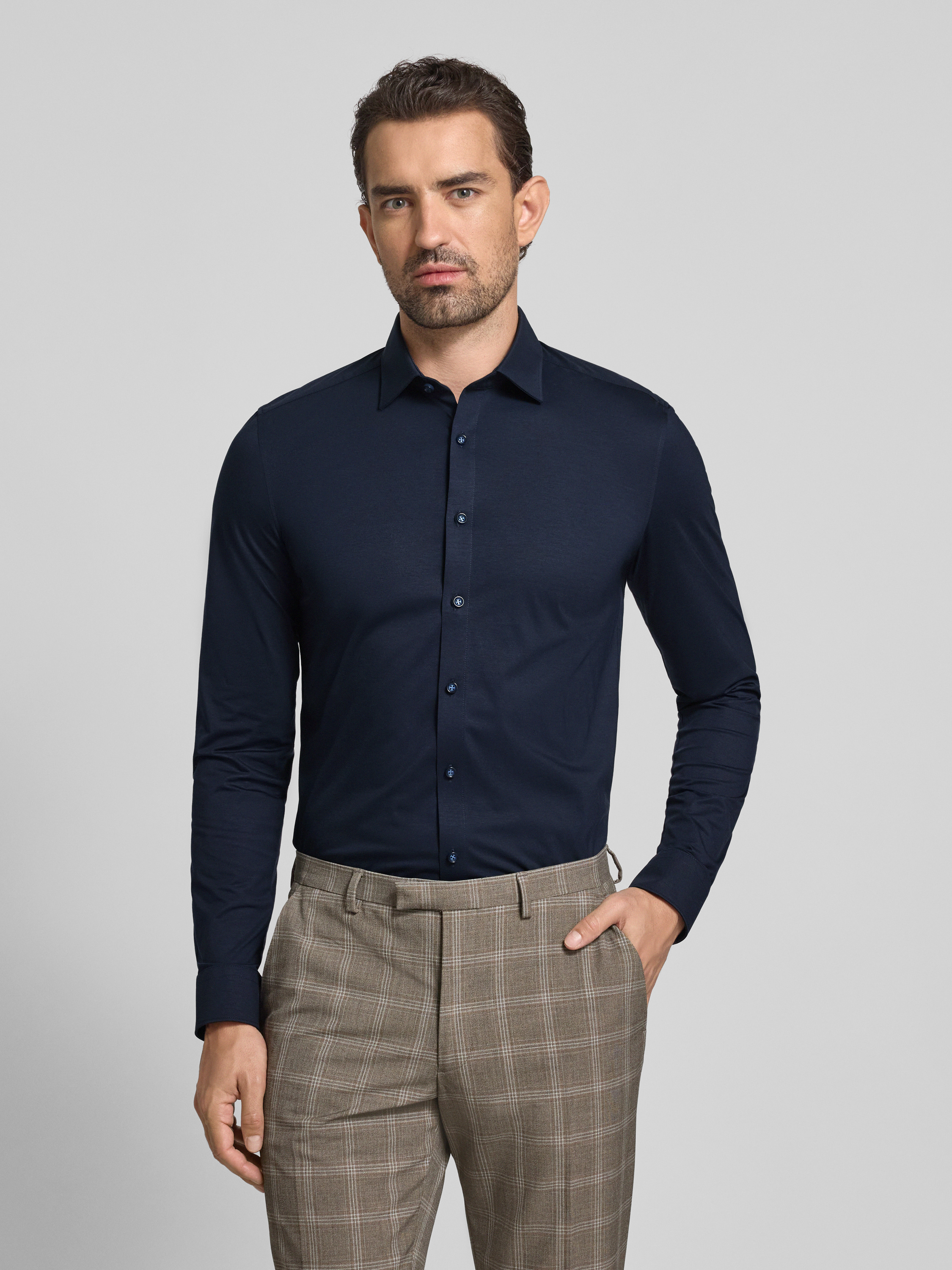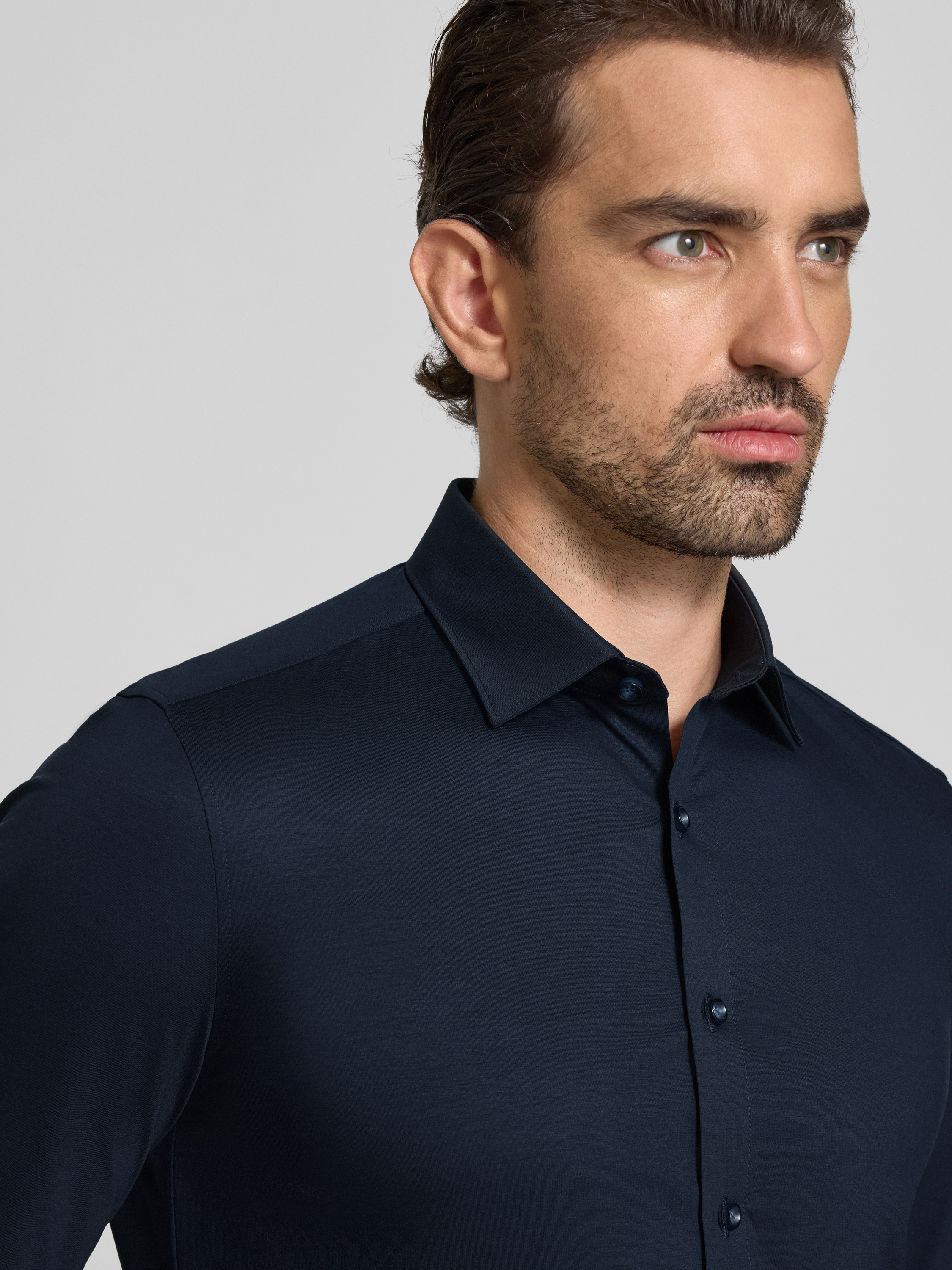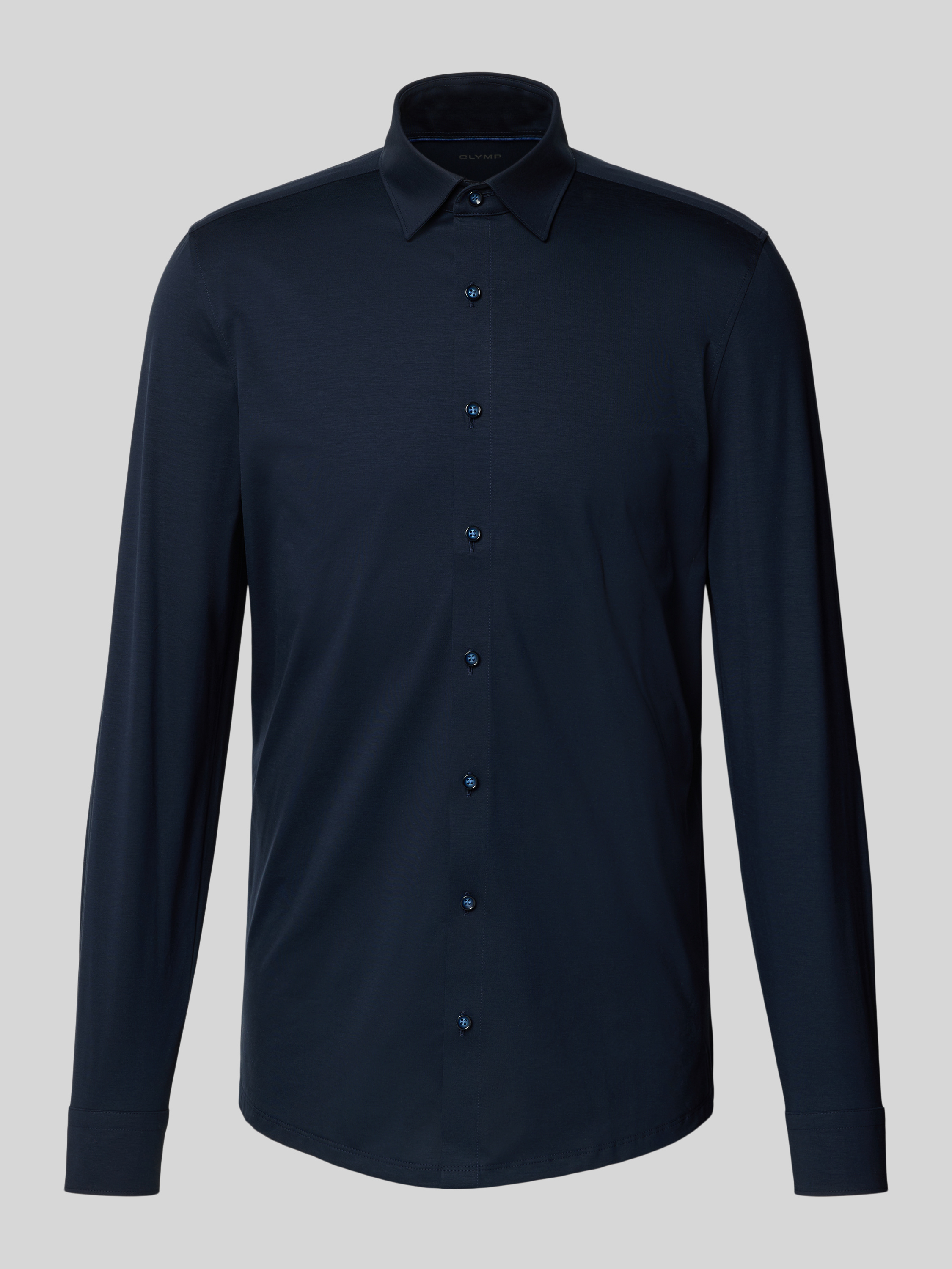 OLYMP No. SixSuper slim zakelijk overhemd met kentkraag in marineblauw