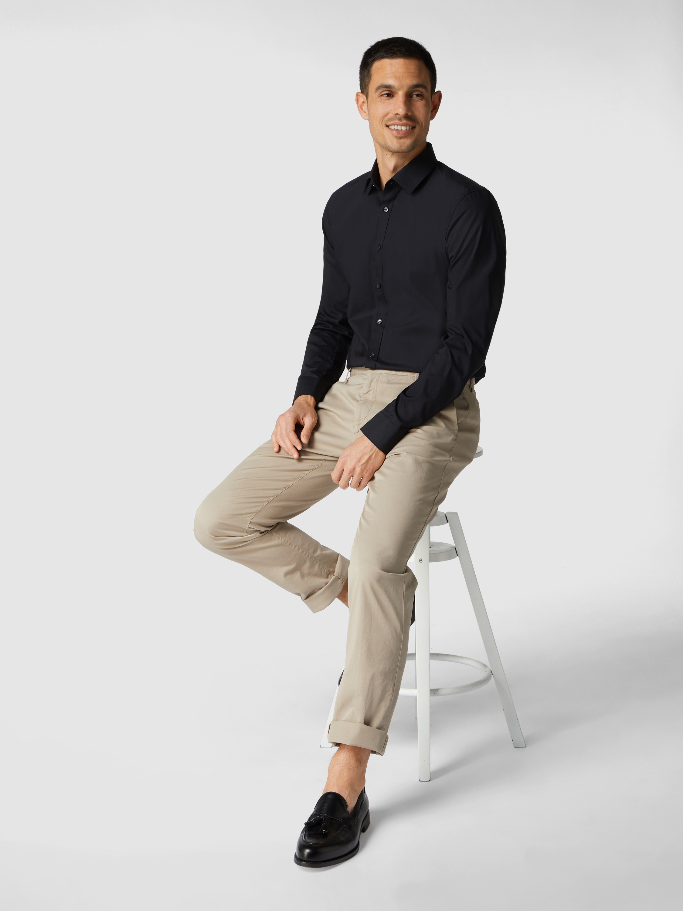 OLYMP No. SixZakelijk super slim fit overhemd van popeline met extra lange mouwen in zwart