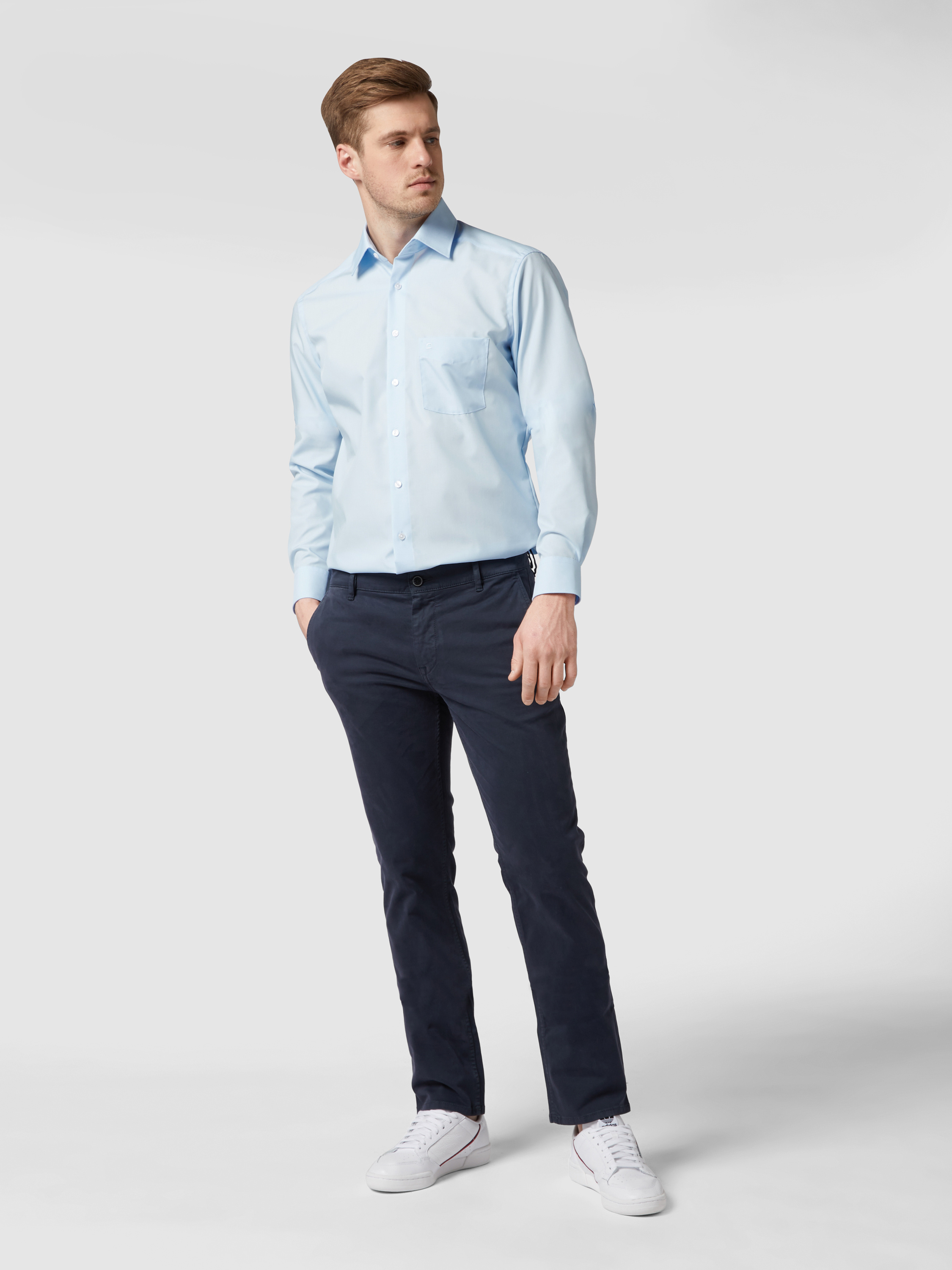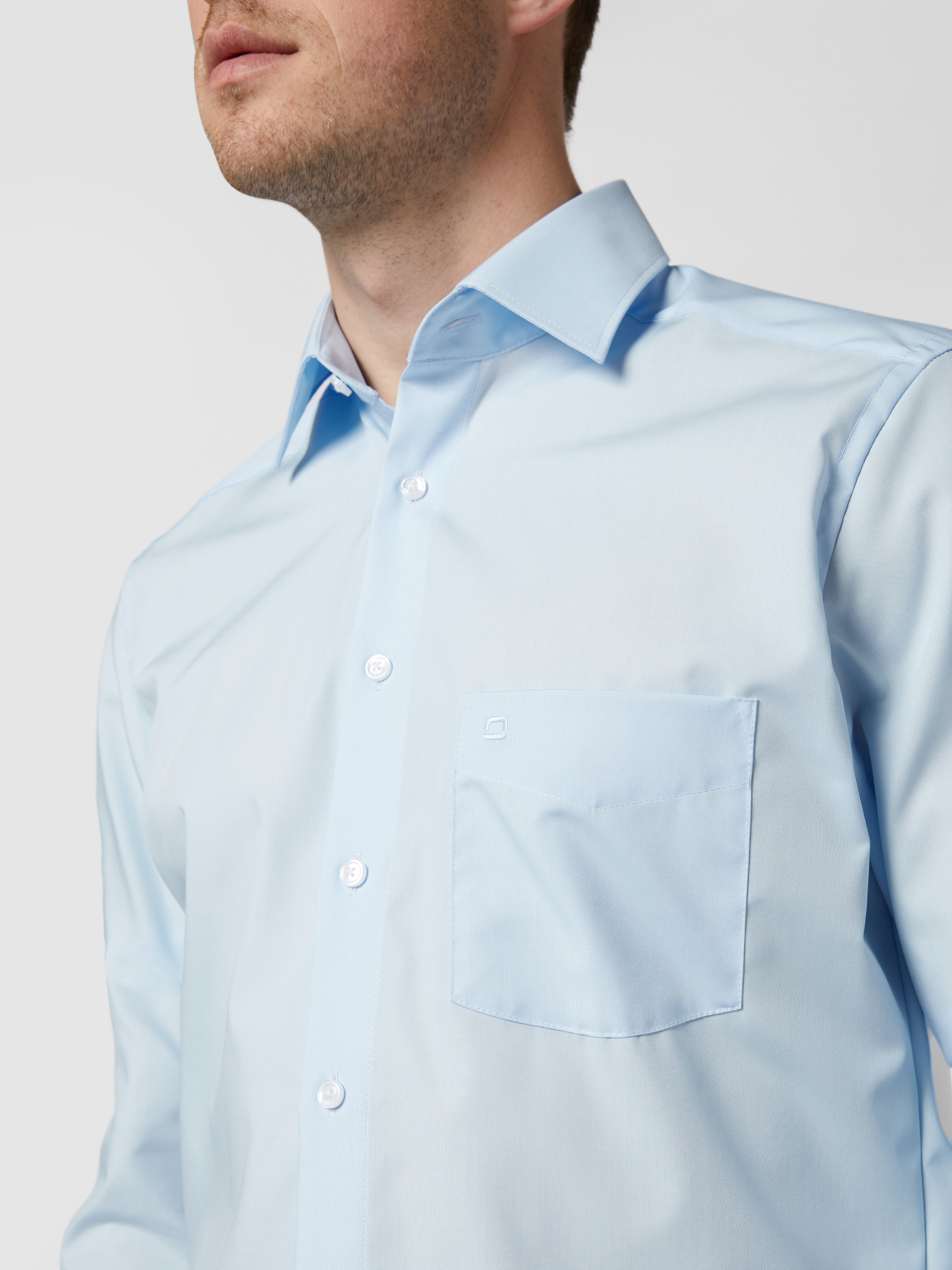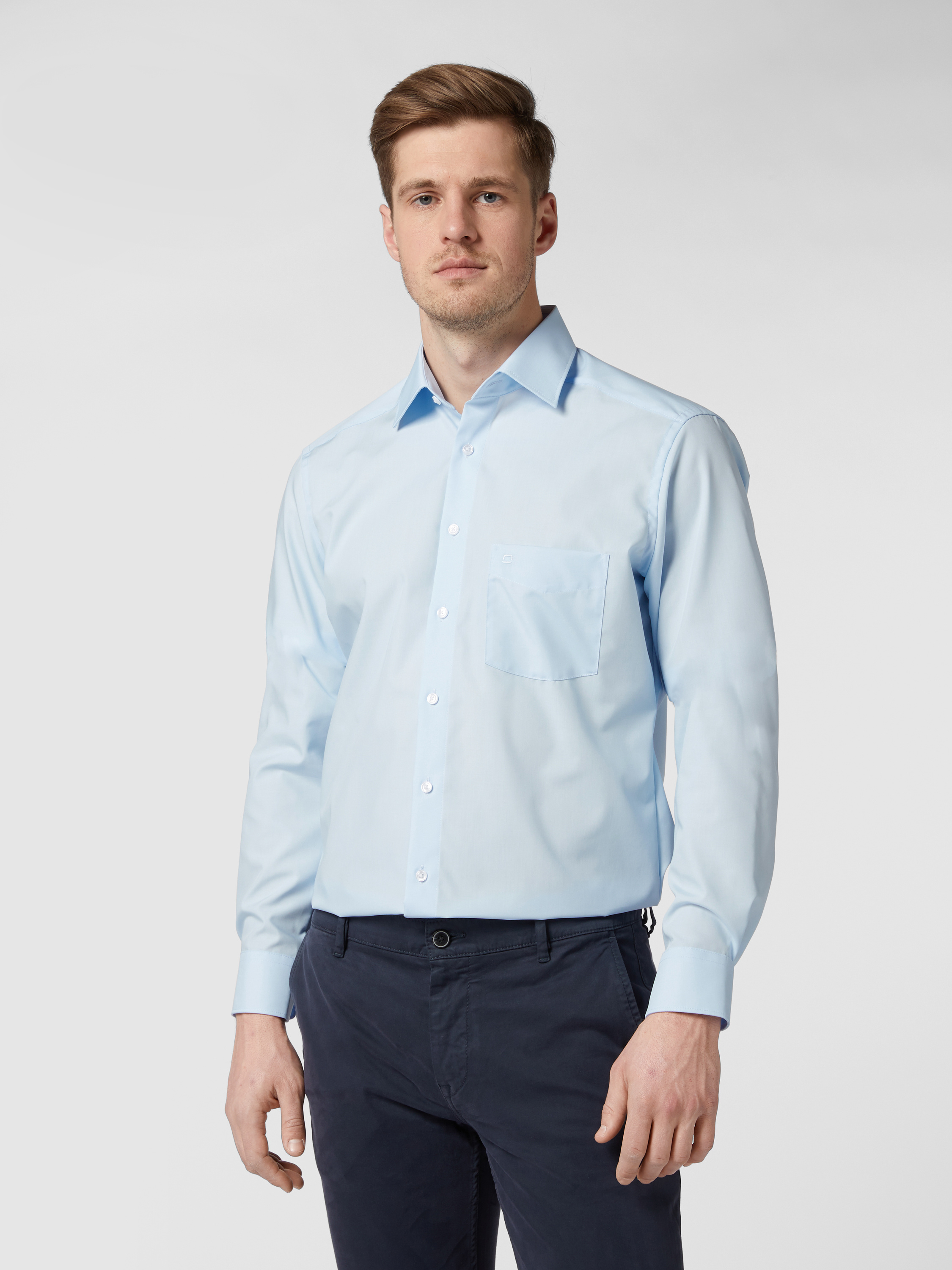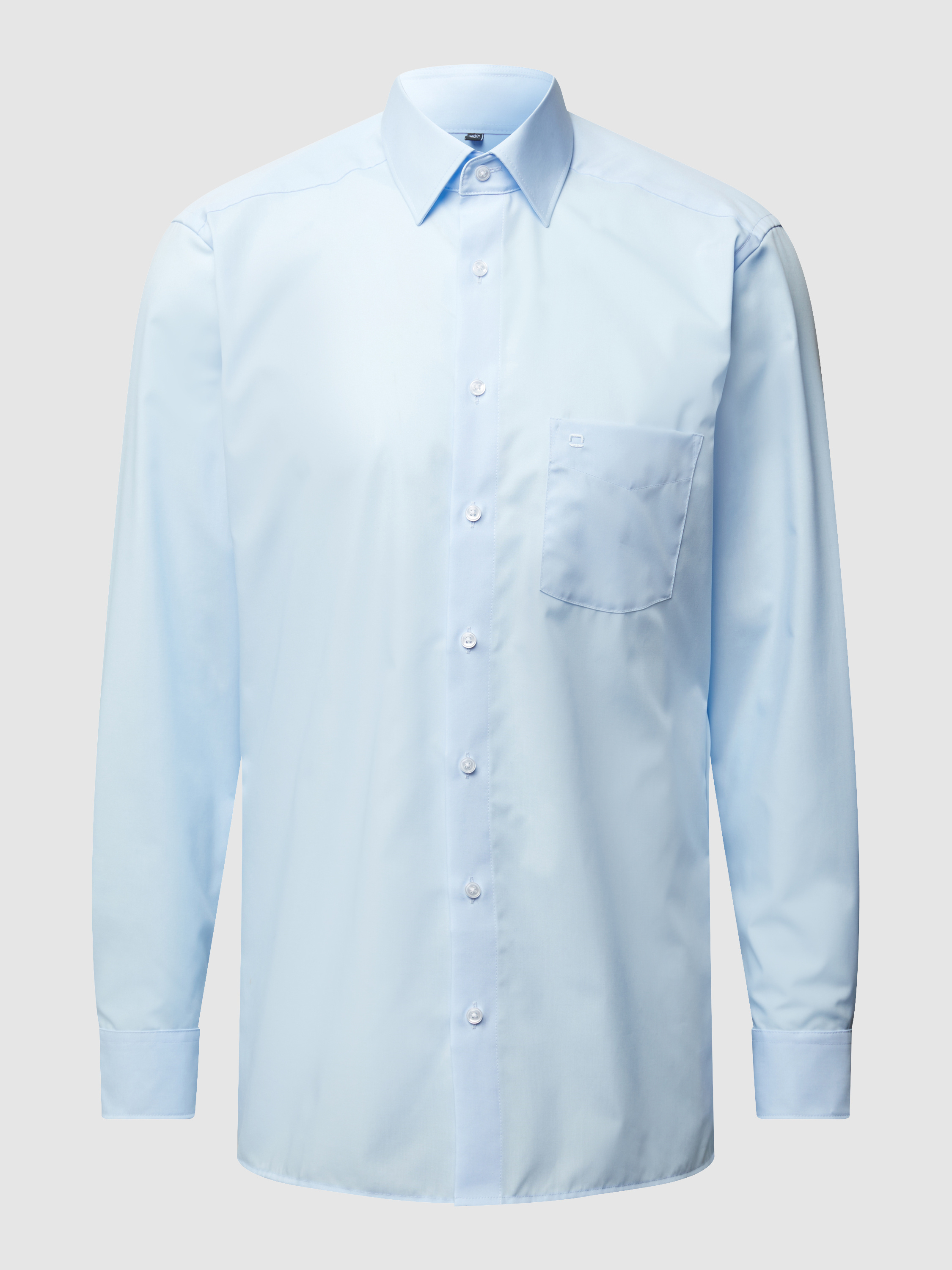 OLYMPRegular fit vrijetijdsoverhemd met logostitching, model 'New' in bleu