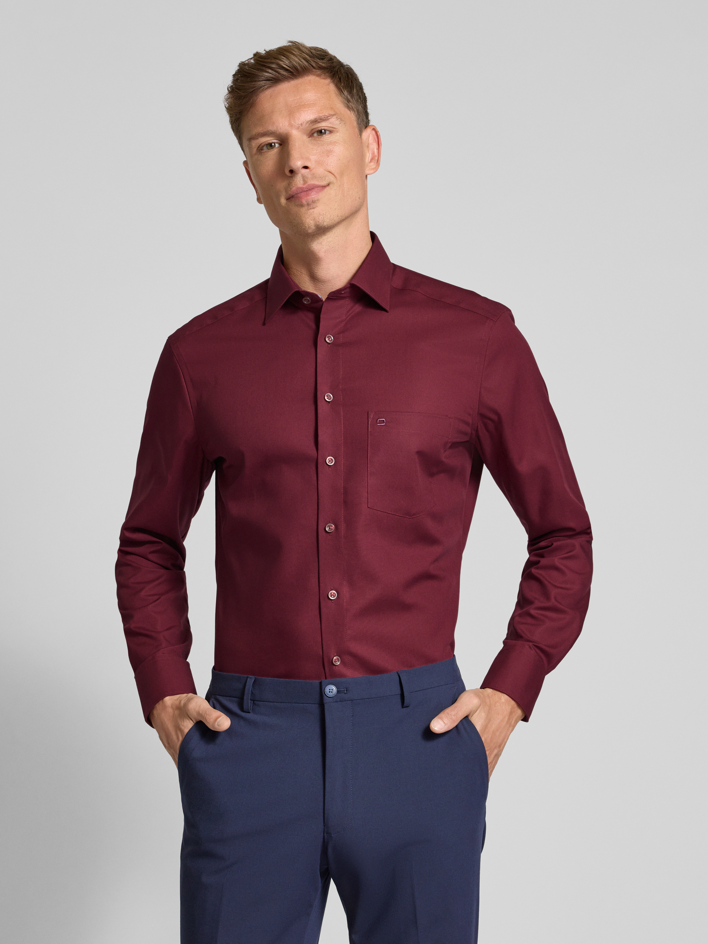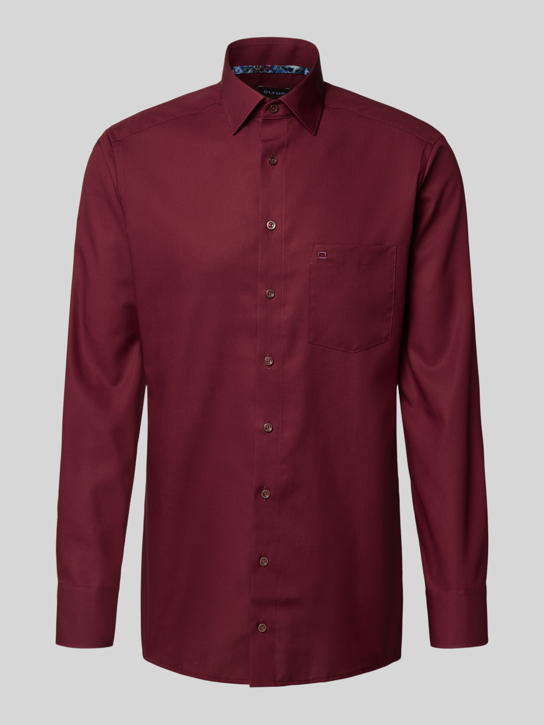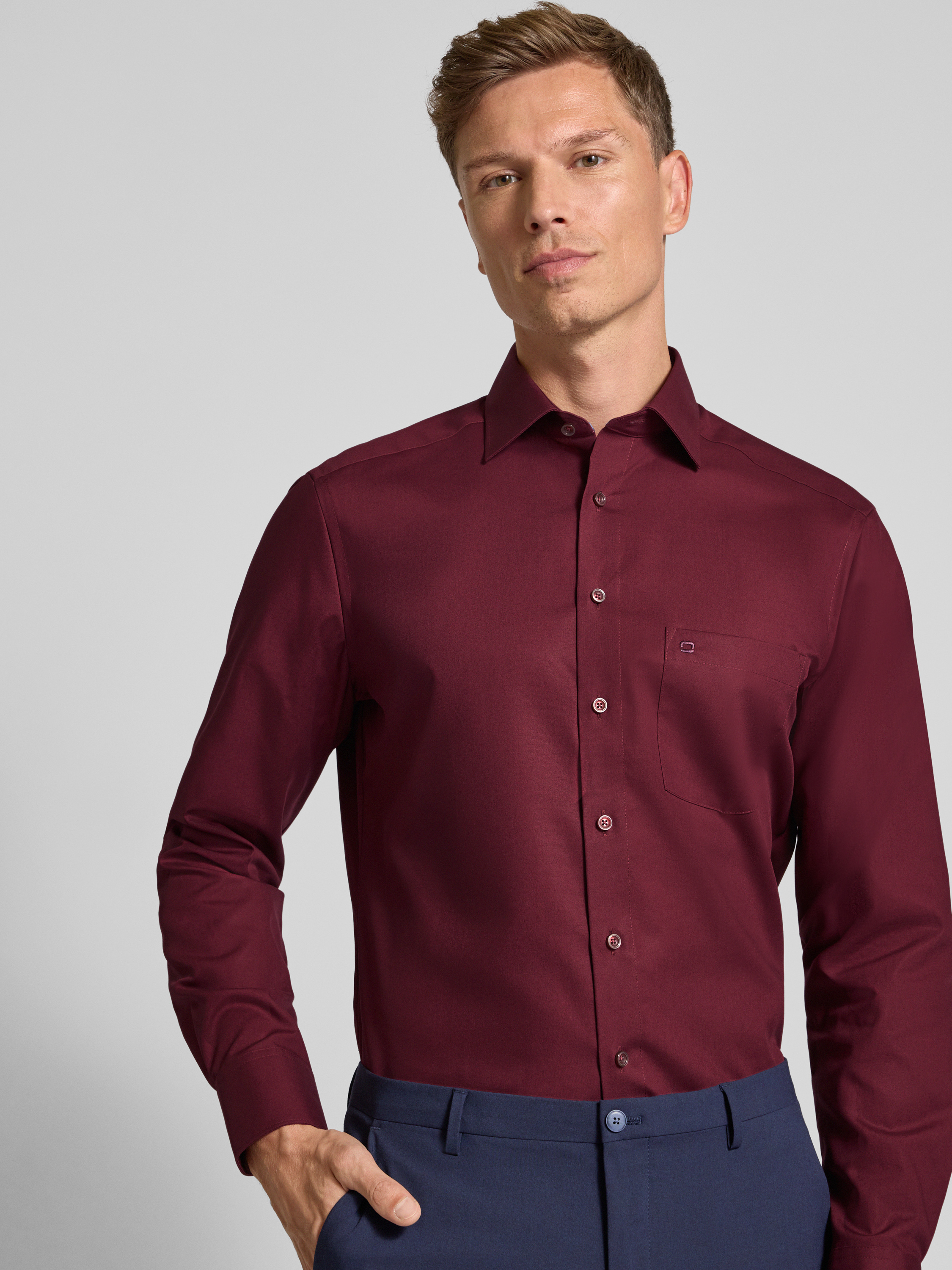 OLYMPRegular fit zakelijk overhemd van puur katoen in bordeaux