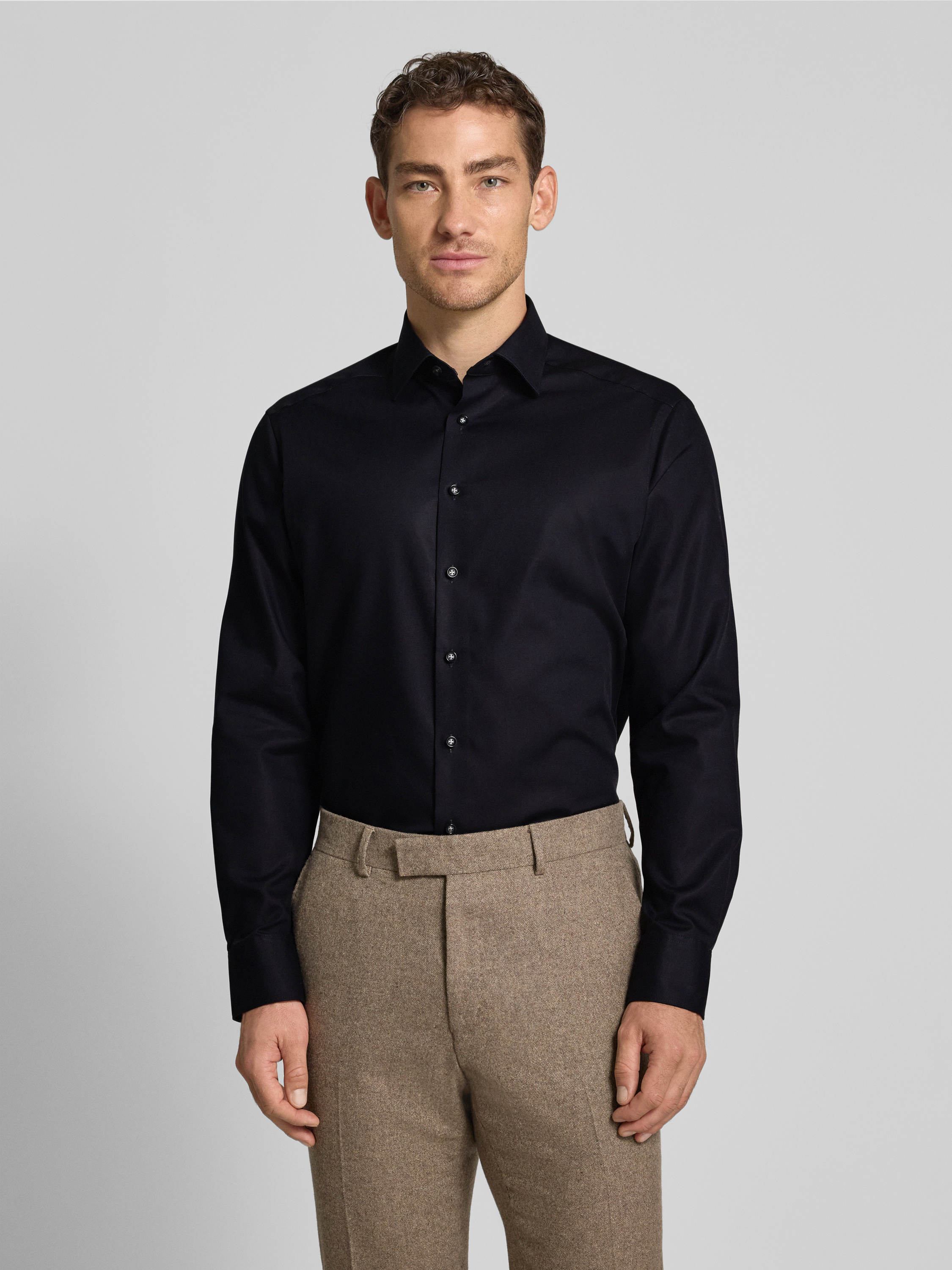 OLYMPRegular fit zakelijk overhemd van puur katoen in zwart