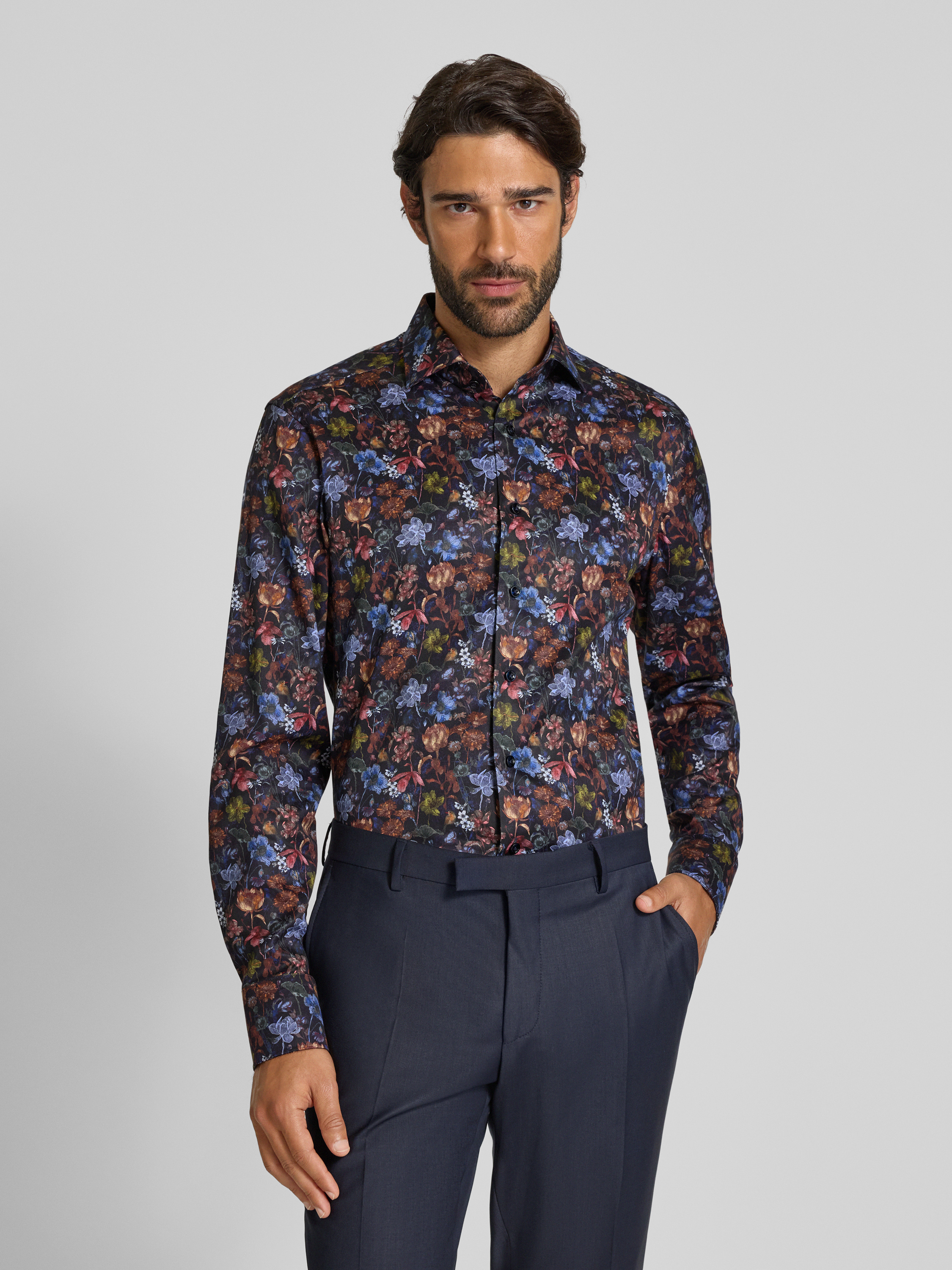 OLYMP SIGNATURE SLIM FITSlim fit zakelijk overhemd met kentkraag, model 'Savio' in marineblauw