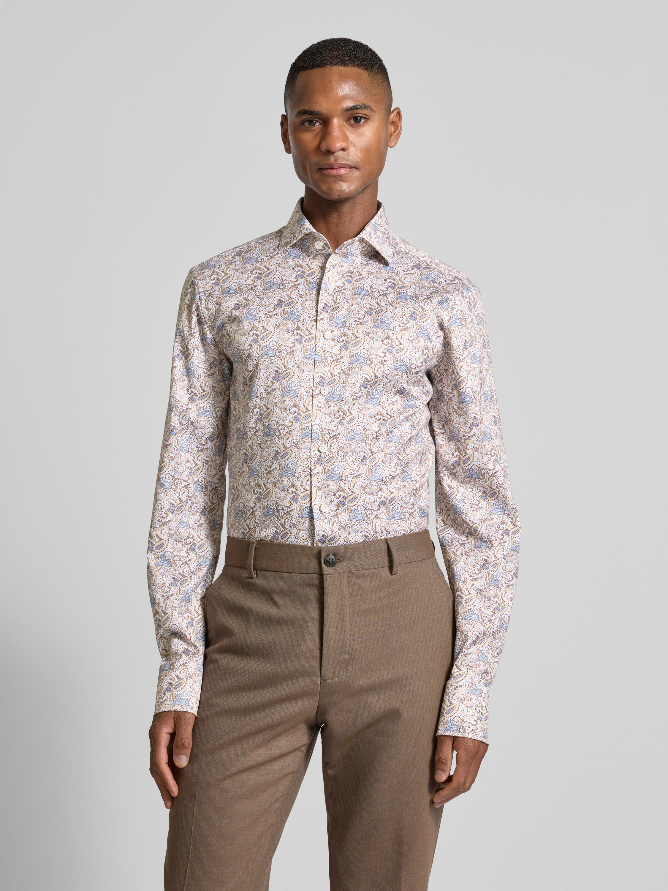 OLYMP SIGNATURE SLIM FITSlim fit zakelijk overhemd met kentkraag, model 'Savio' in zand