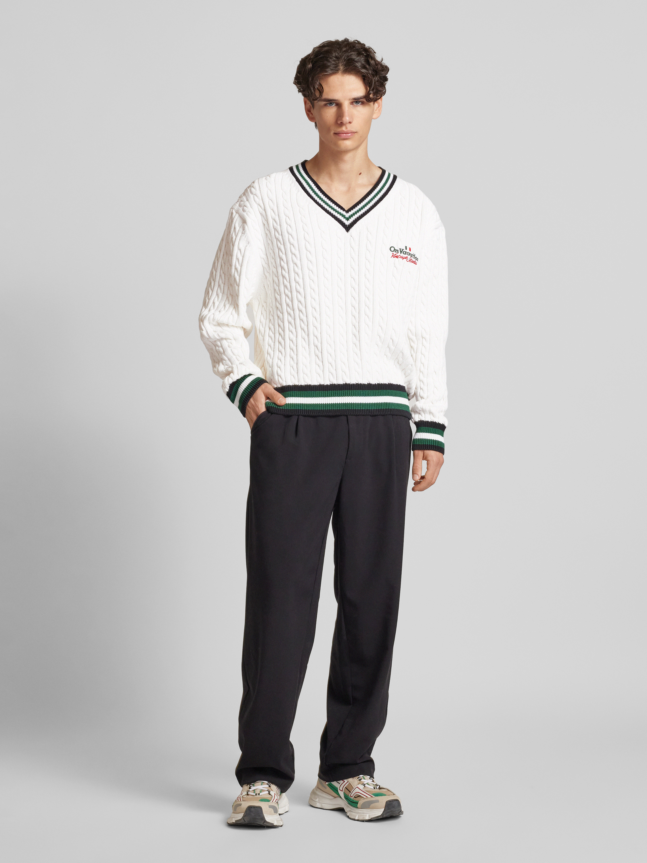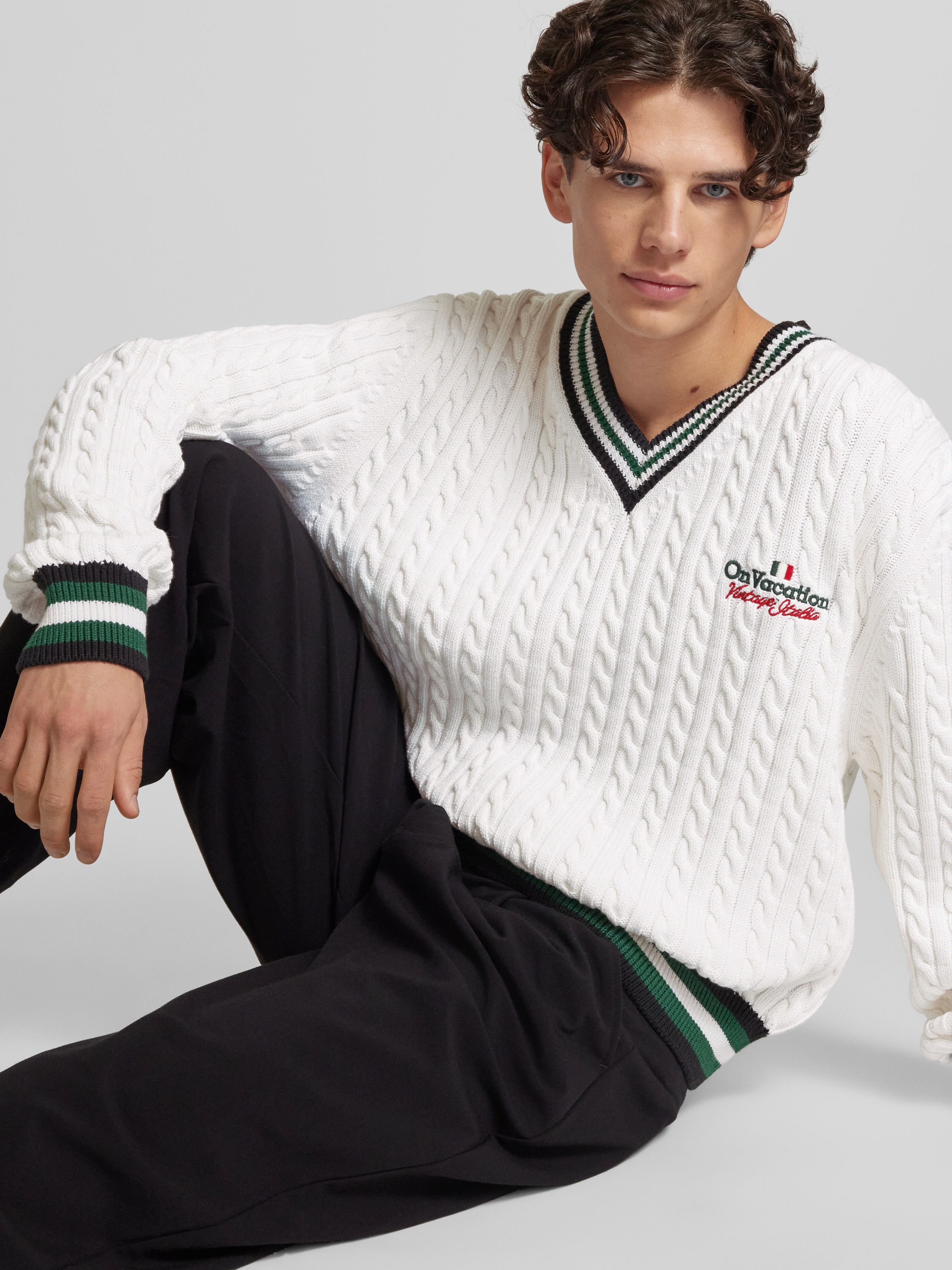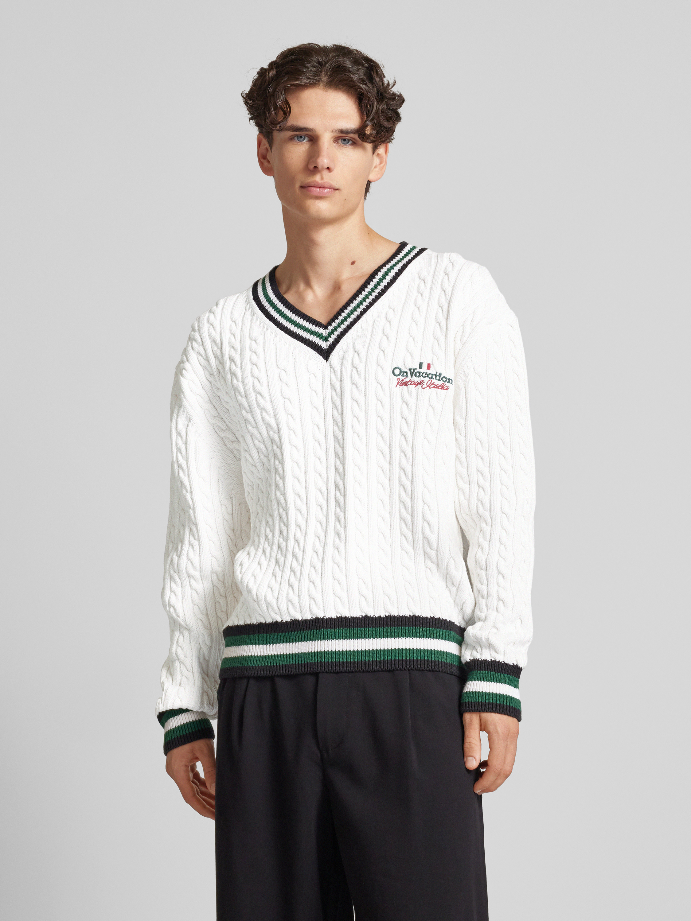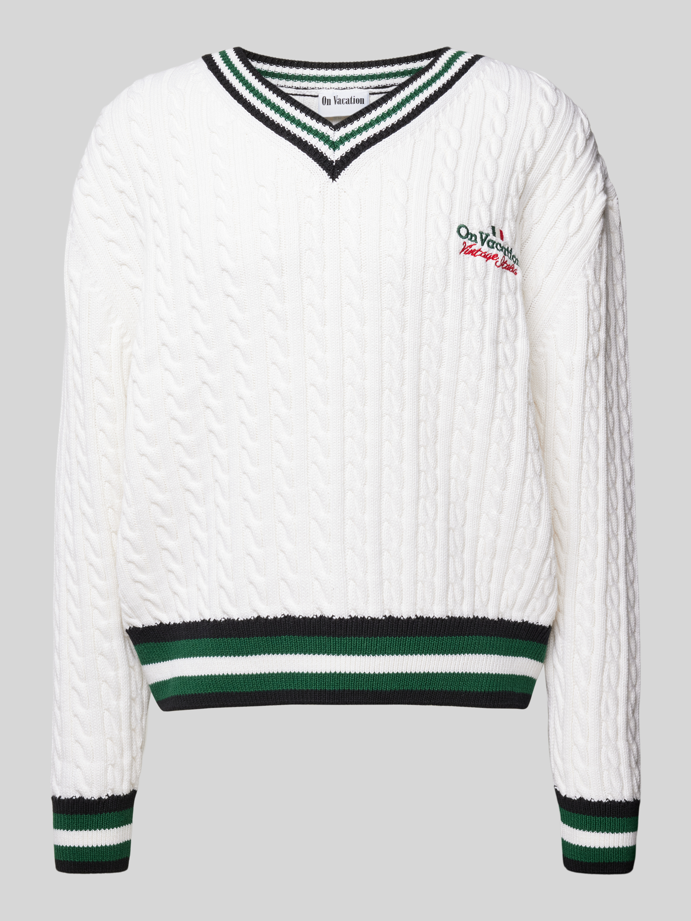 Gebreide pullover met kabelpatroon, model 'Retro Italia' in offwhite