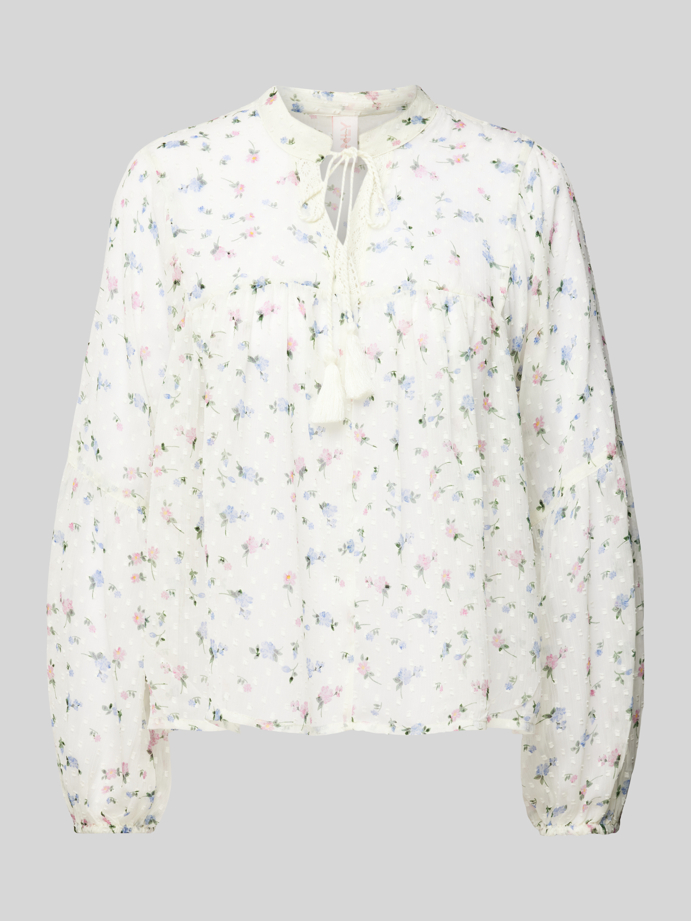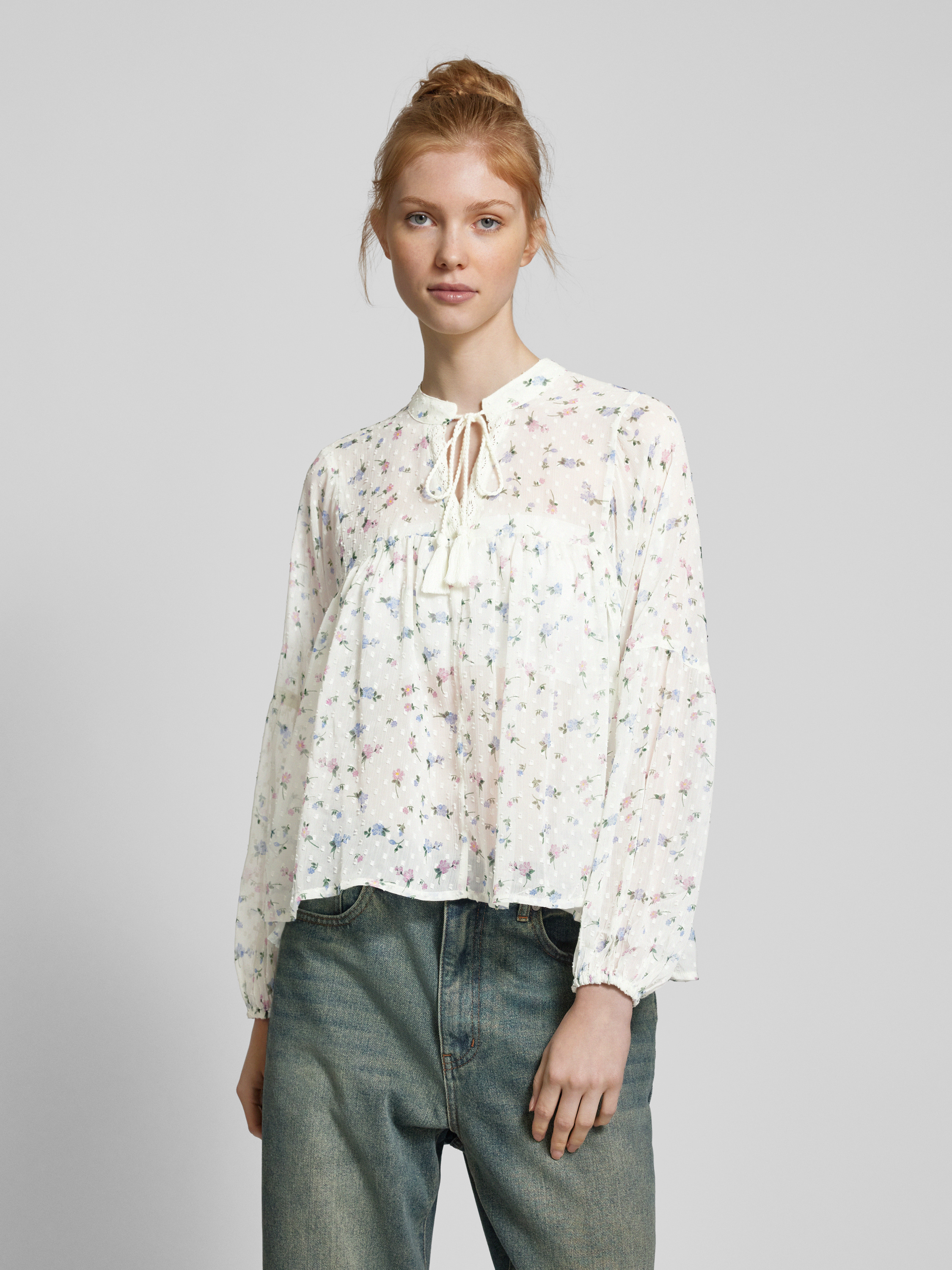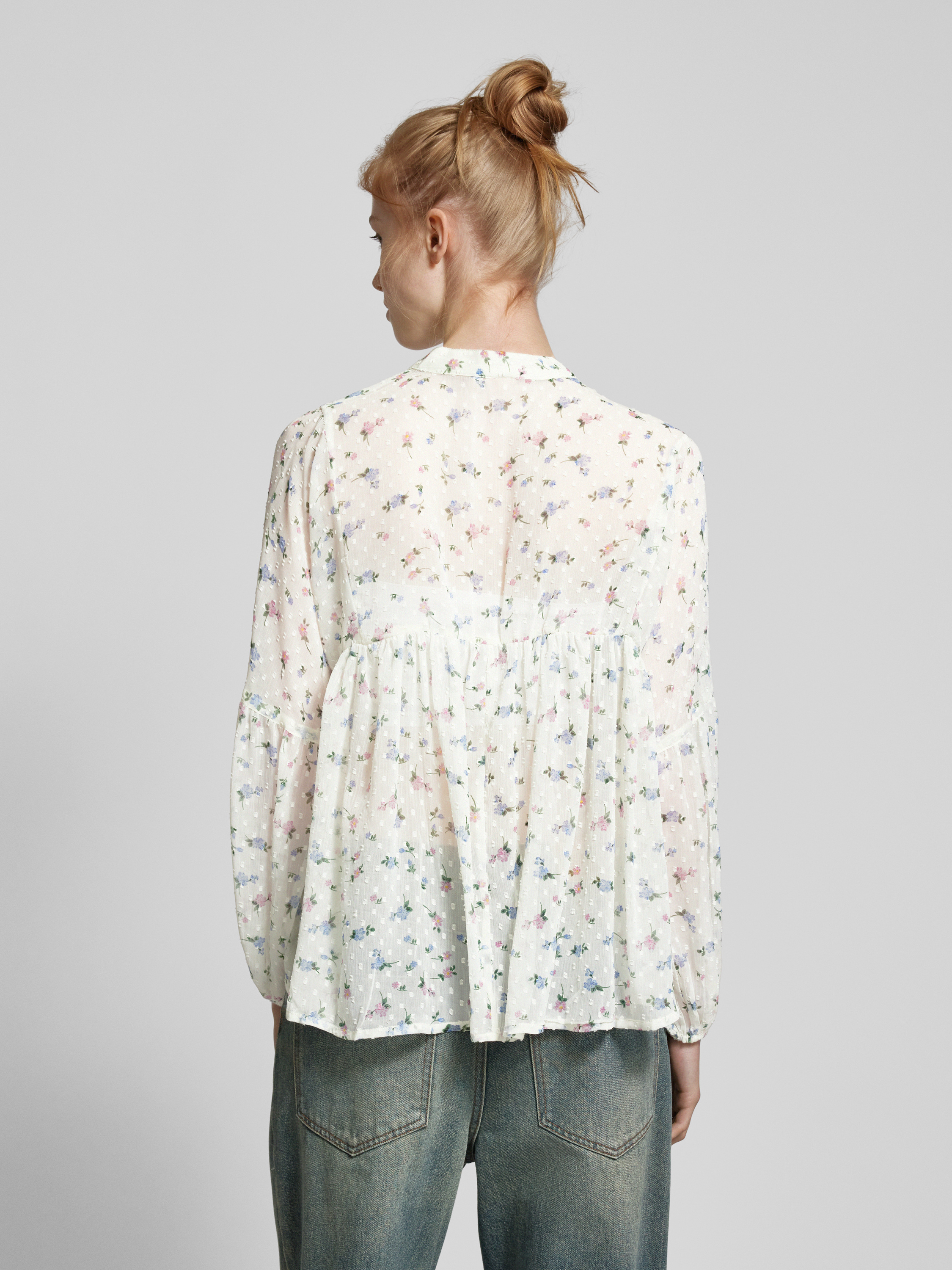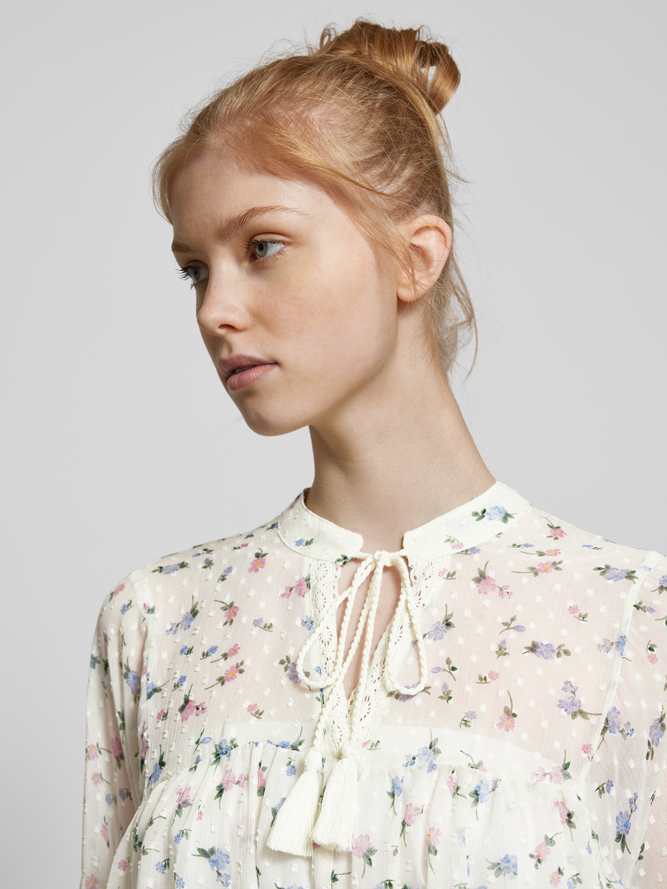 Blouse met druppelvormige hals, model 'AIDA ELISA' in ecru