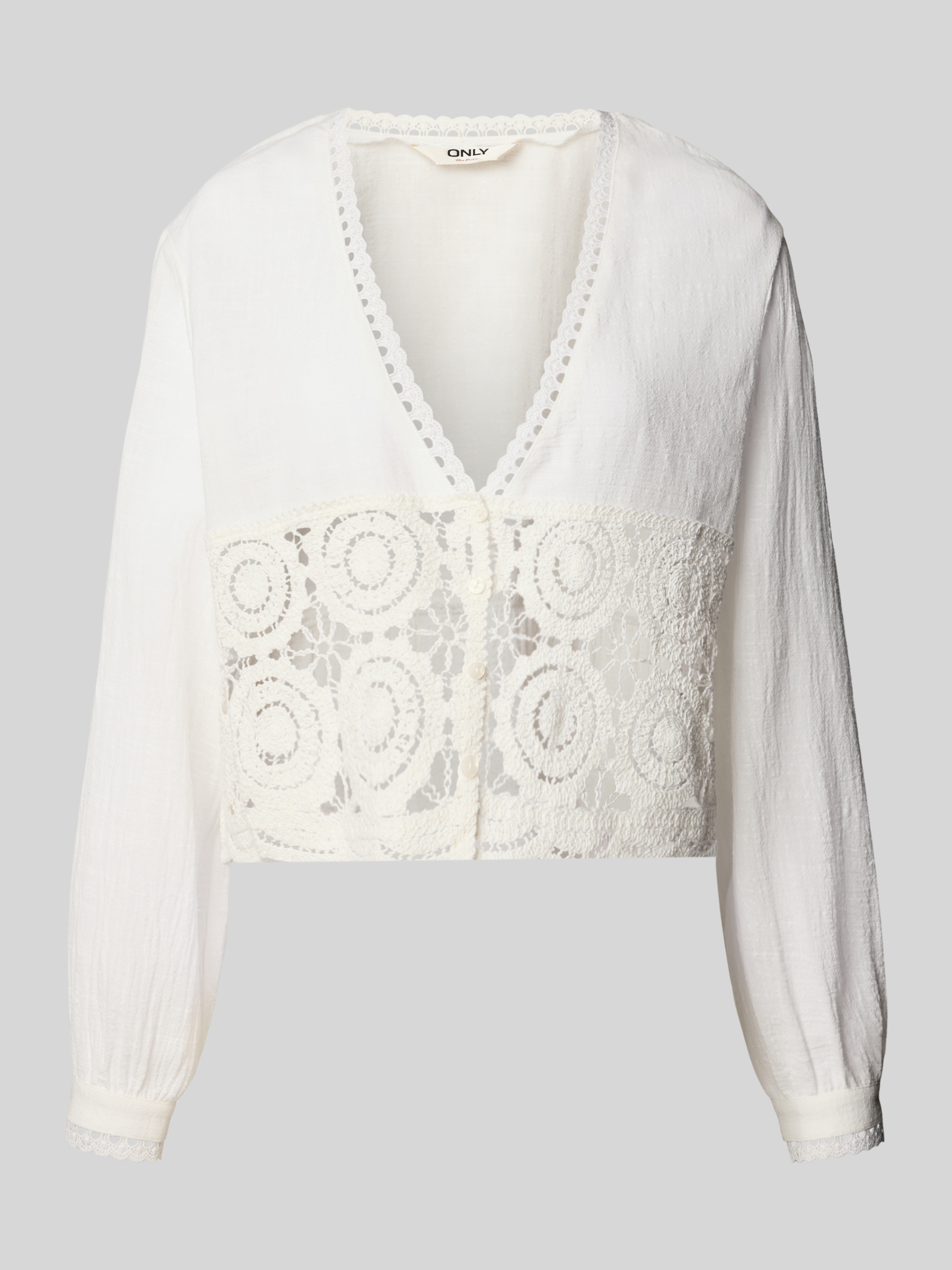 Boxy fit tuniek met gehaakte details, model 'NADIA' in offwhite