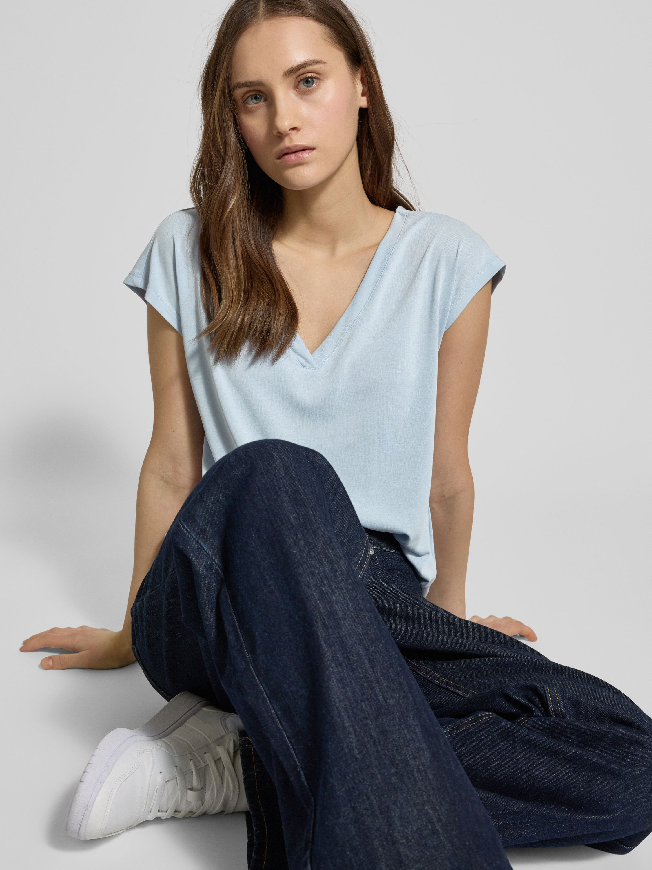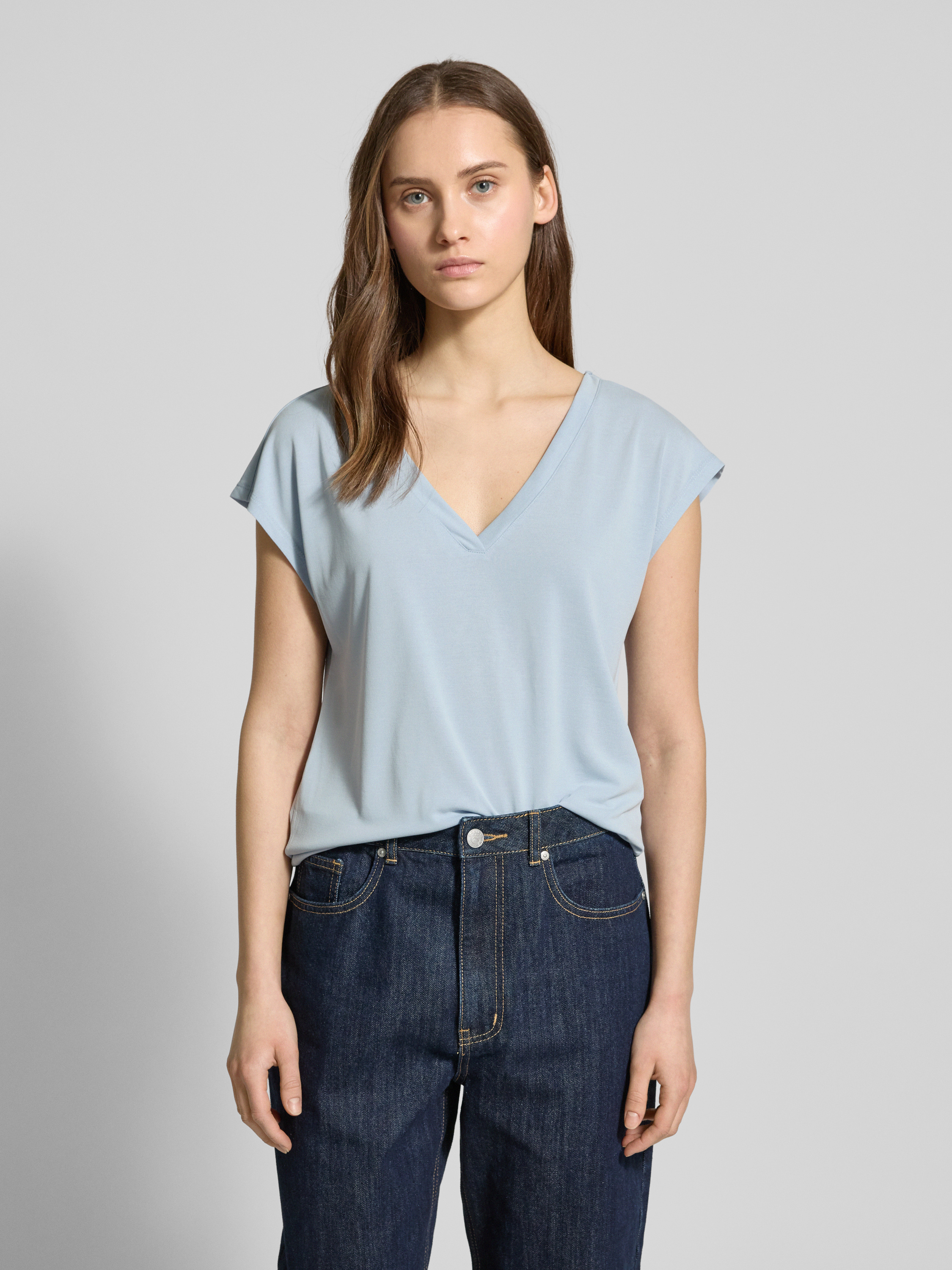 Comfort fit T-shirt in modalmix, model 'FREE' in lichtblauw