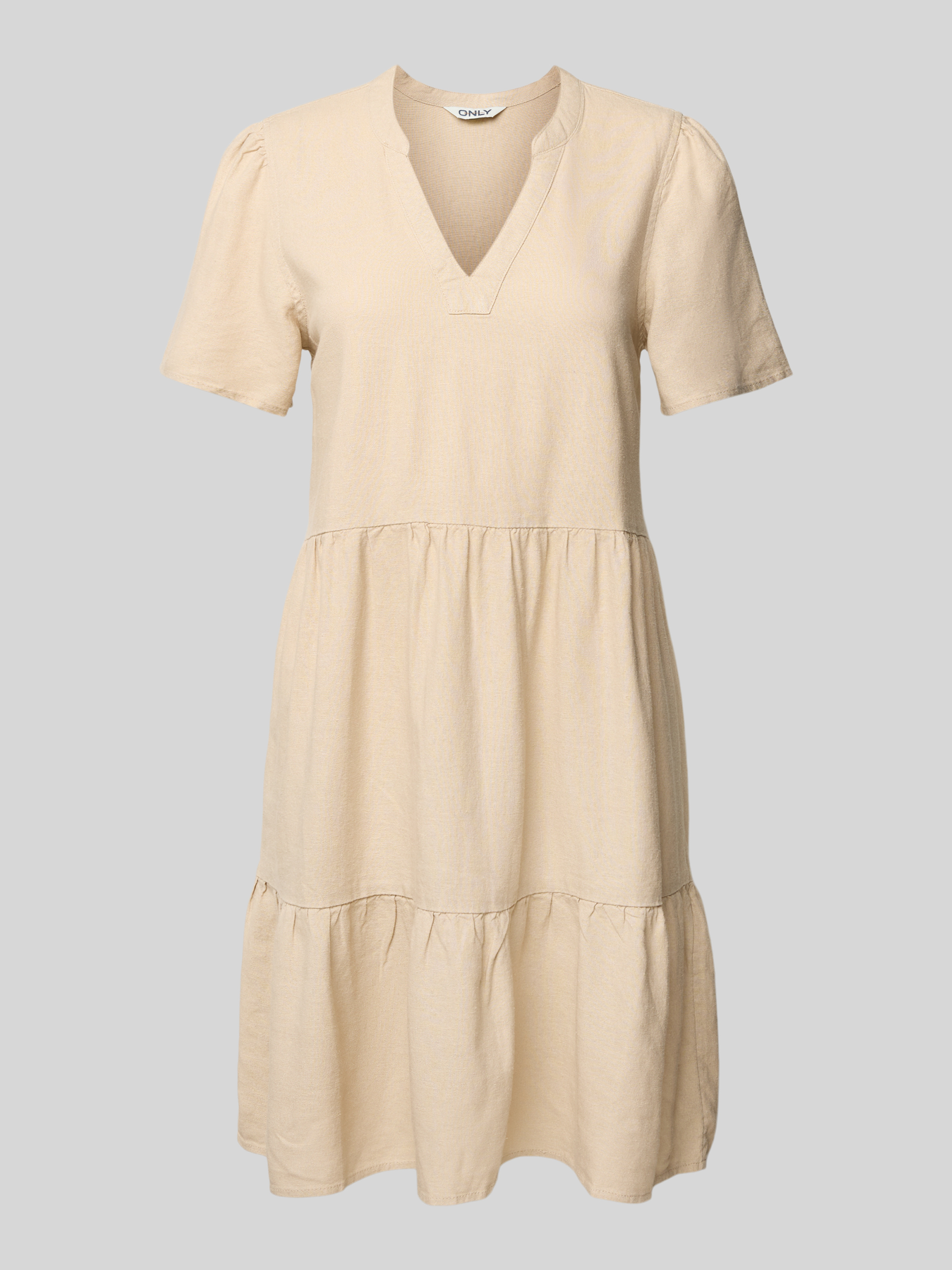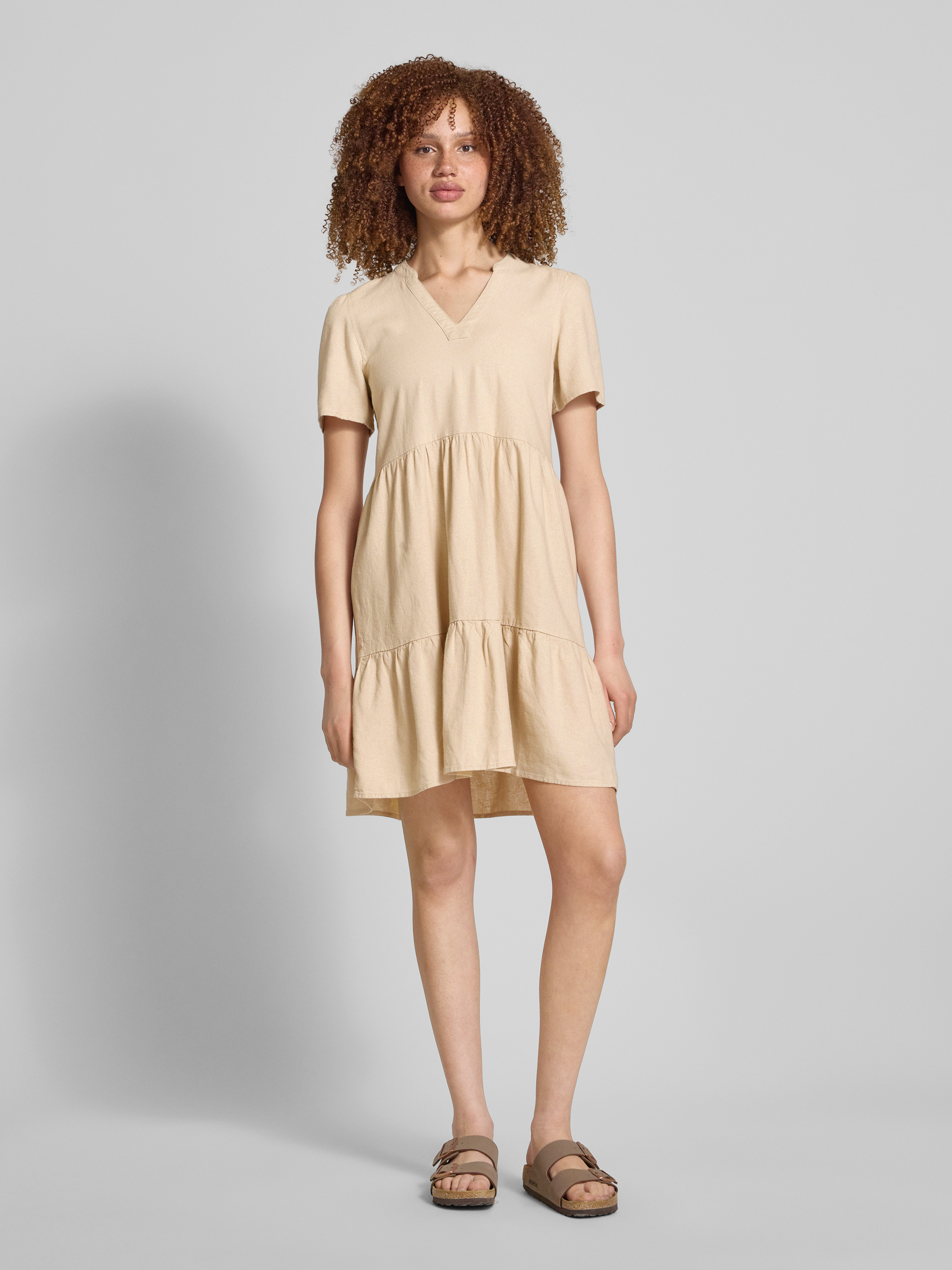 Comfort fit vrijetijdsjurk van mix van viscose en linnen, model 'TIRI-CARO' in beige