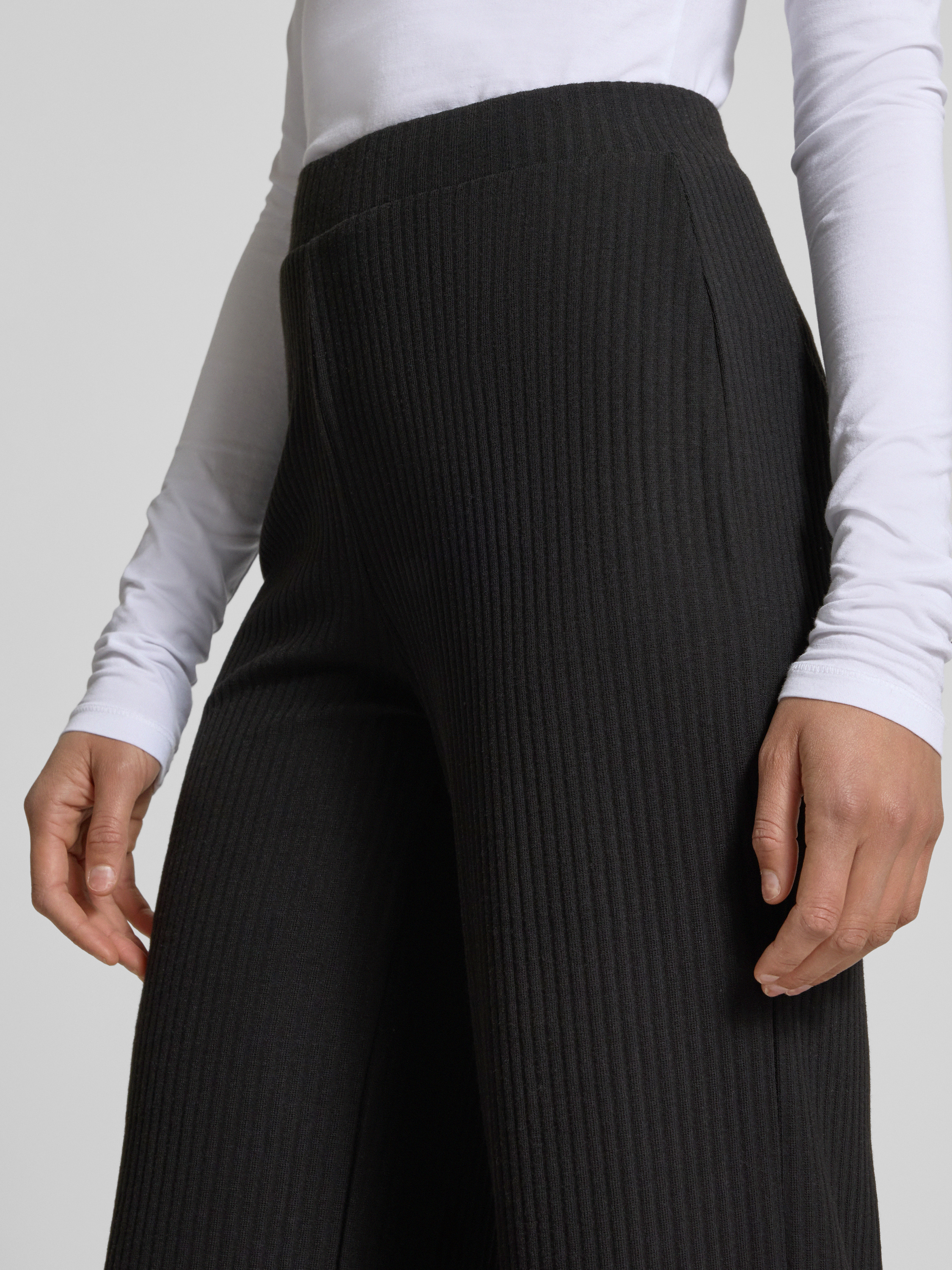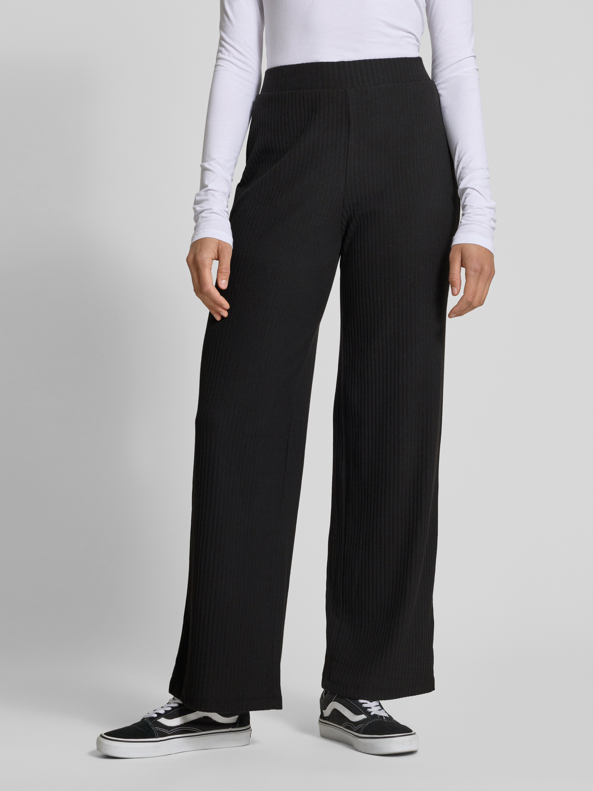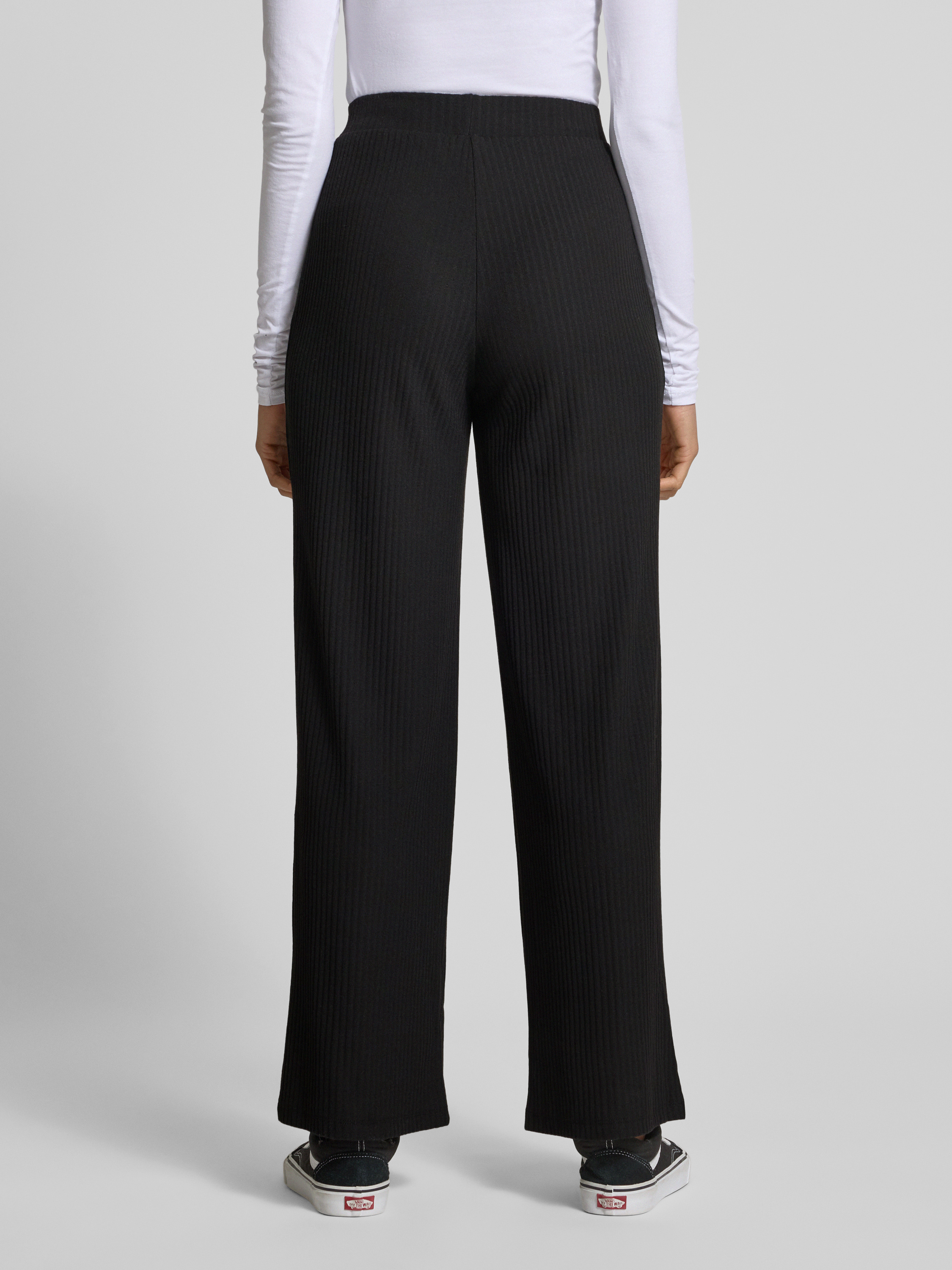 Comfortbroek met ribstructuur, model 'Nella' in zwart