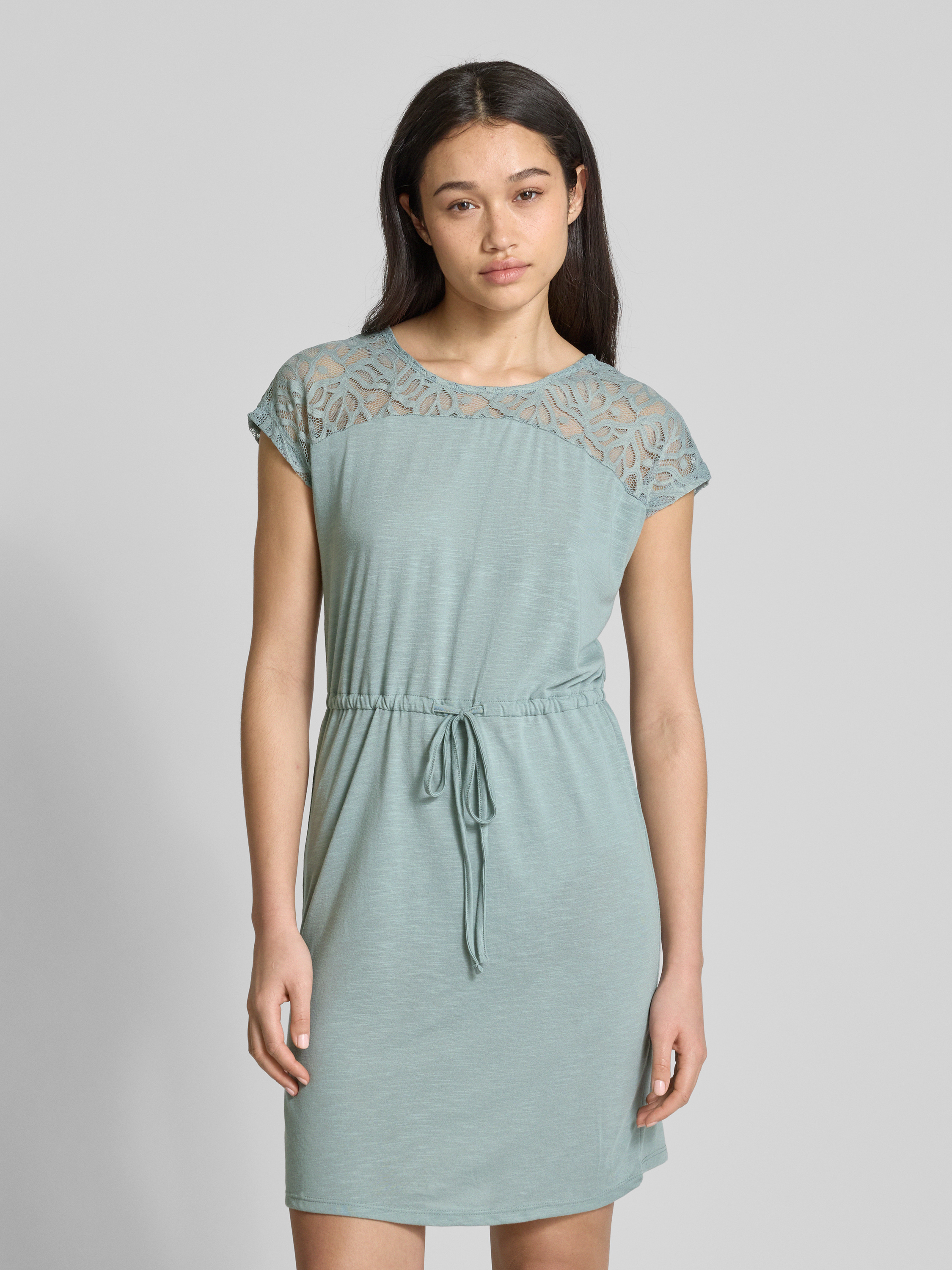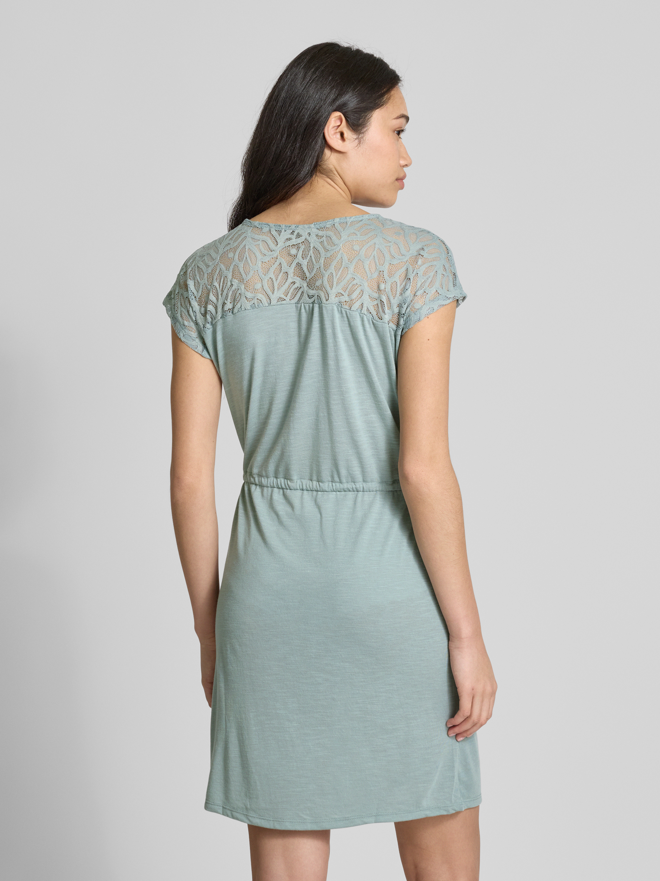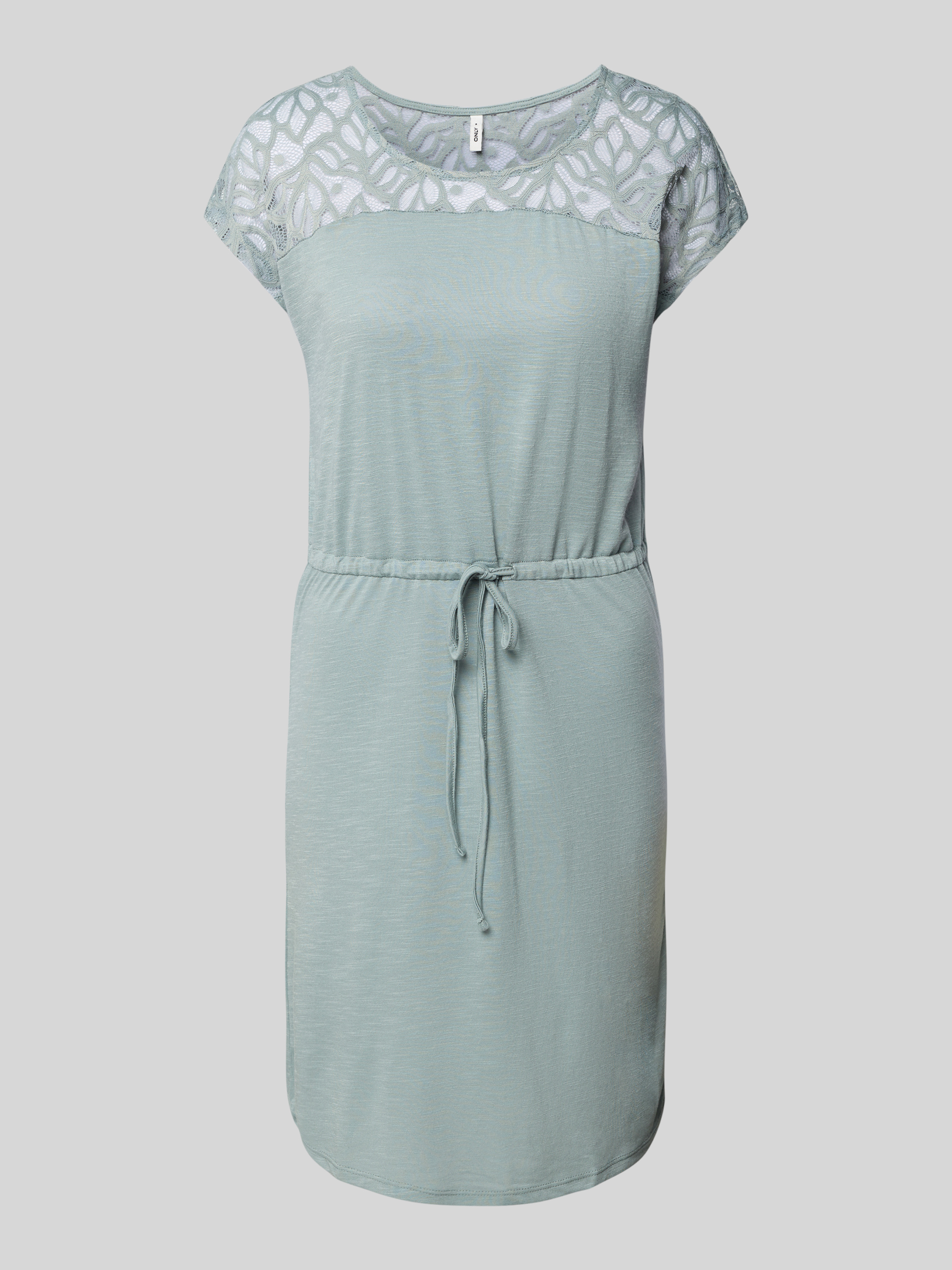 Getailleerde knielange jurk met kant, model 'SINDY LIFE' in rietgroen
