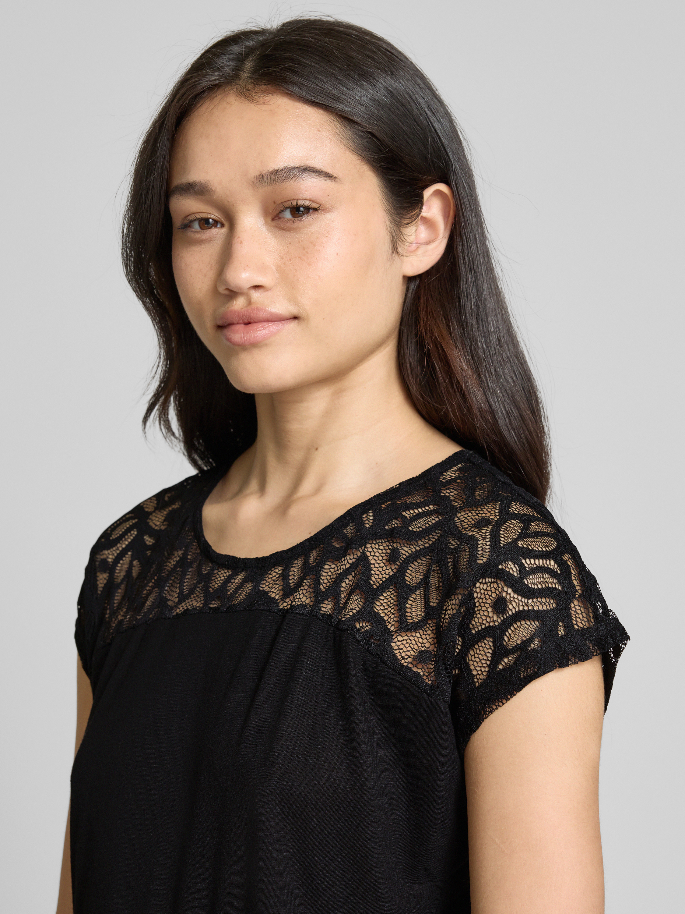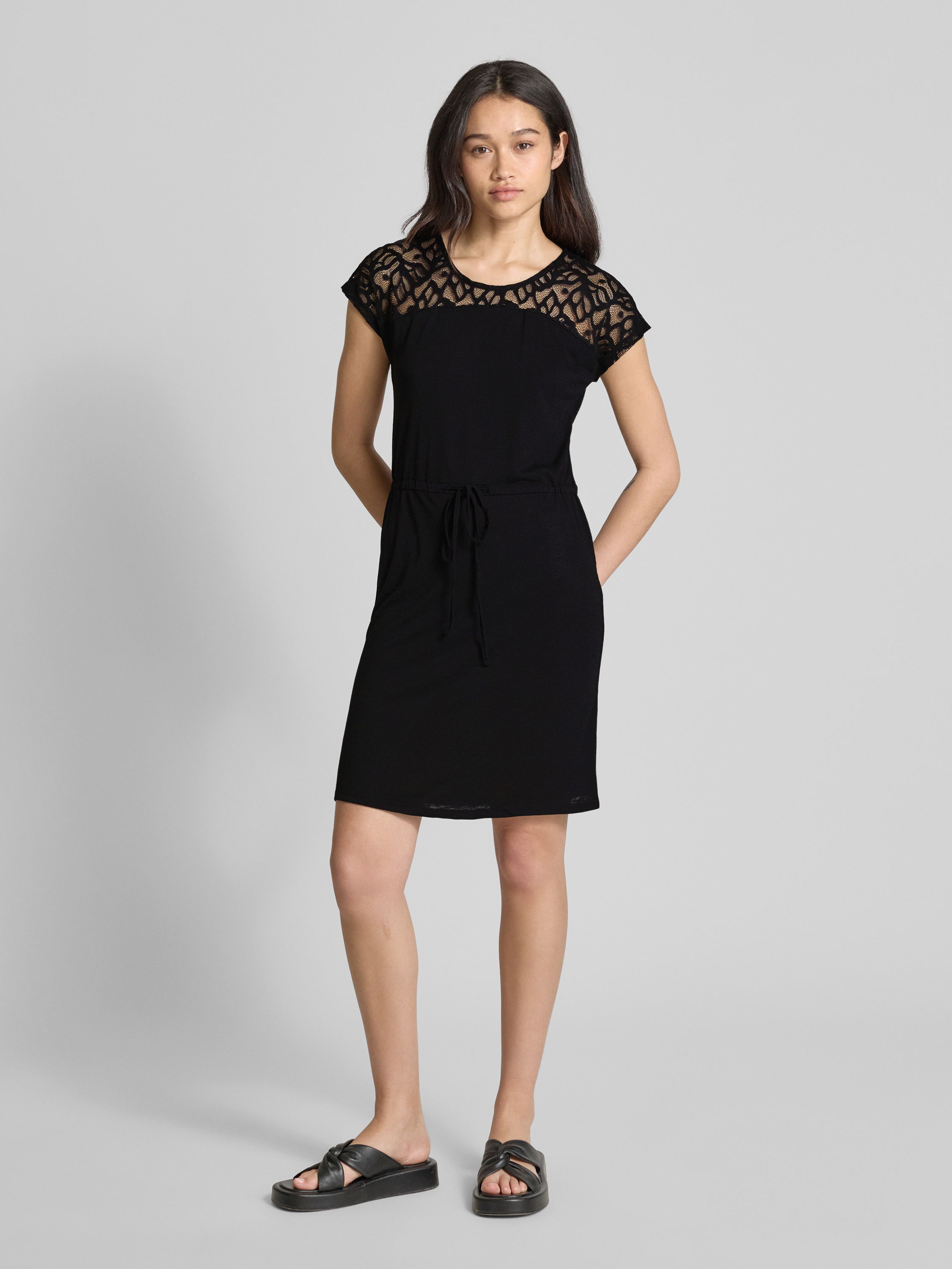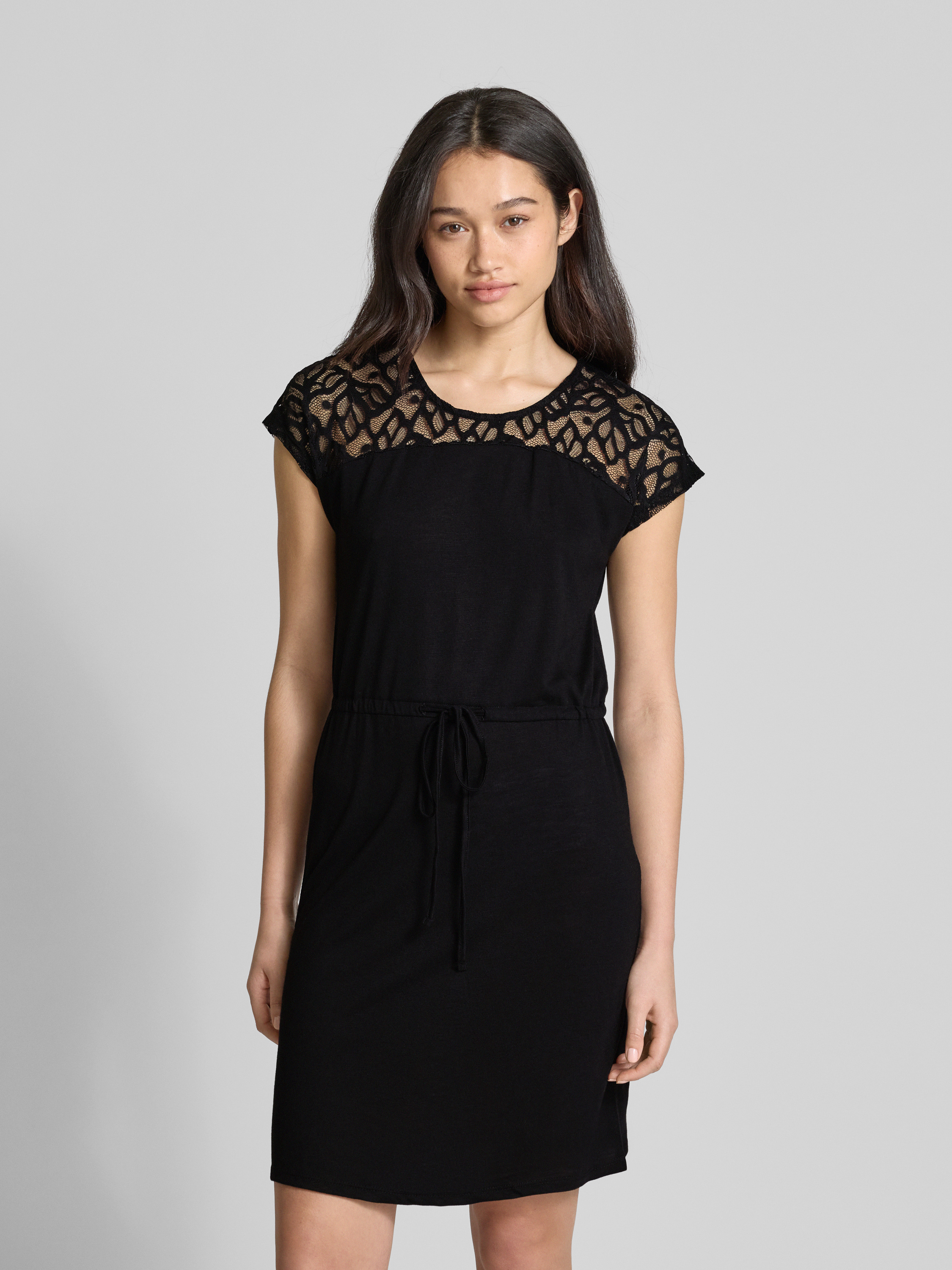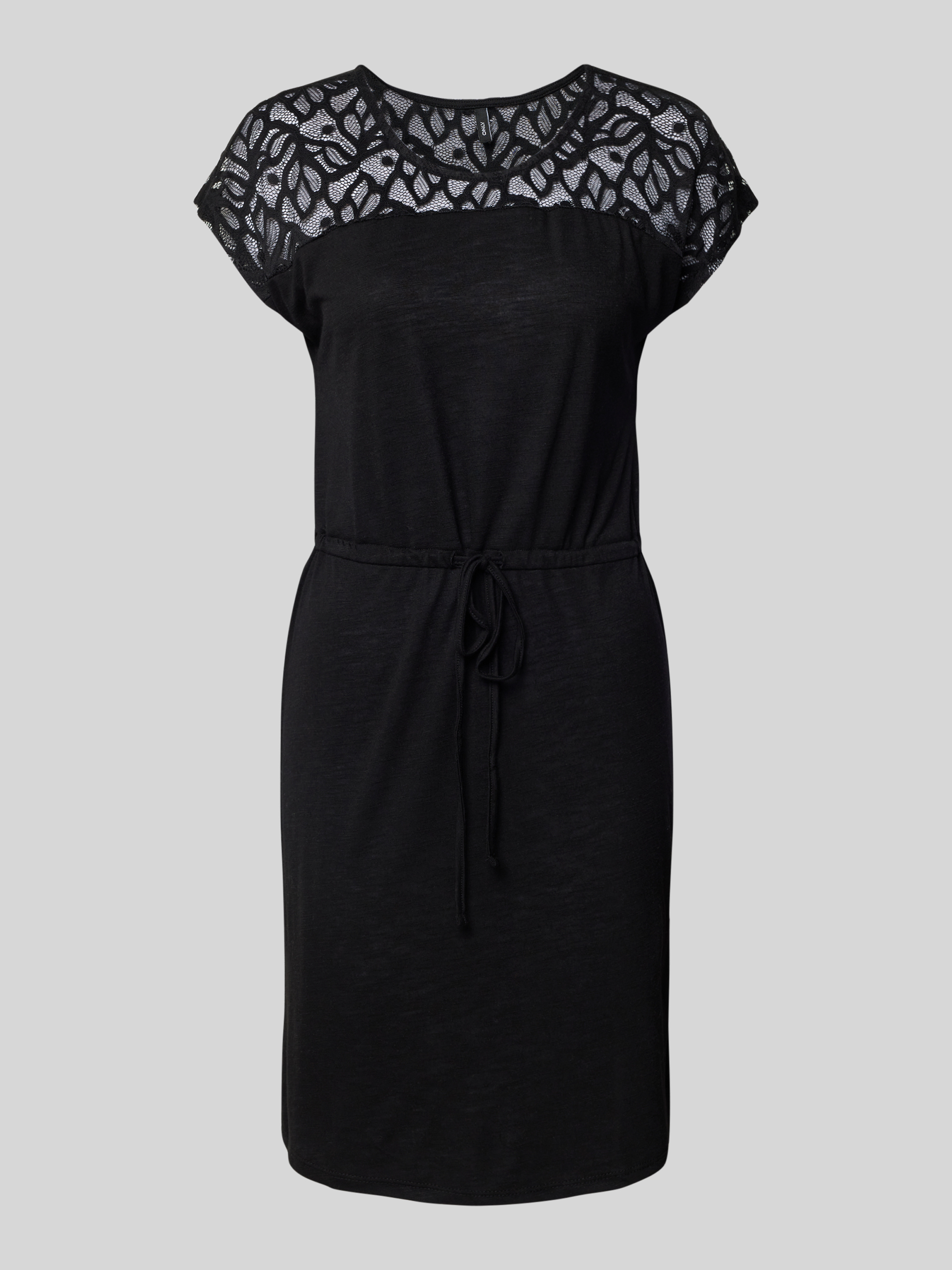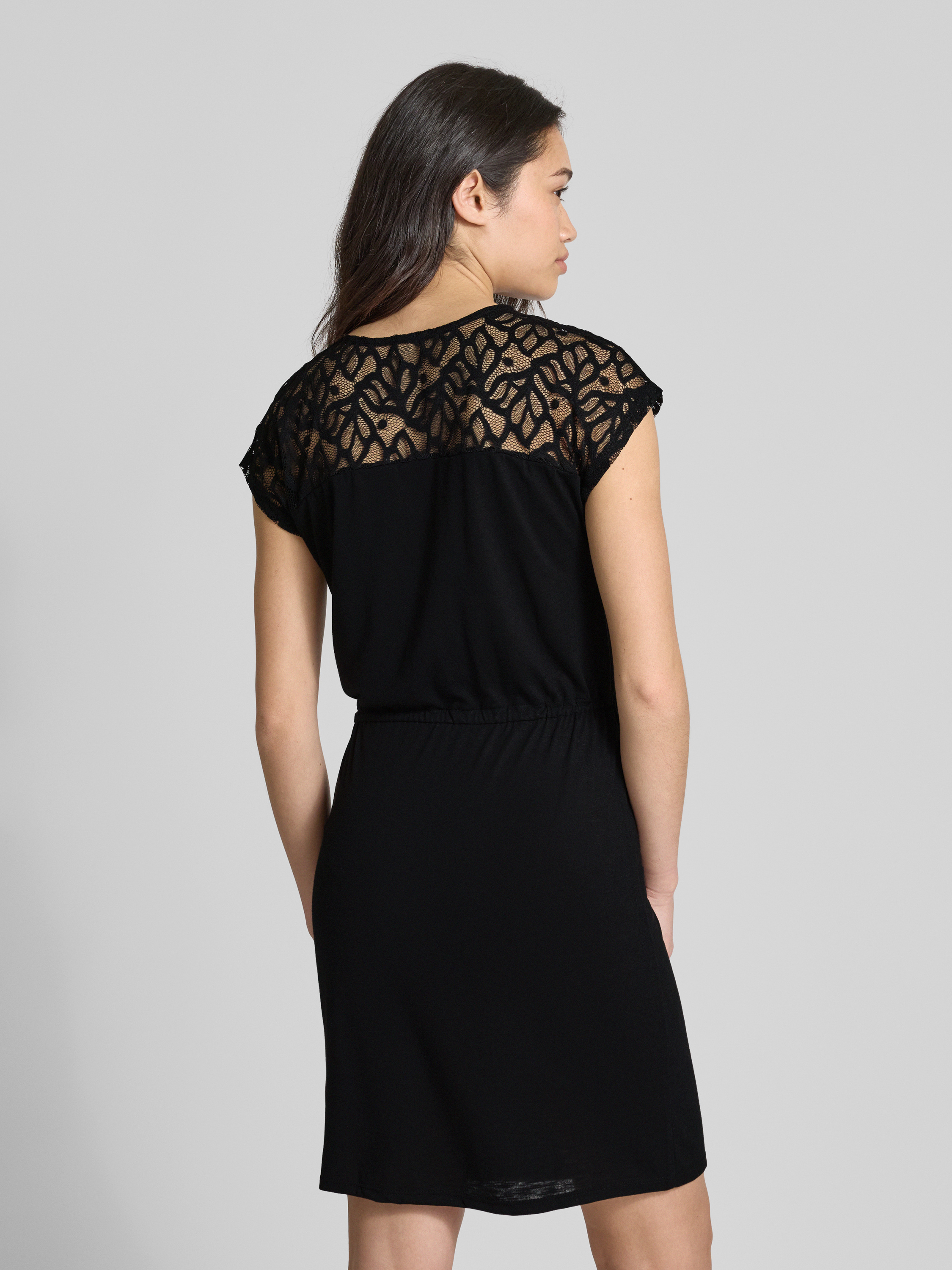 Getailleerde knielange jurk met kant, model 'SINDY LIFE' in zwart