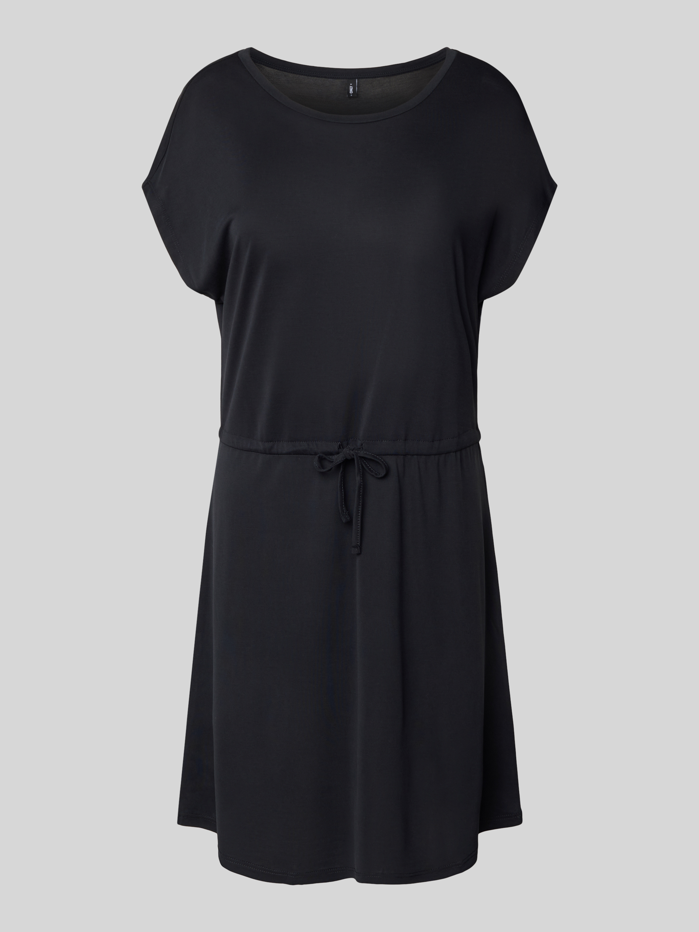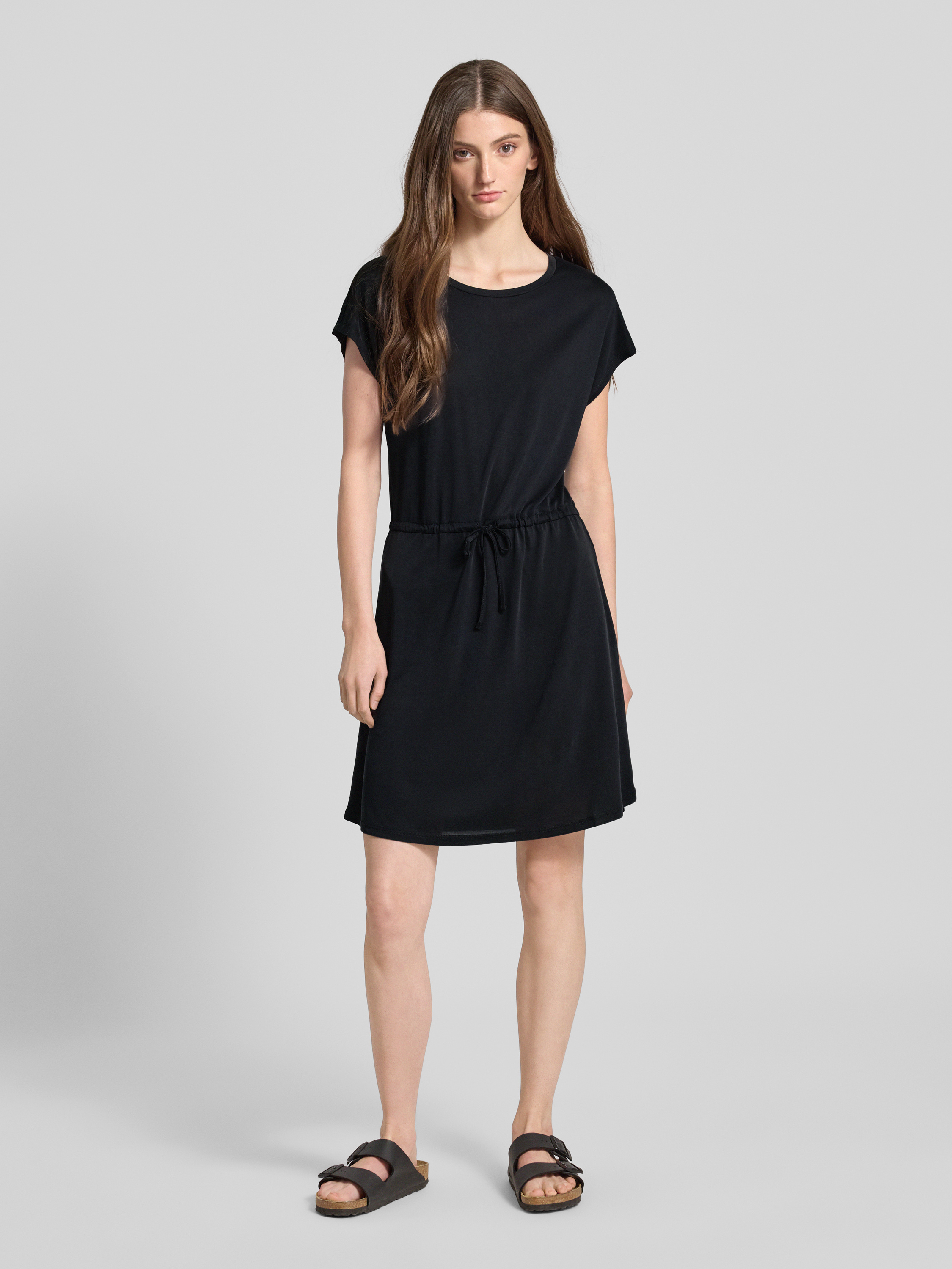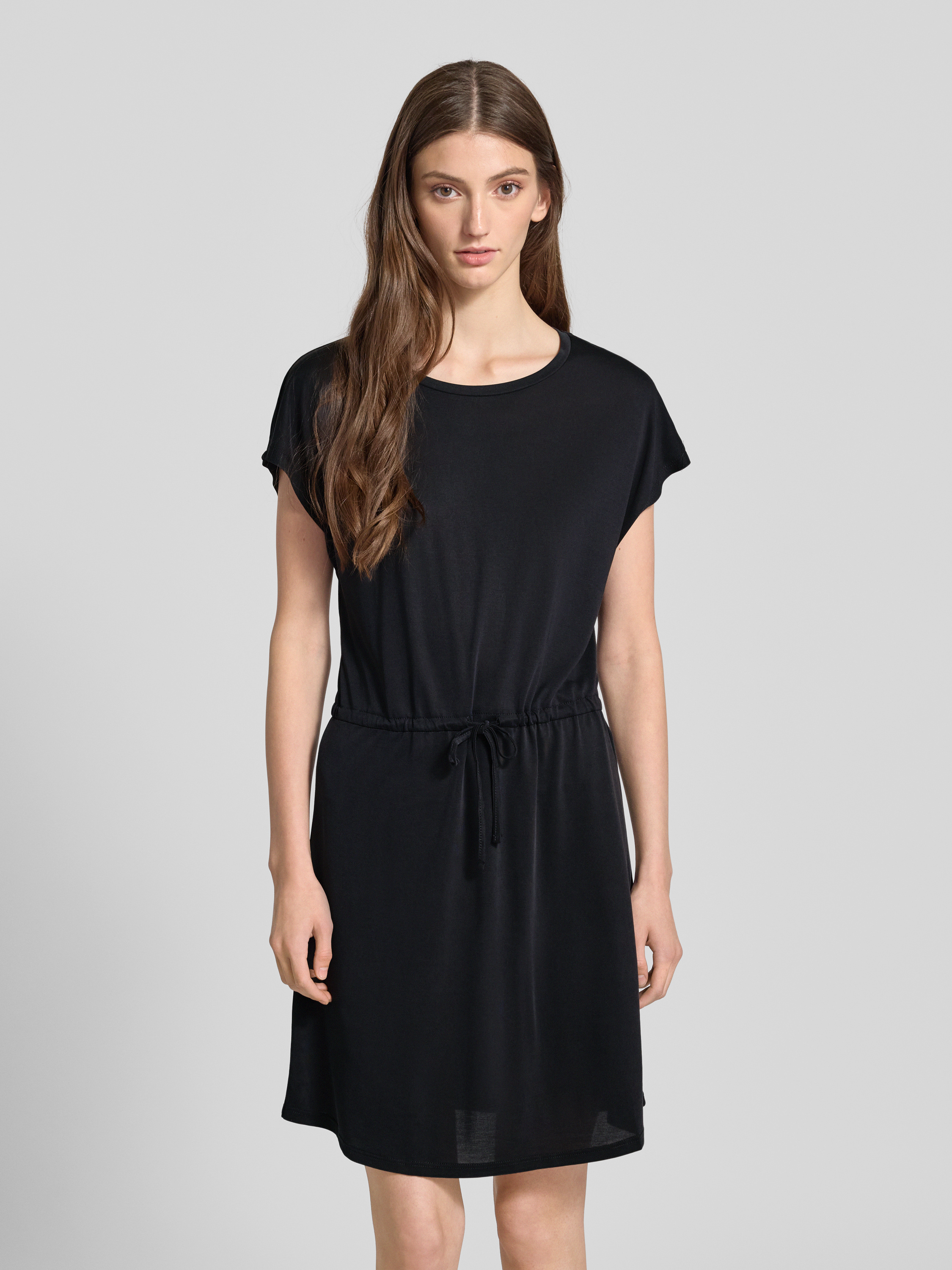 Getailleerde knielange jurk van viscosemix, model 'HANNAH' in zwart