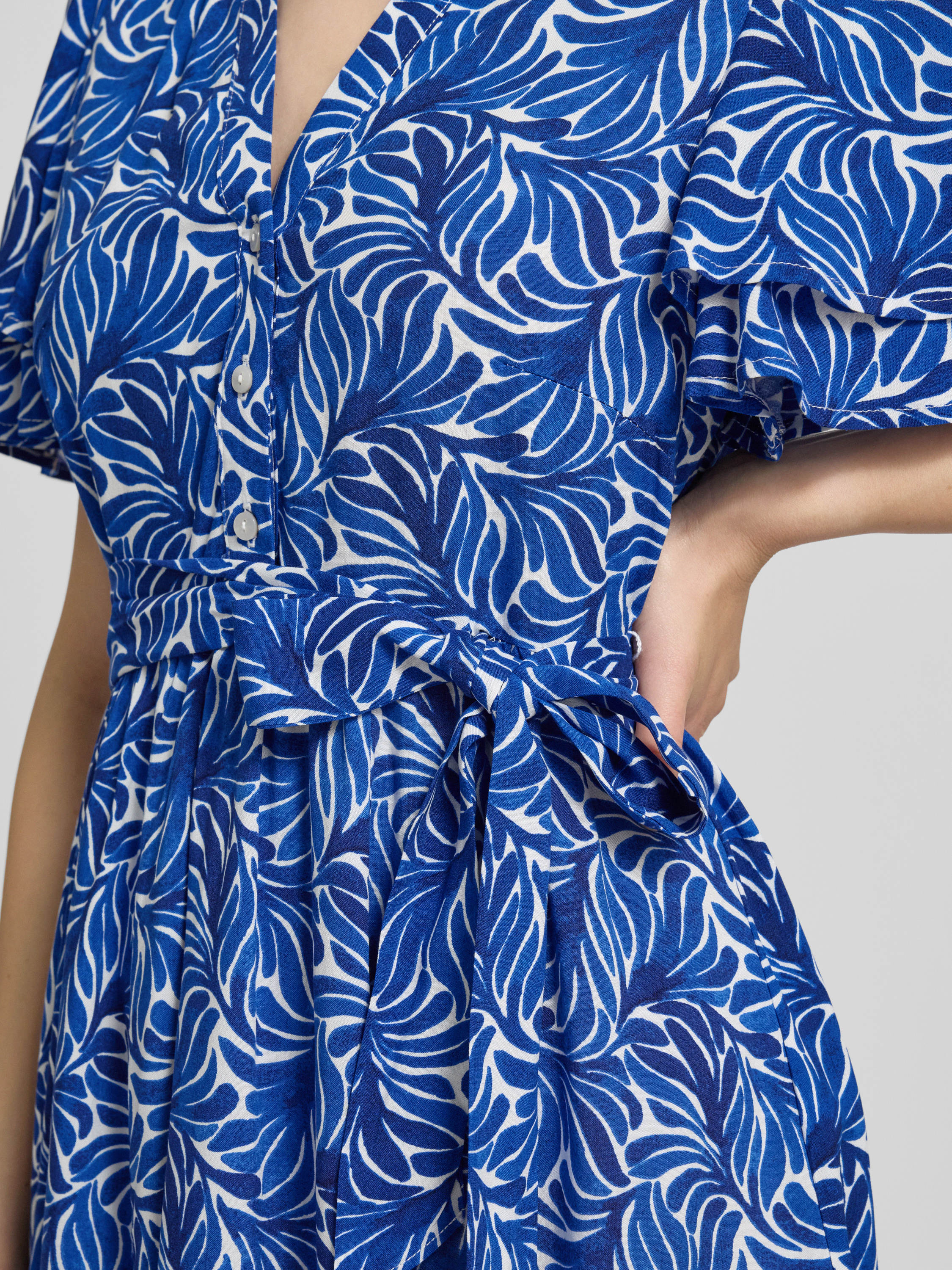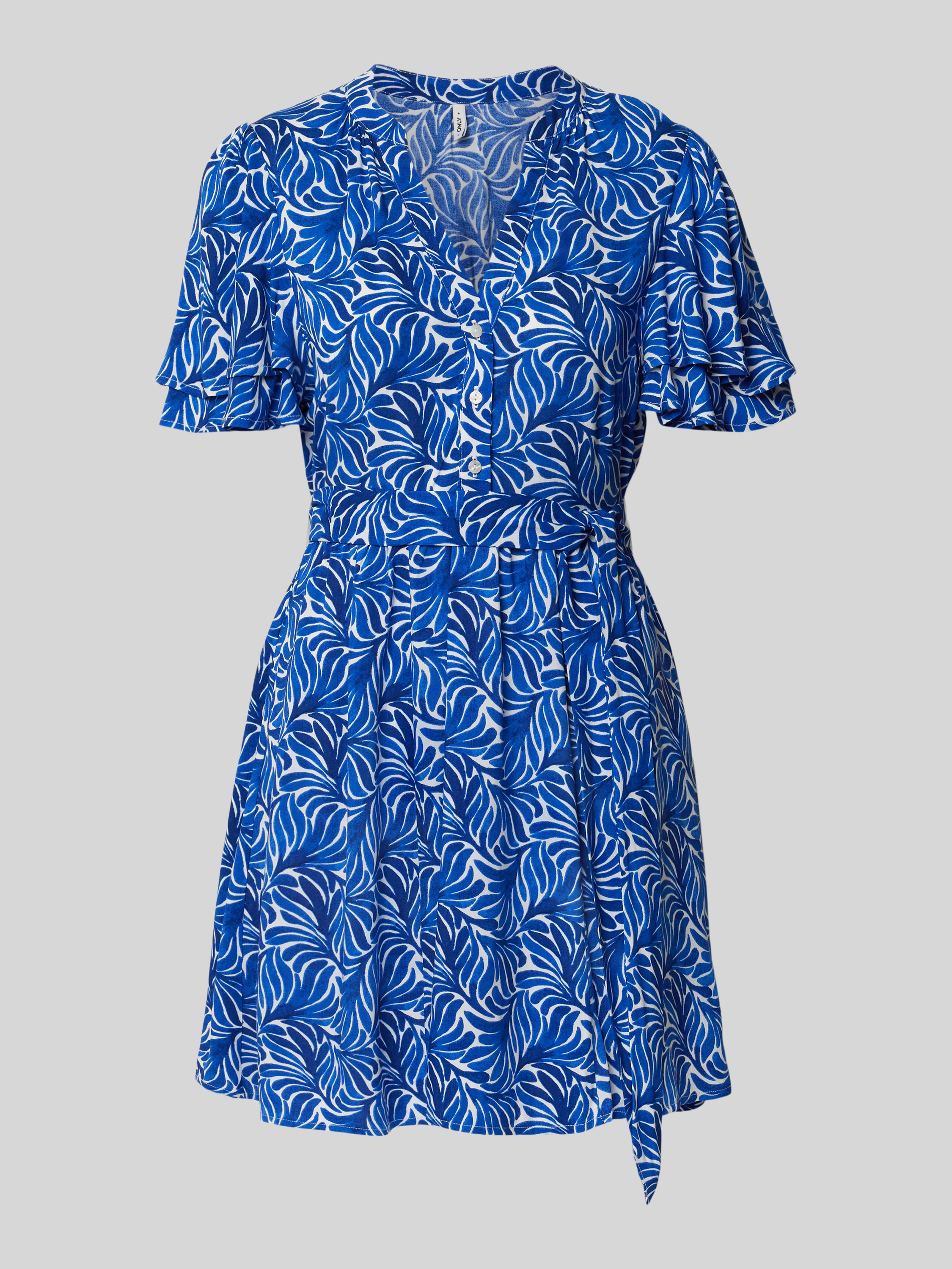 Getailleerde mini-jurk met strikceintuur, model 'NOVA' in blauw