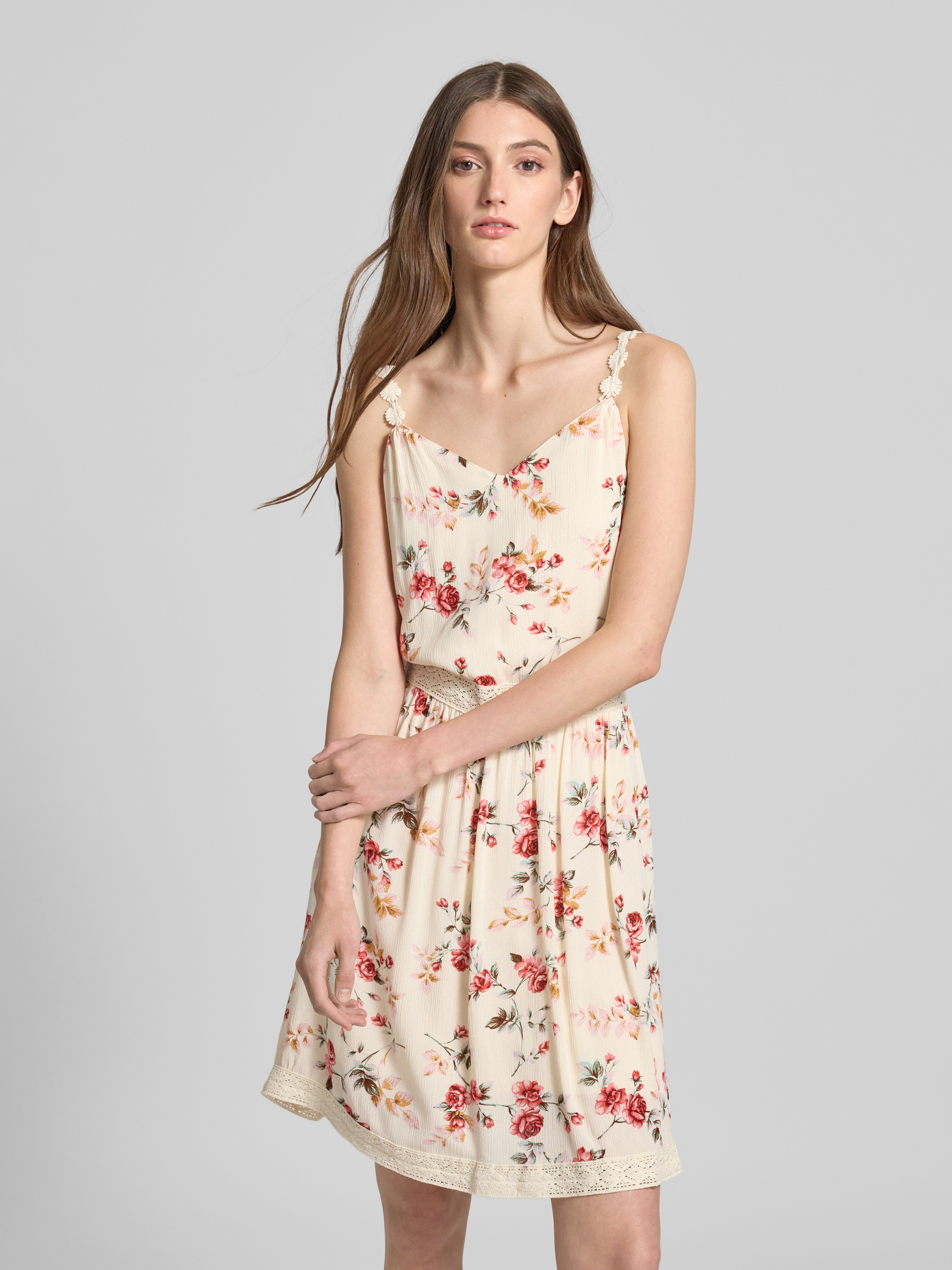 OnlyGetailleerde mini-jurk van pure viscose, model 'KARMEN' in ecru