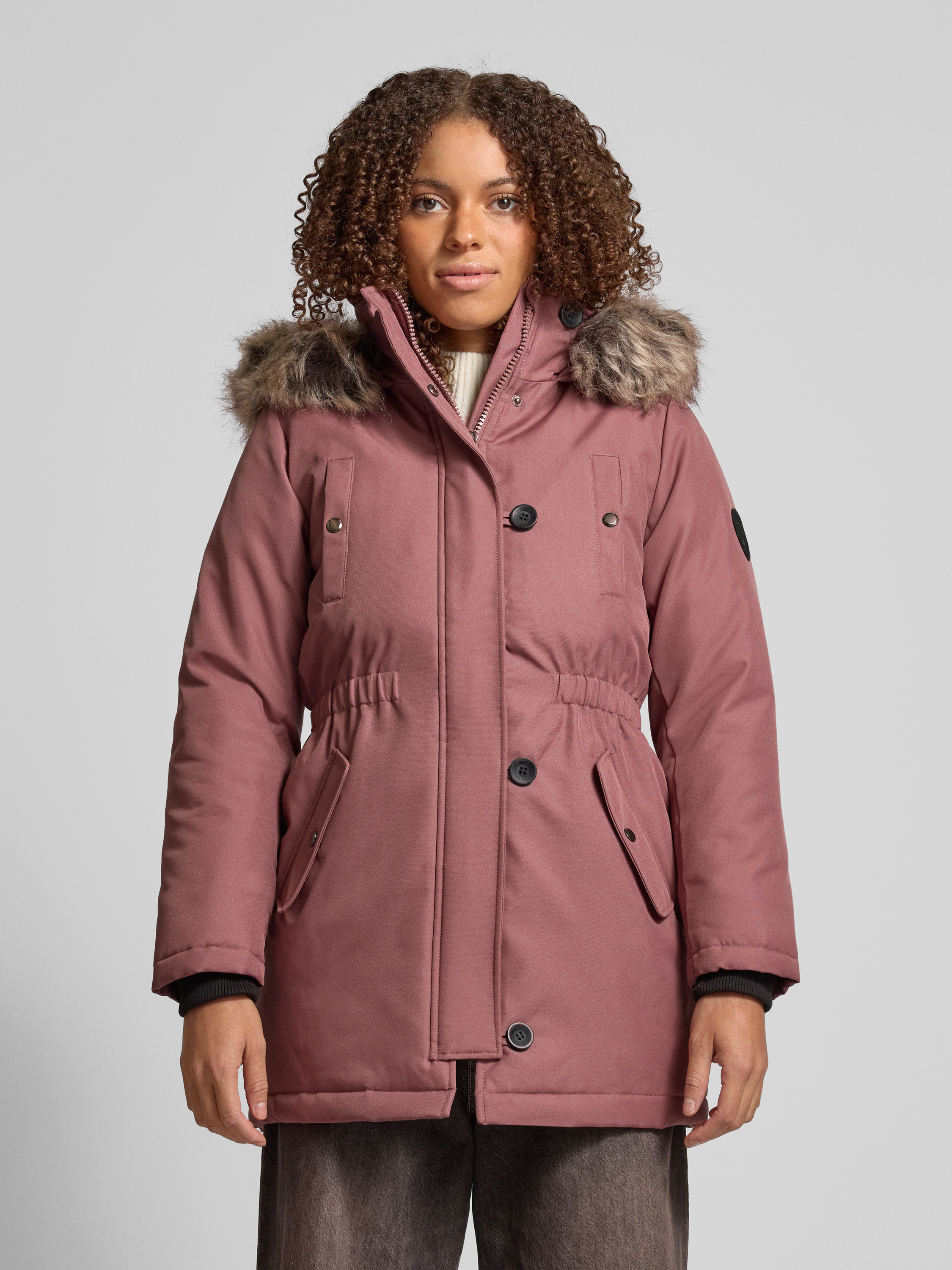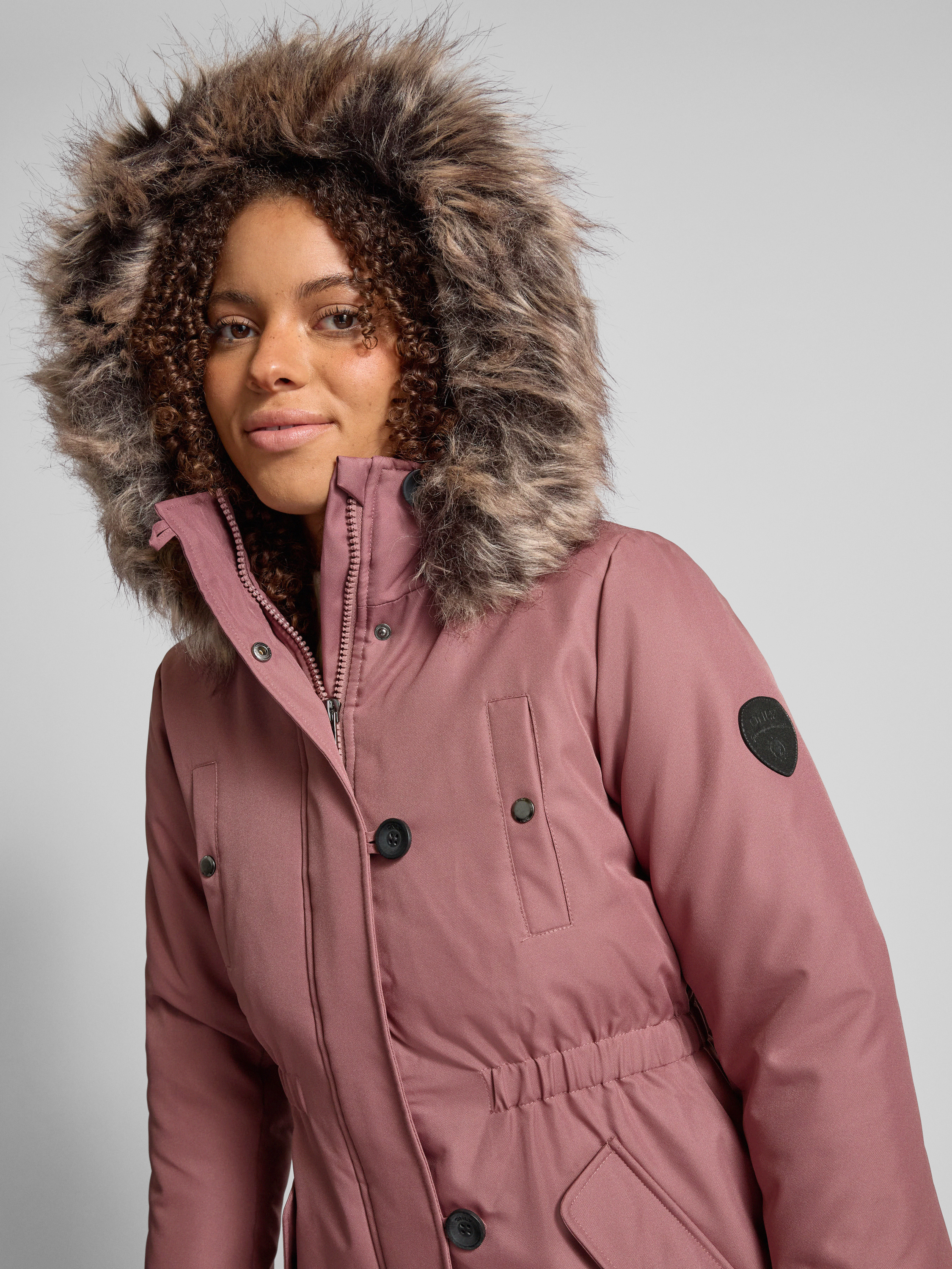Getailleerde parka met imitatiebont, model 'IRIS' in mauve