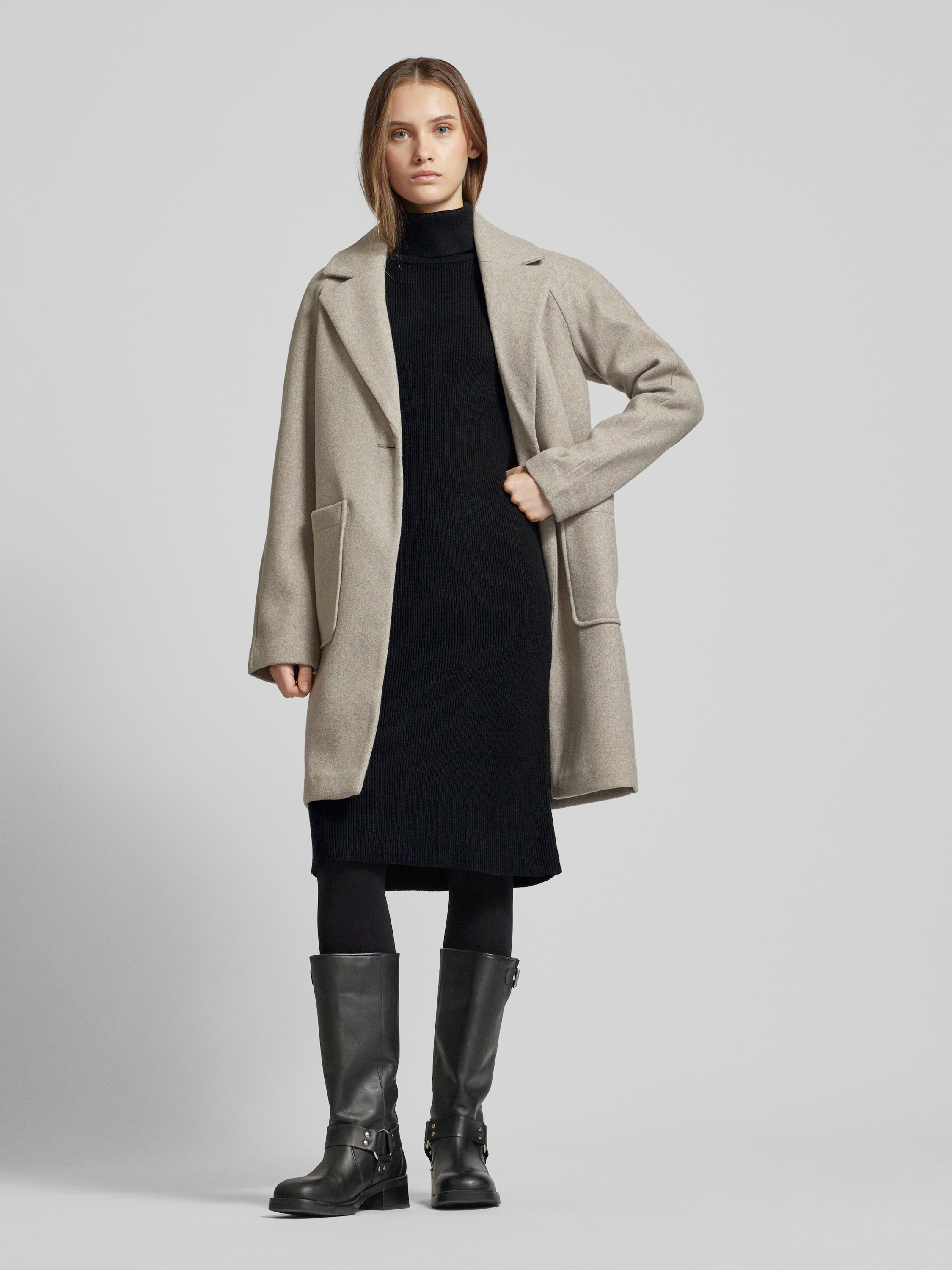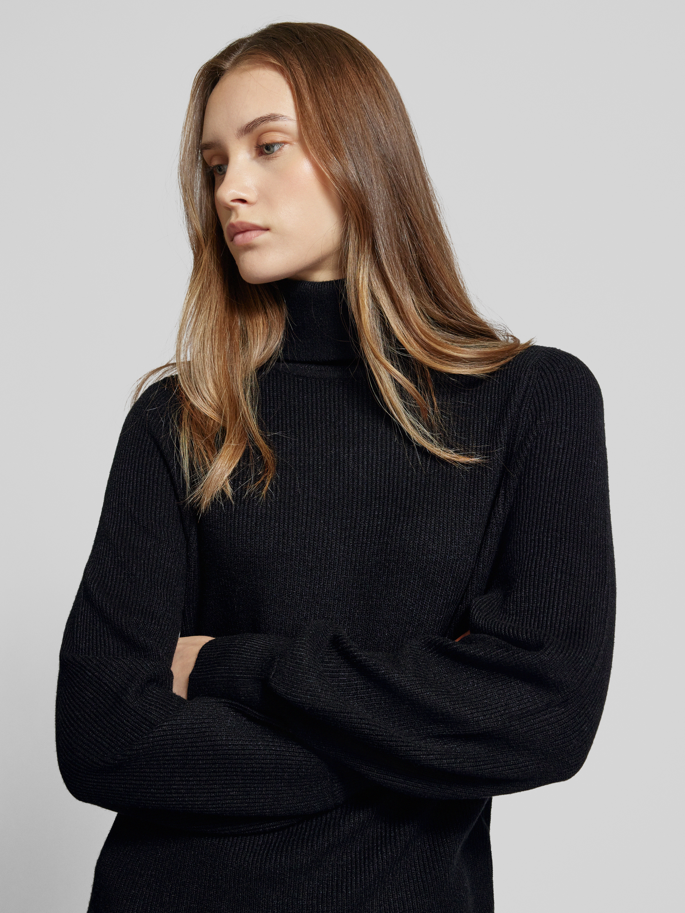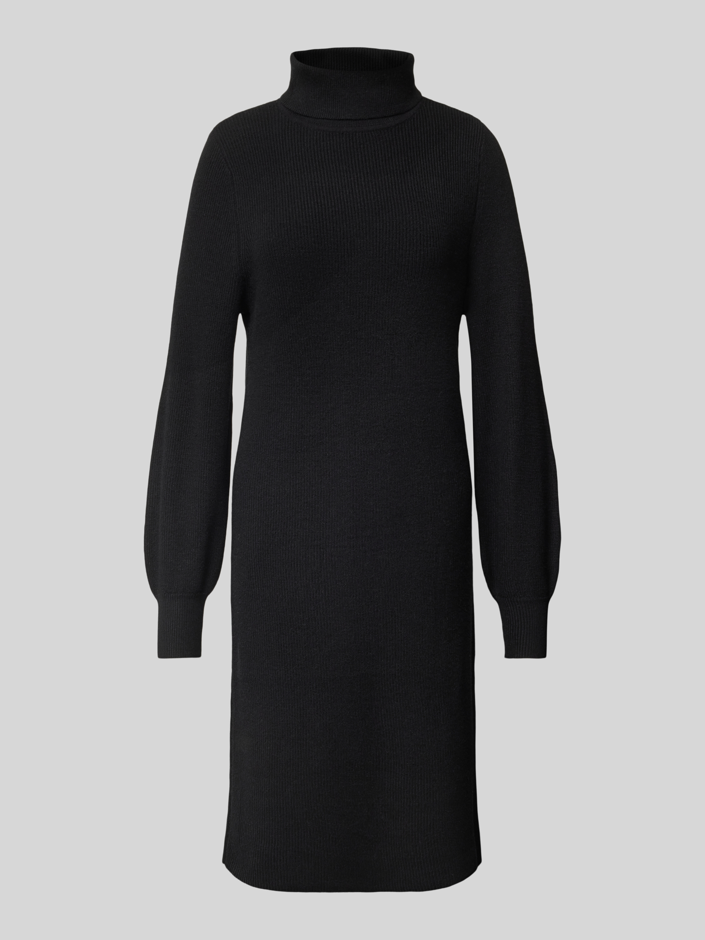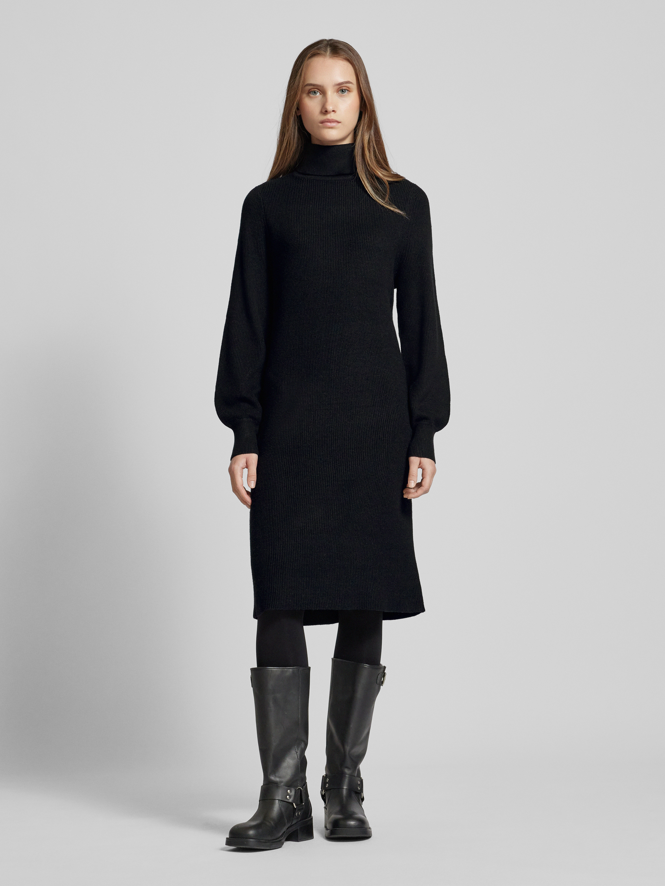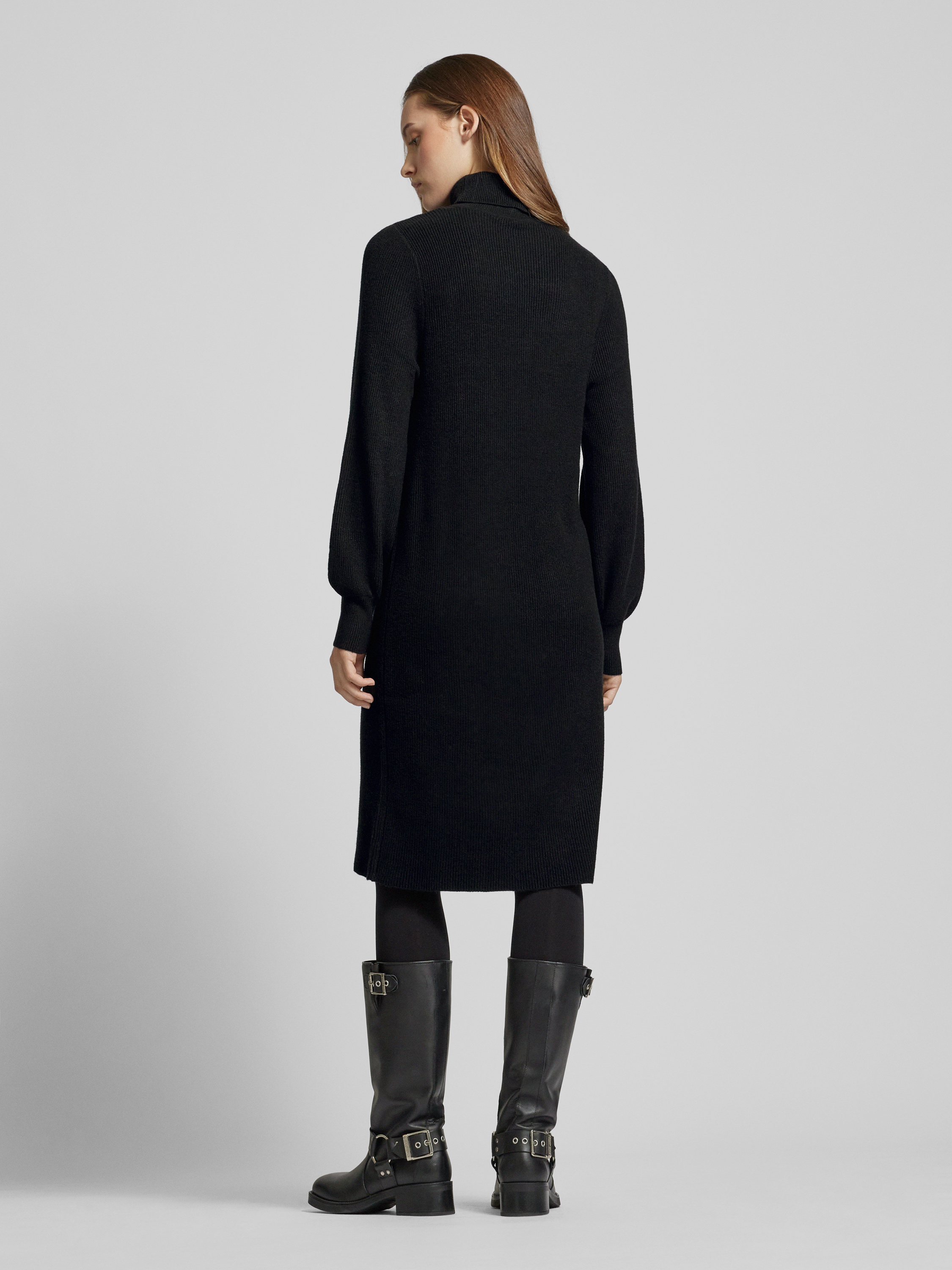 Knielange gebreide jurk met col, model 'SASHA' in zwart