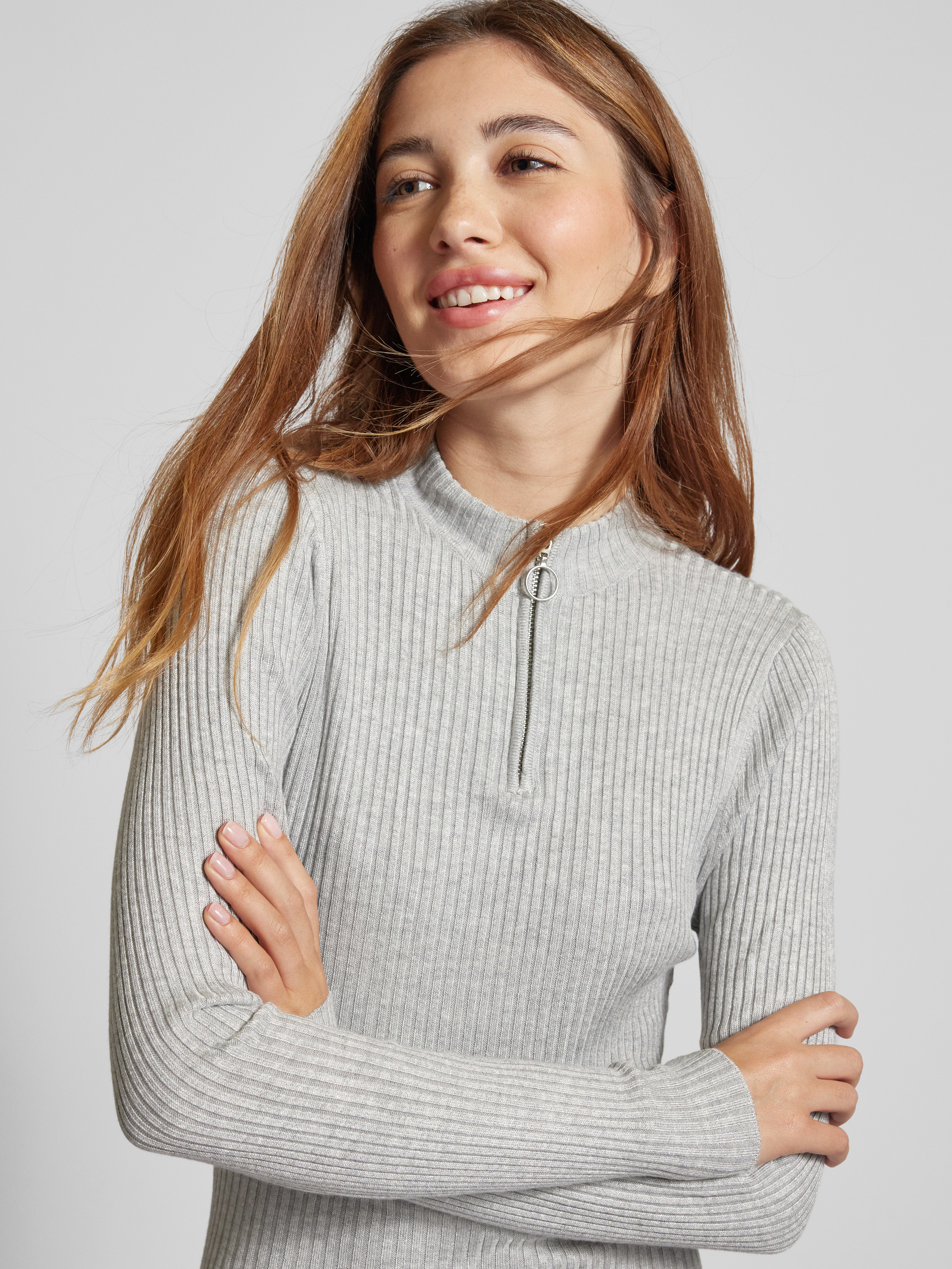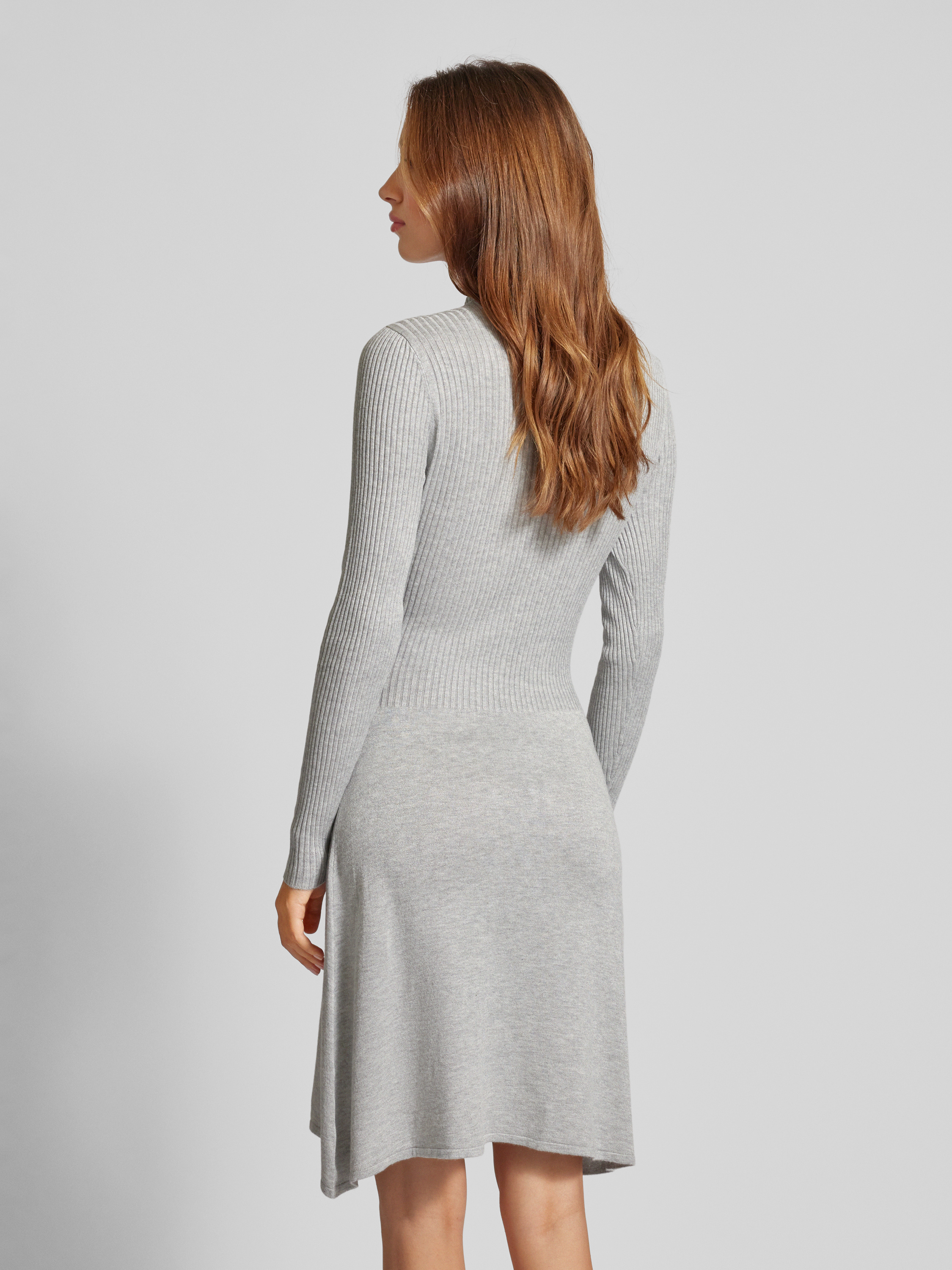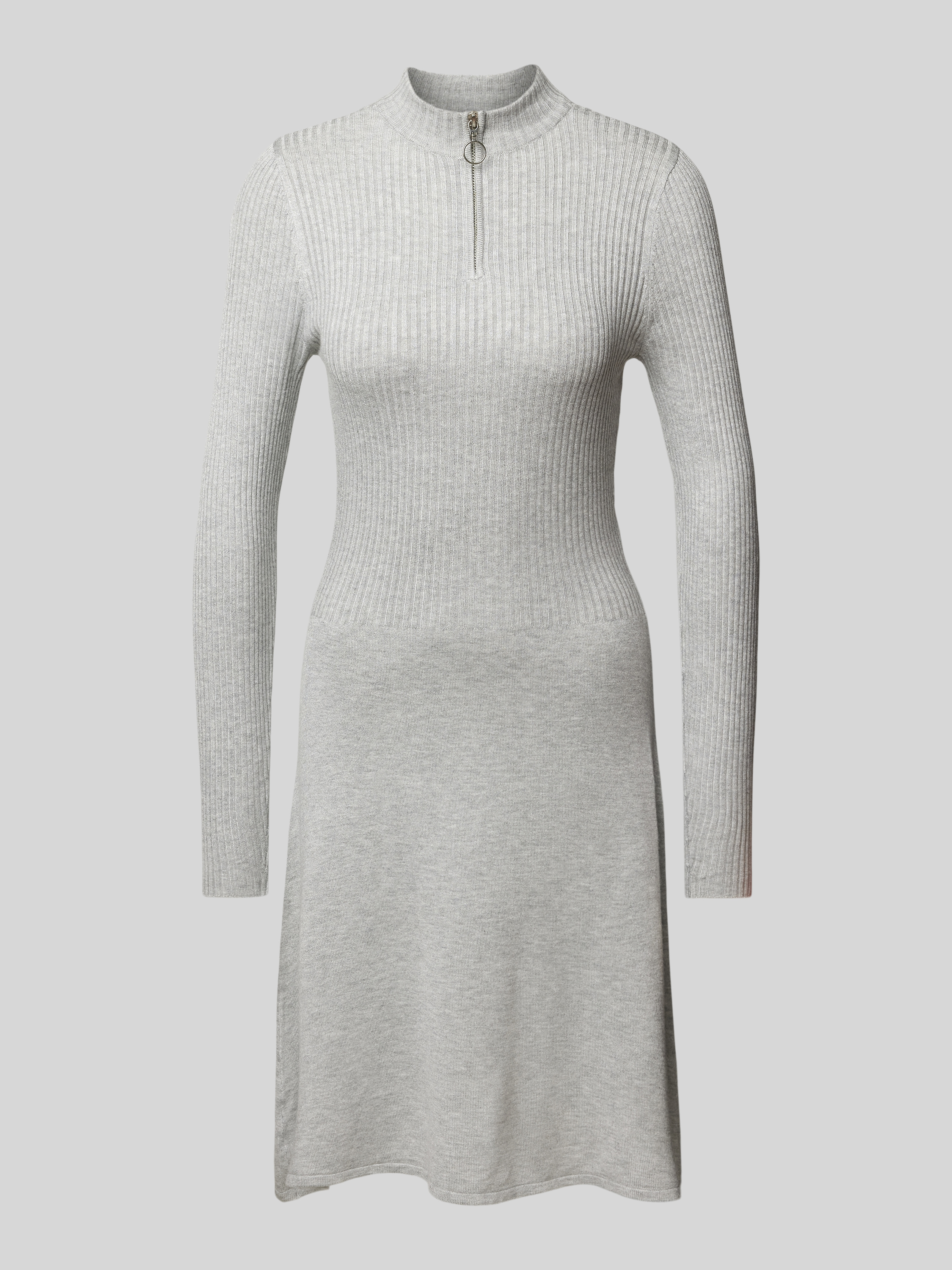 Knielange gebreide jurk met korte ritssluiting model 'DEE HAZEL' in lichtgrijs gemêleerd