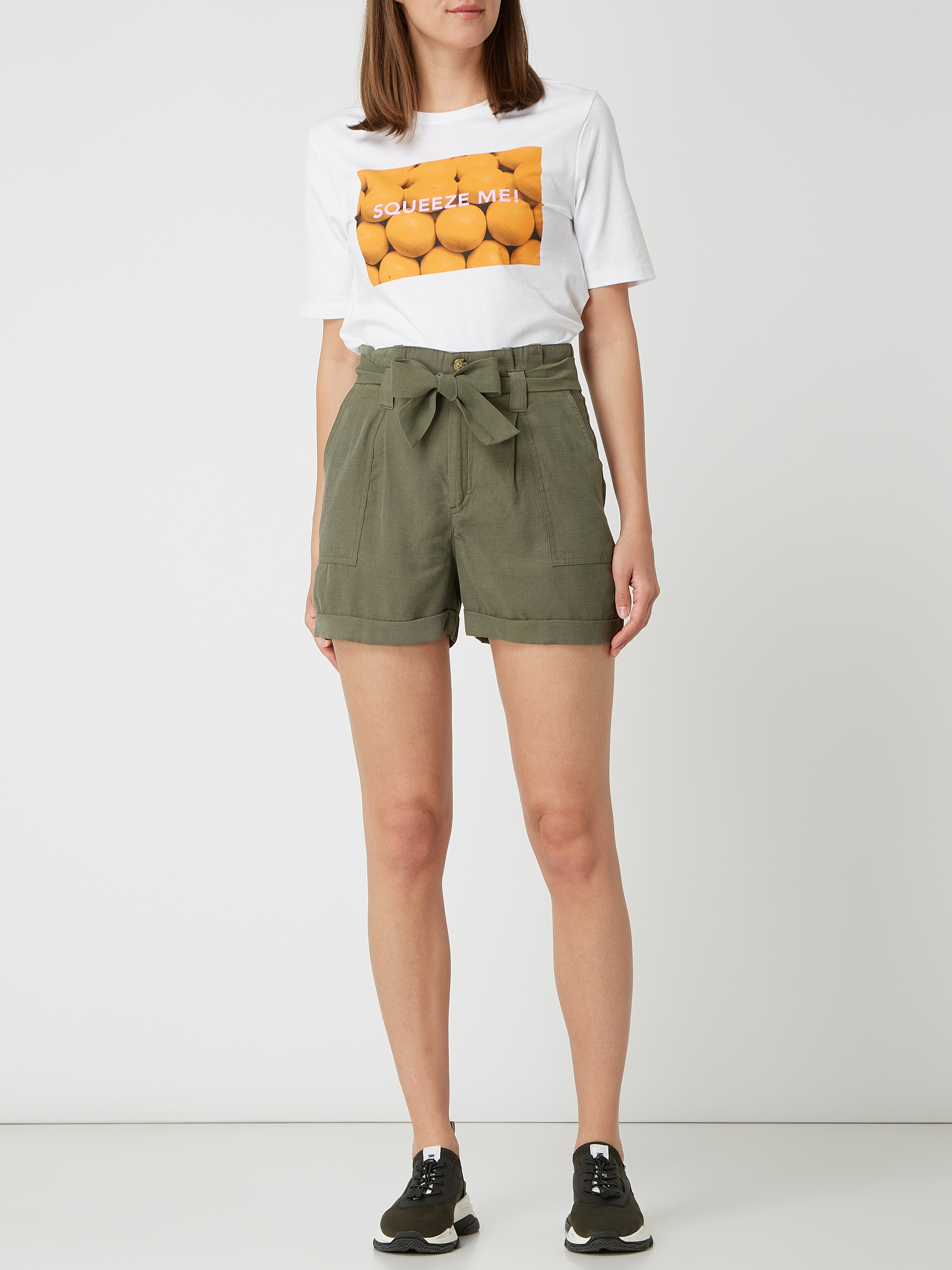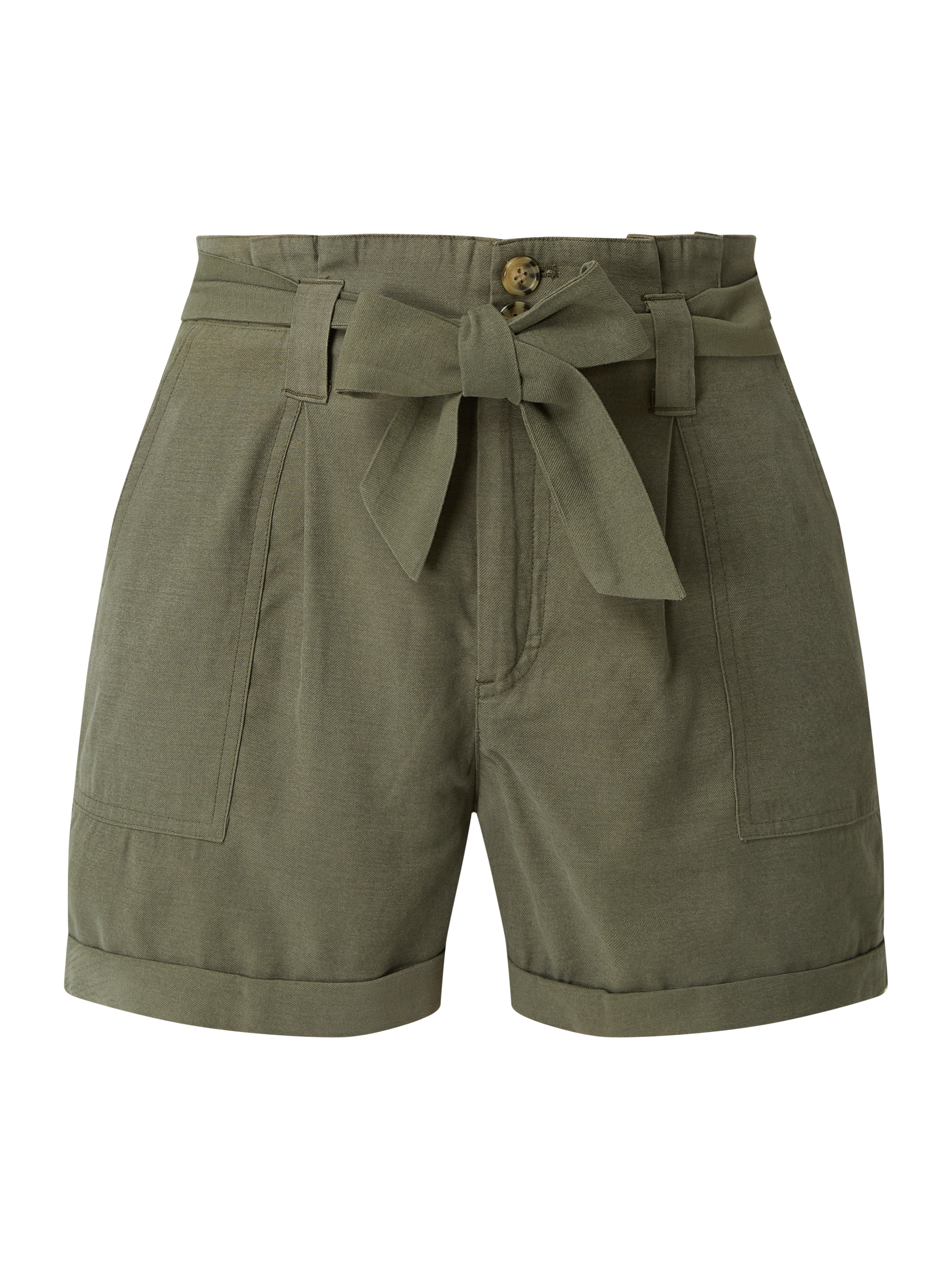 Korte paperbagbroek met bandplooien, model 'Mya' in olijfgroen