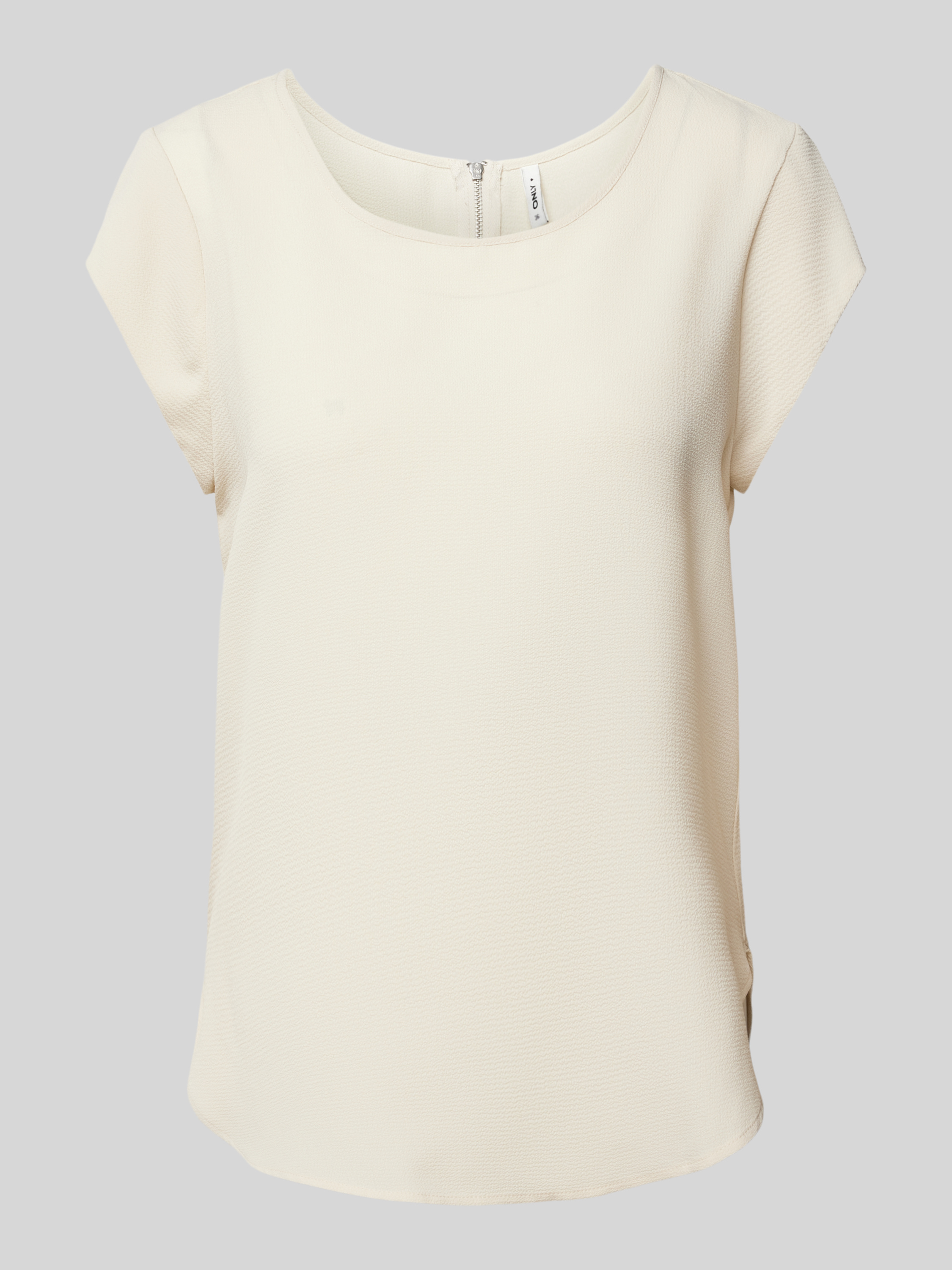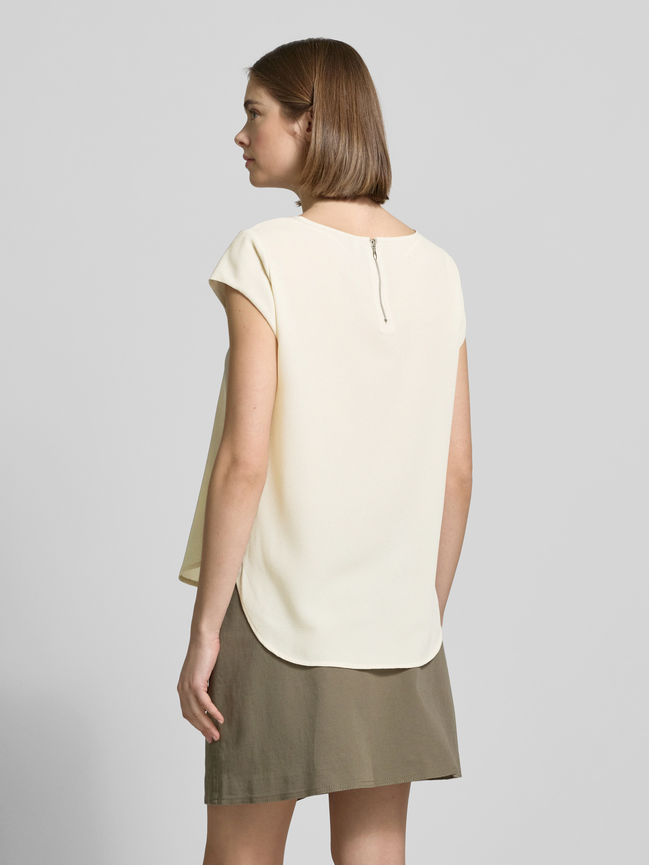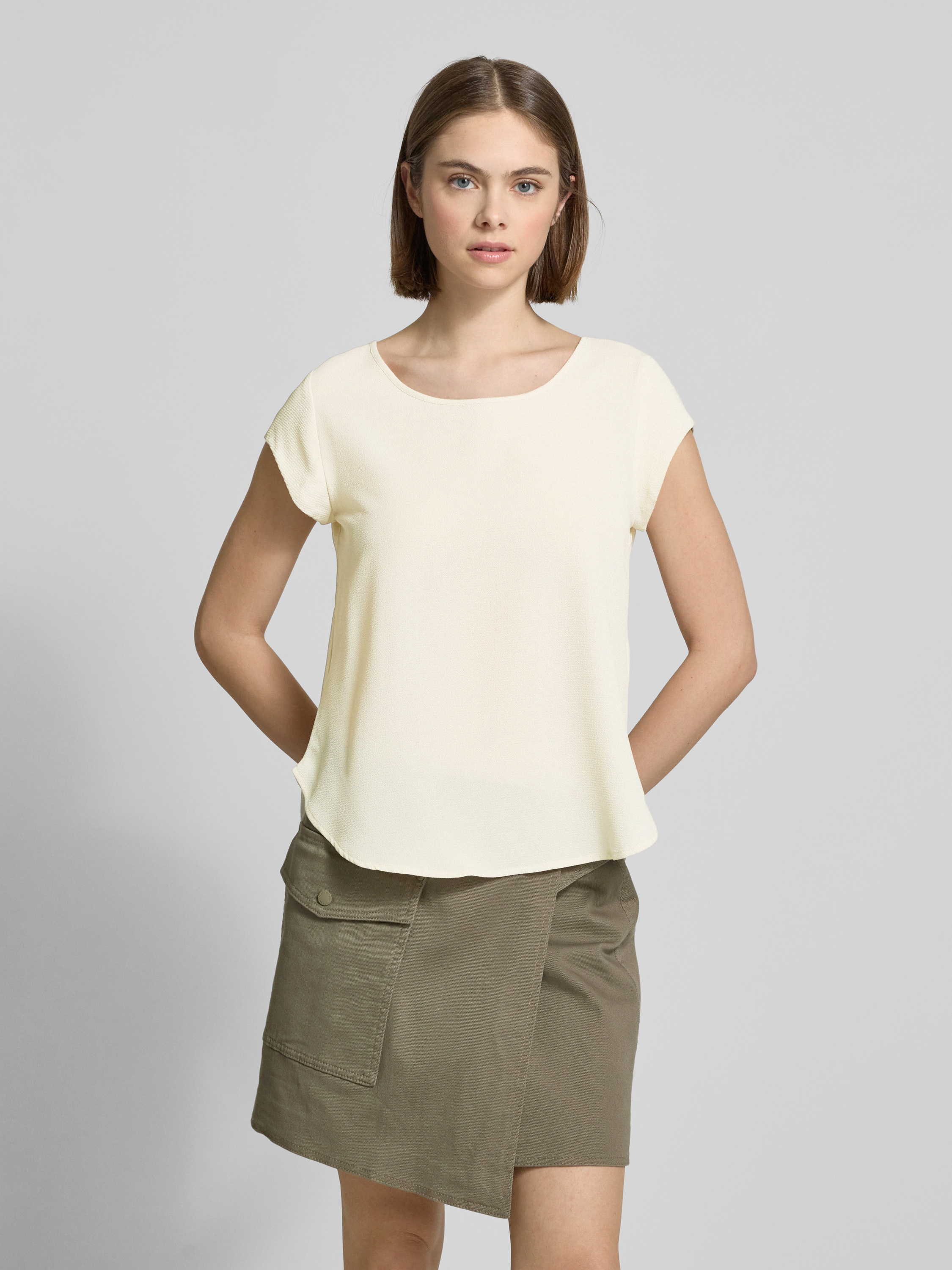 Loose fit blouse met korte mouwen in crêpelook, model 'VIC' in ecru